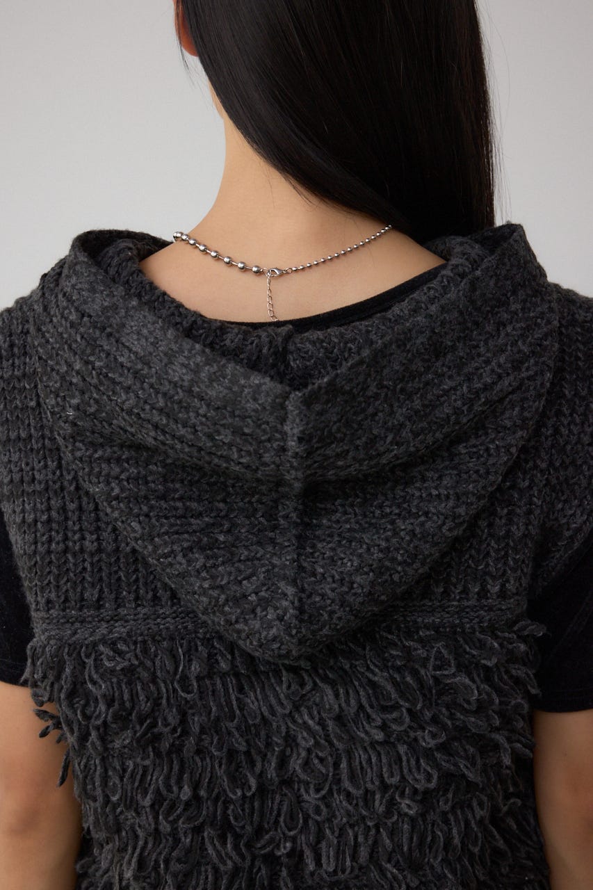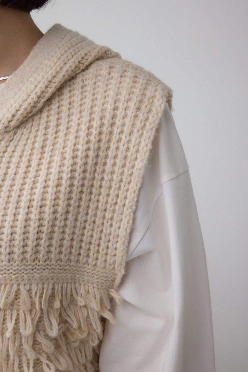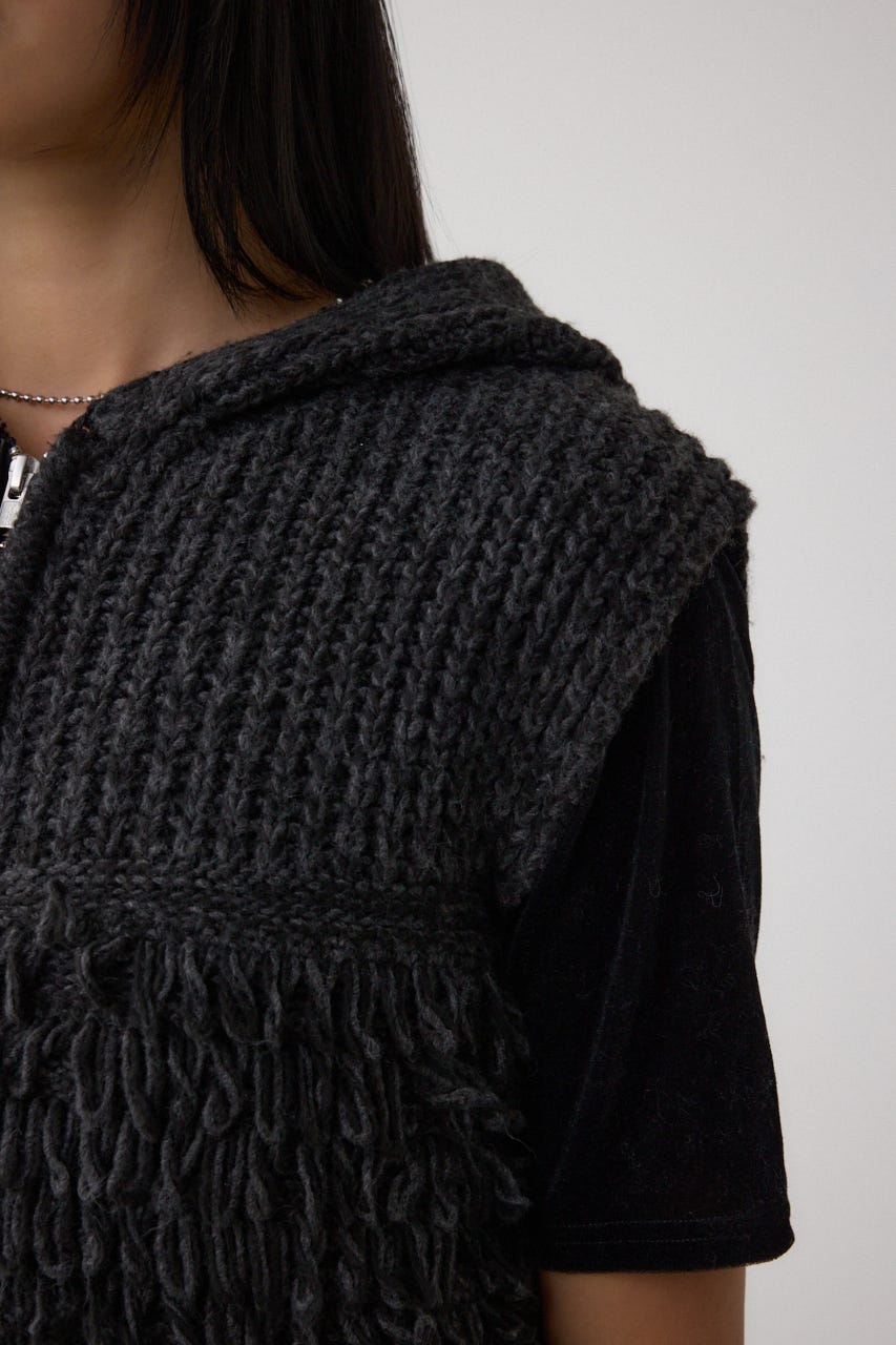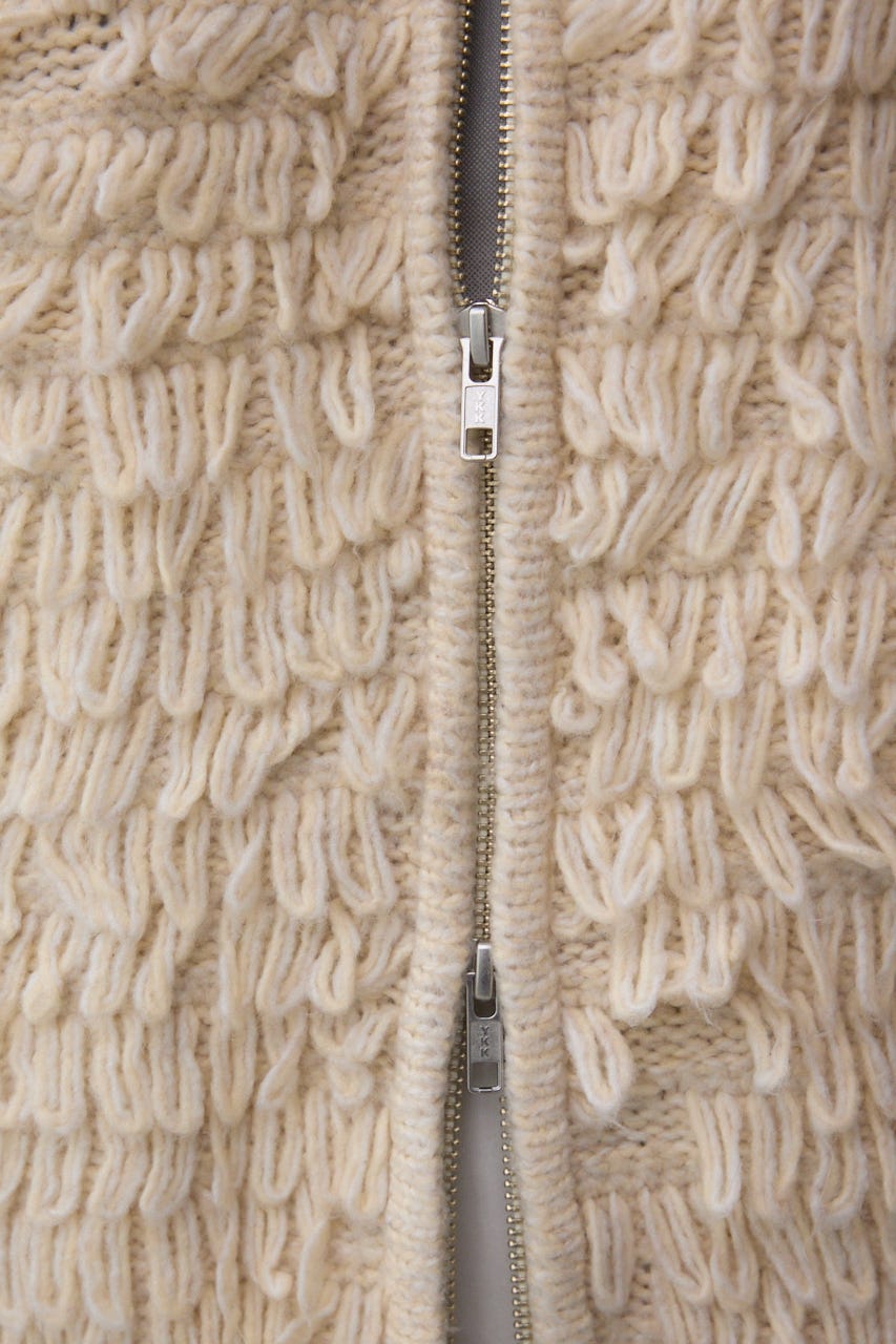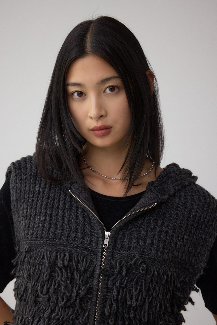 微配色の糸をループに編み立てた、表情のある編地が特徴のニットベスト。