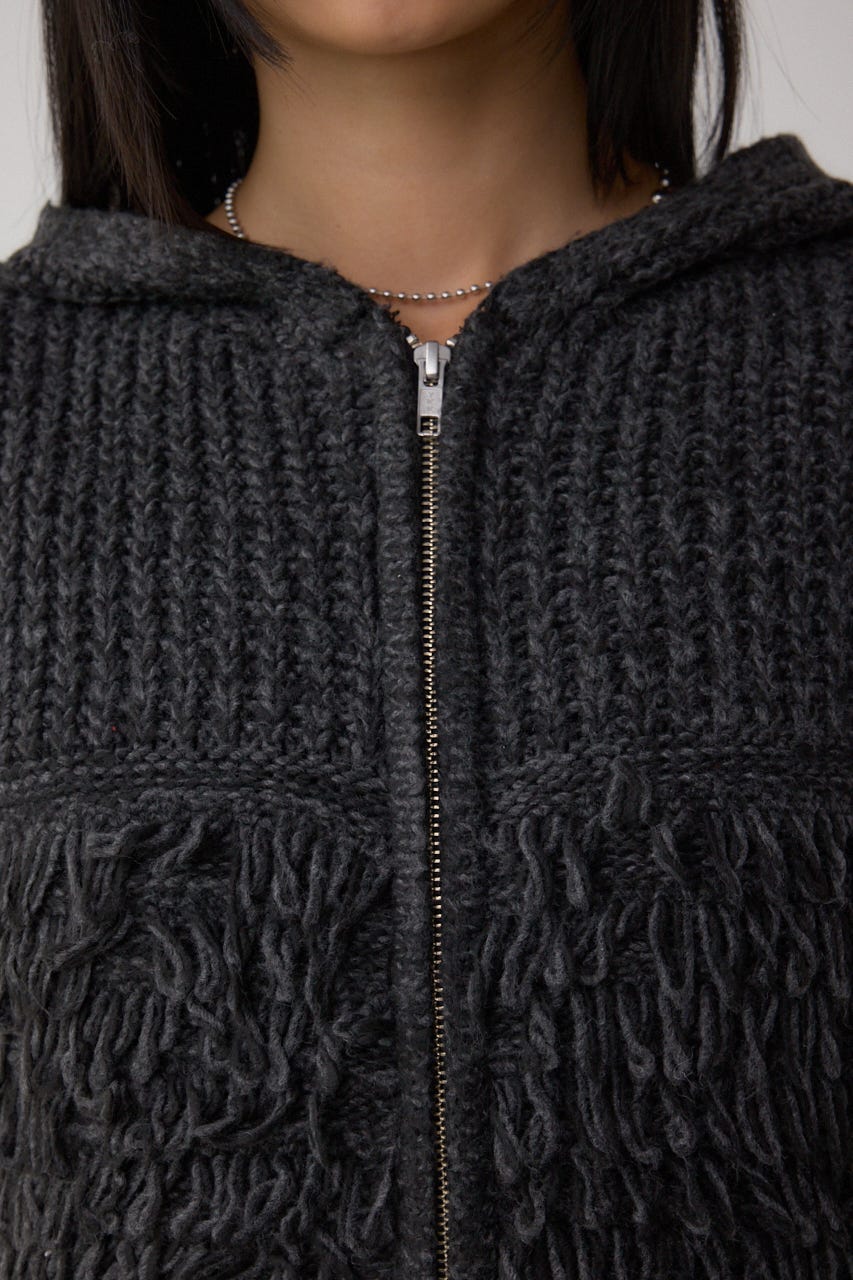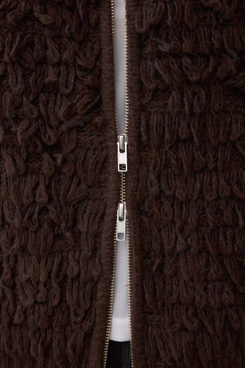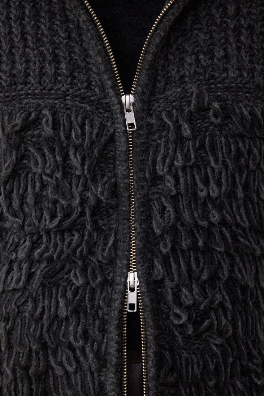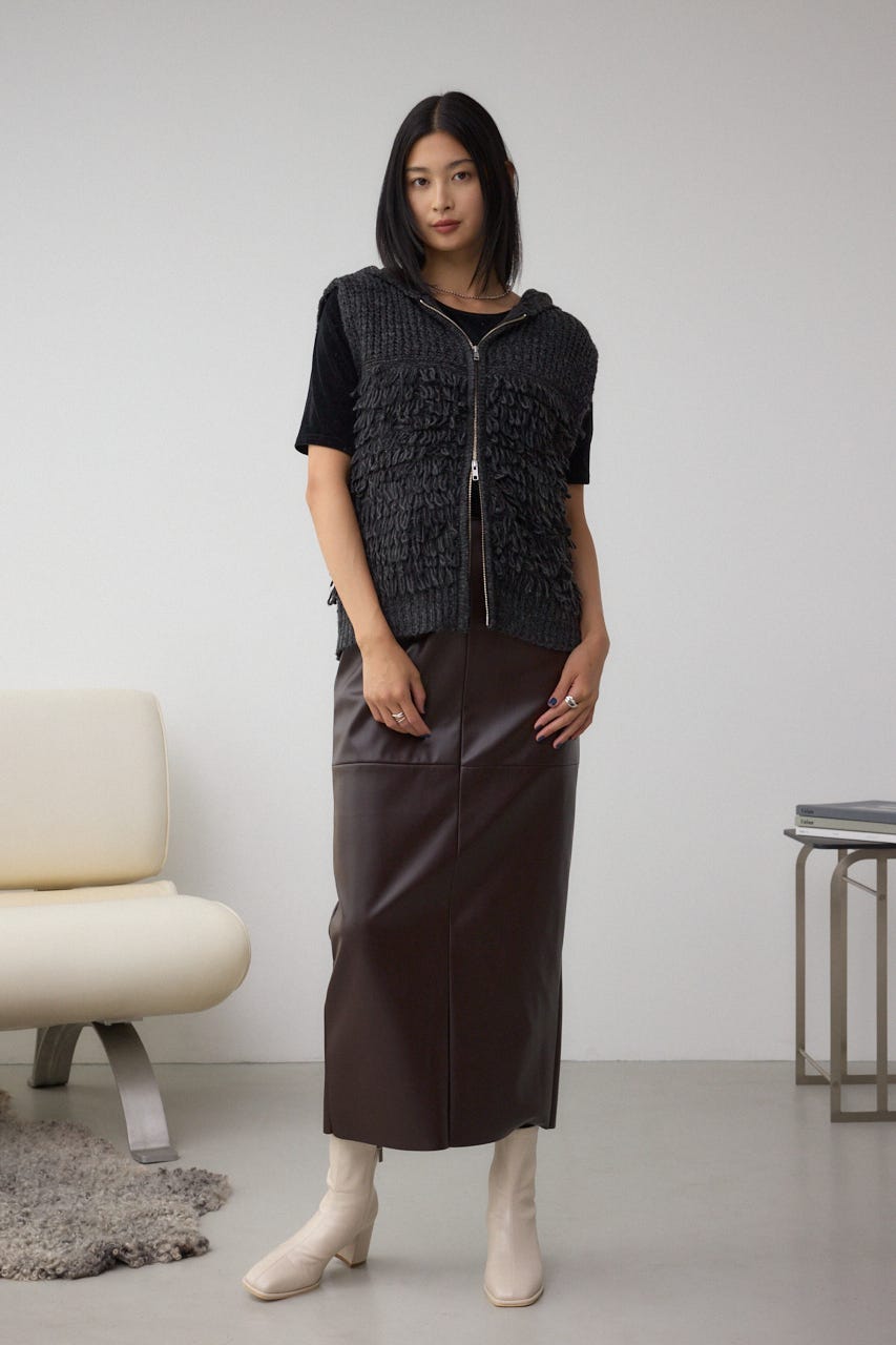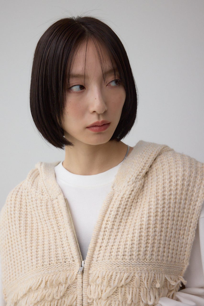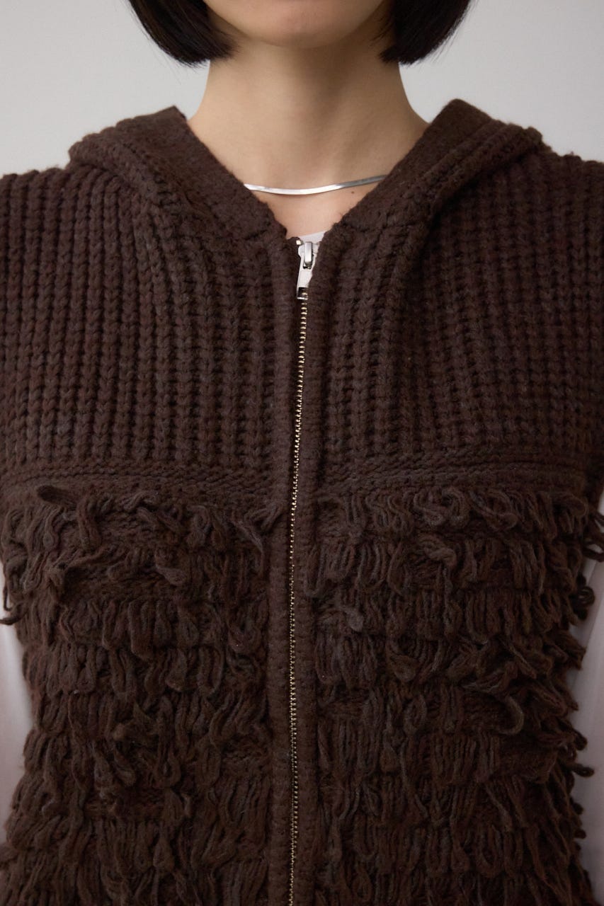 微配色の糸をループに編み立てた、表情のある編地が特徴のニットベスト。