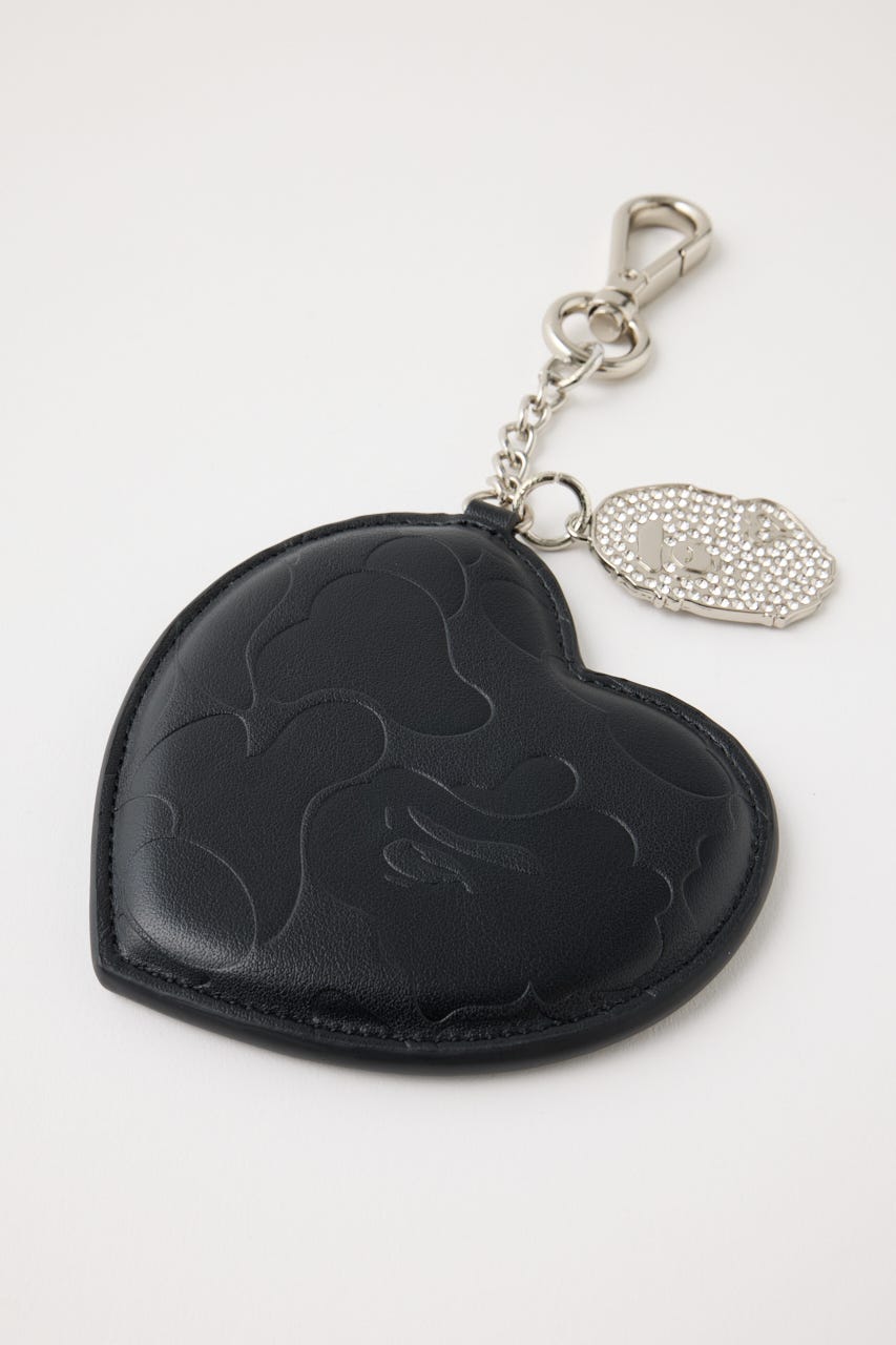 BAPE®の定番カモ柄を型押しで表現した、存在感のあるハート型ミラーチャーム。