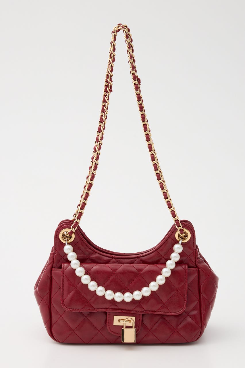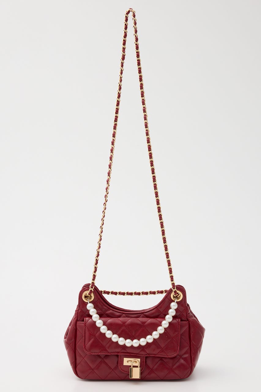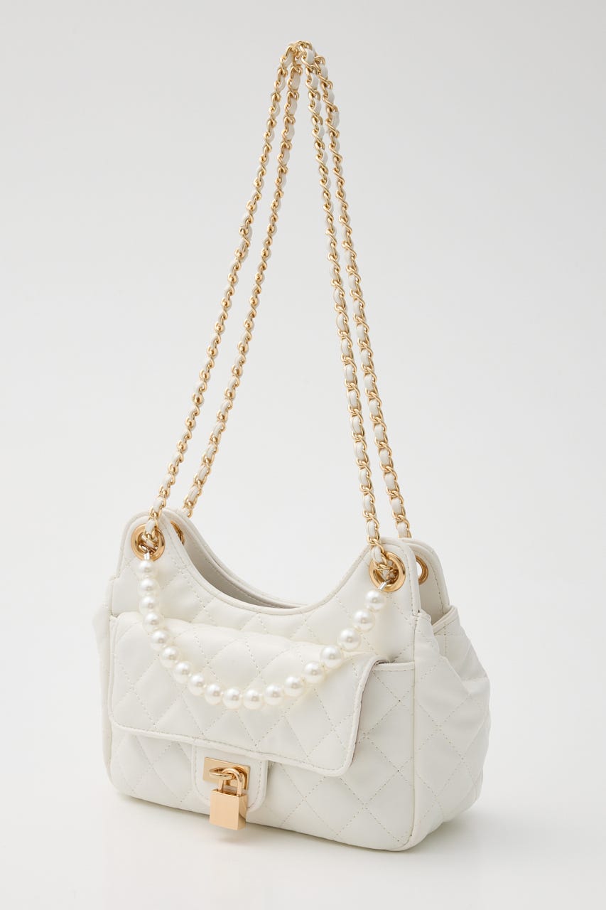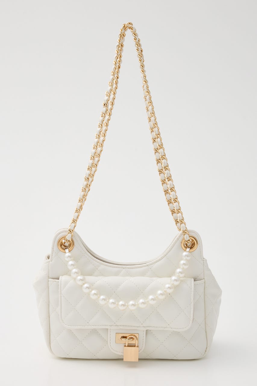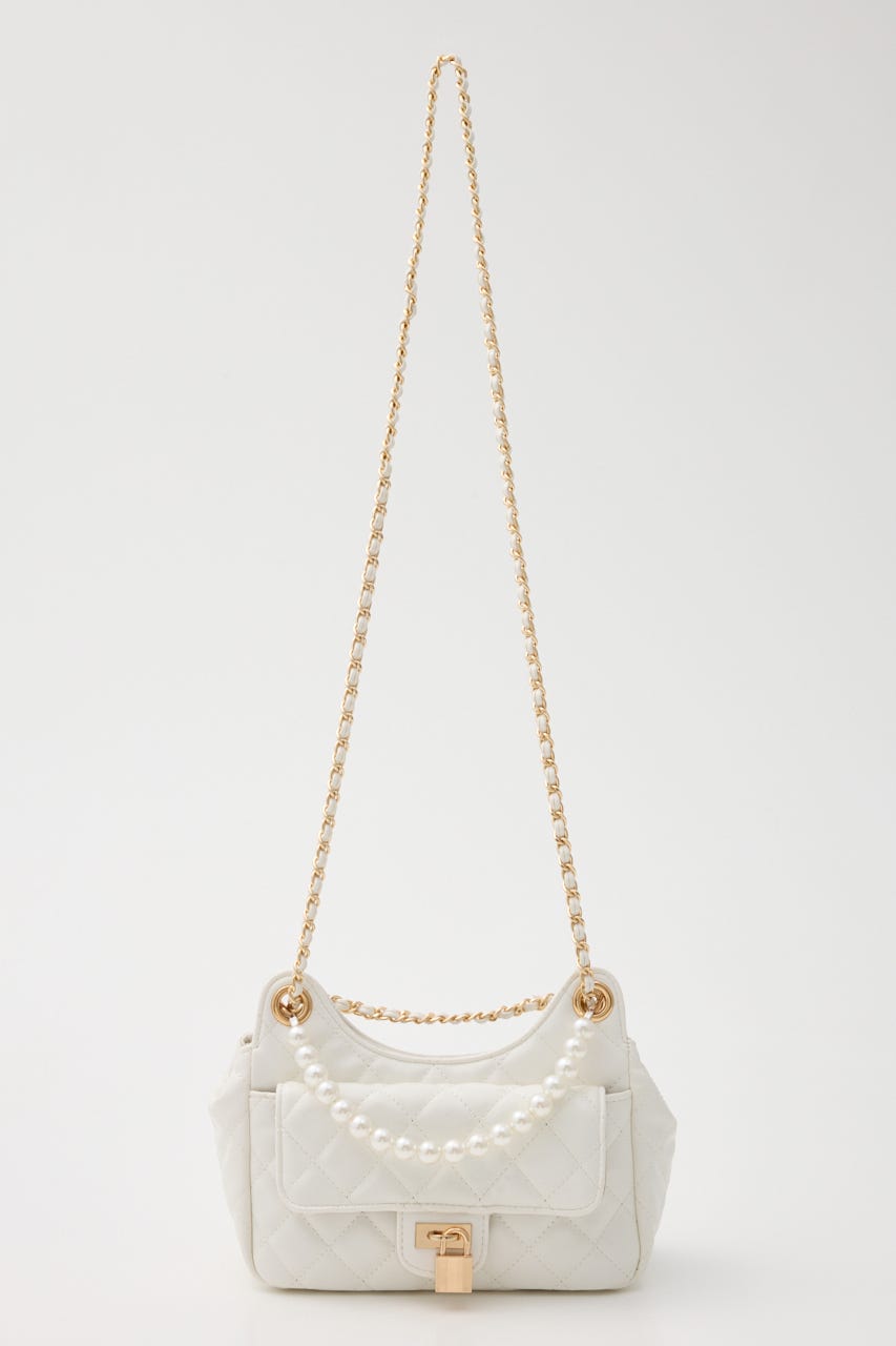 クラシカルなキルティング生地に、フェイクパールとパッドロックを添えました。