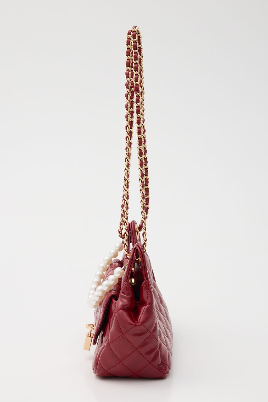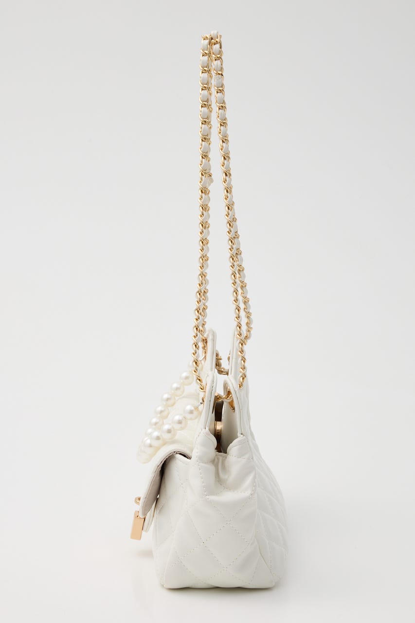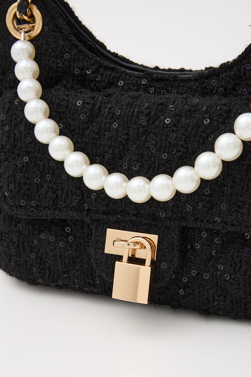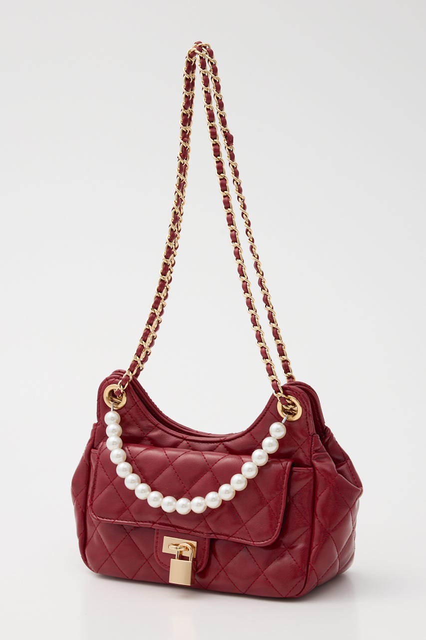 クラシカルなキルティング生地に、フェイクパールとパッドロックを添えました。