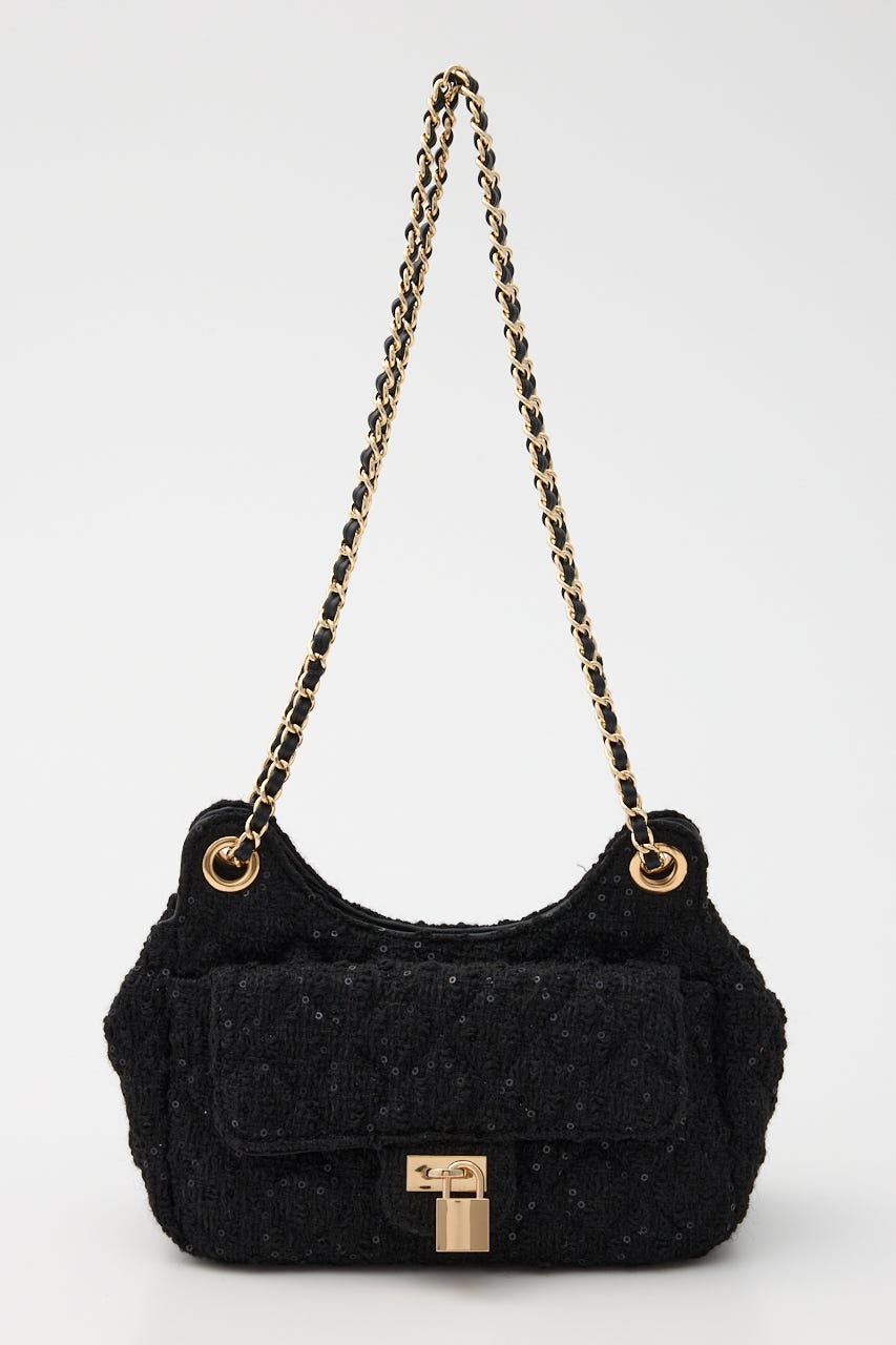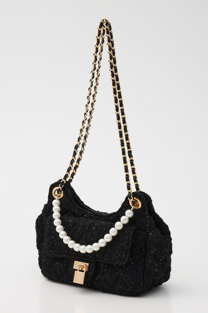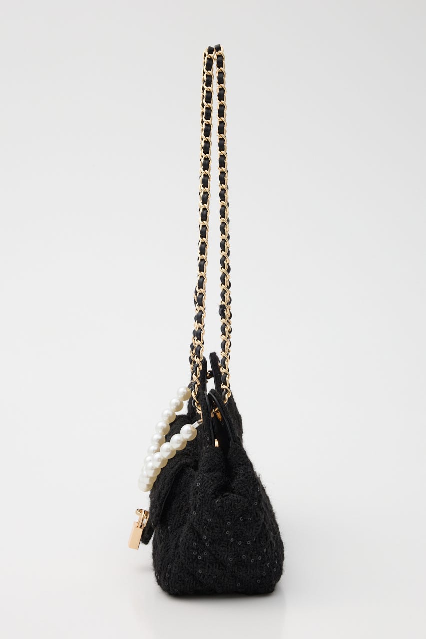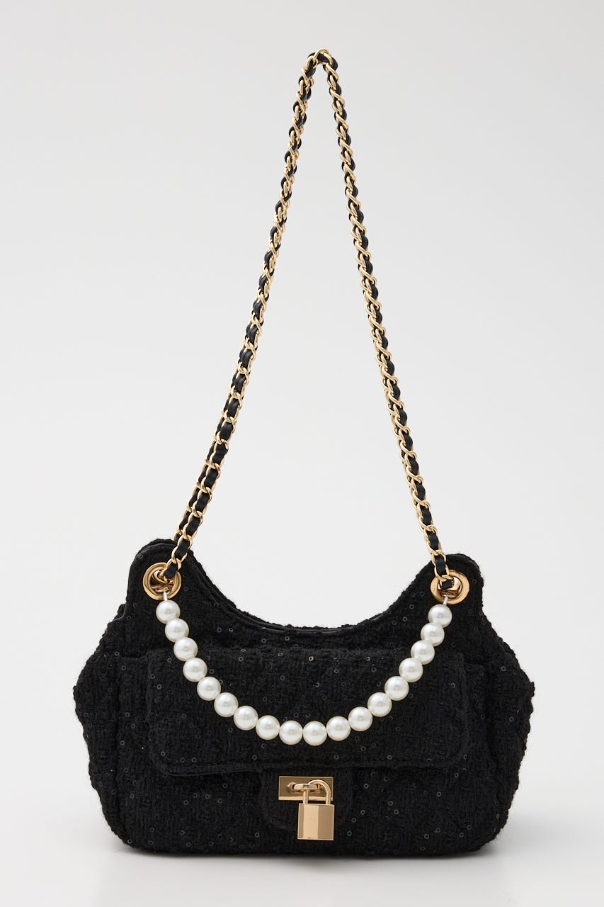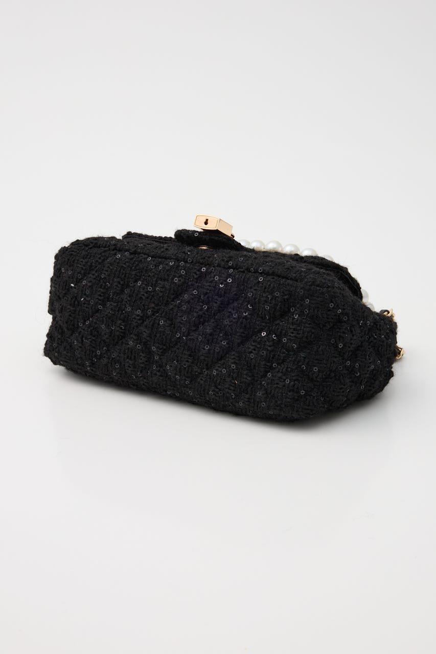 クラシカルなキルティング生地に、フェイクパールとパッドロックを添えました。