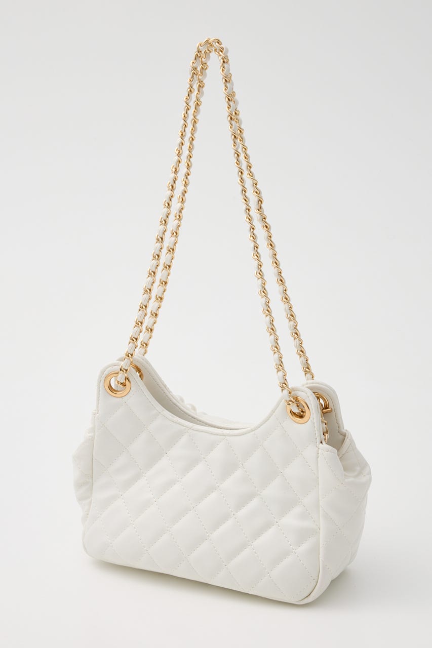 ころんとしたフォルムがキレイめからカジュアルまで、様々なスタイリングにアクセントを添えるキルティングチェーンミニバッグです。