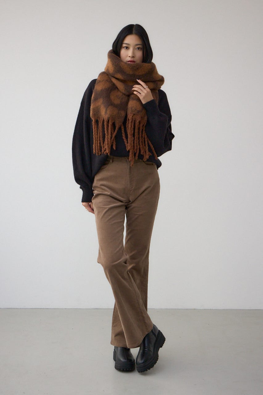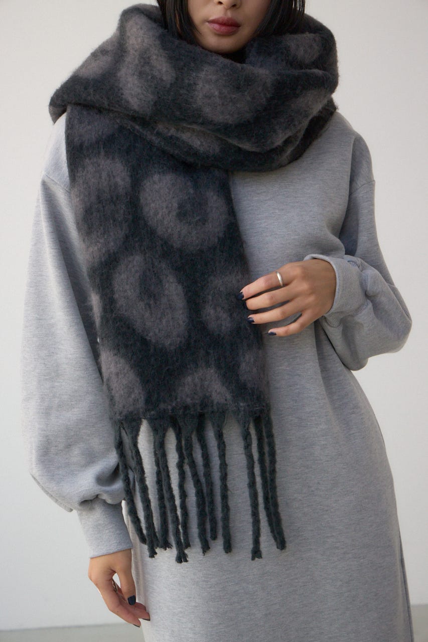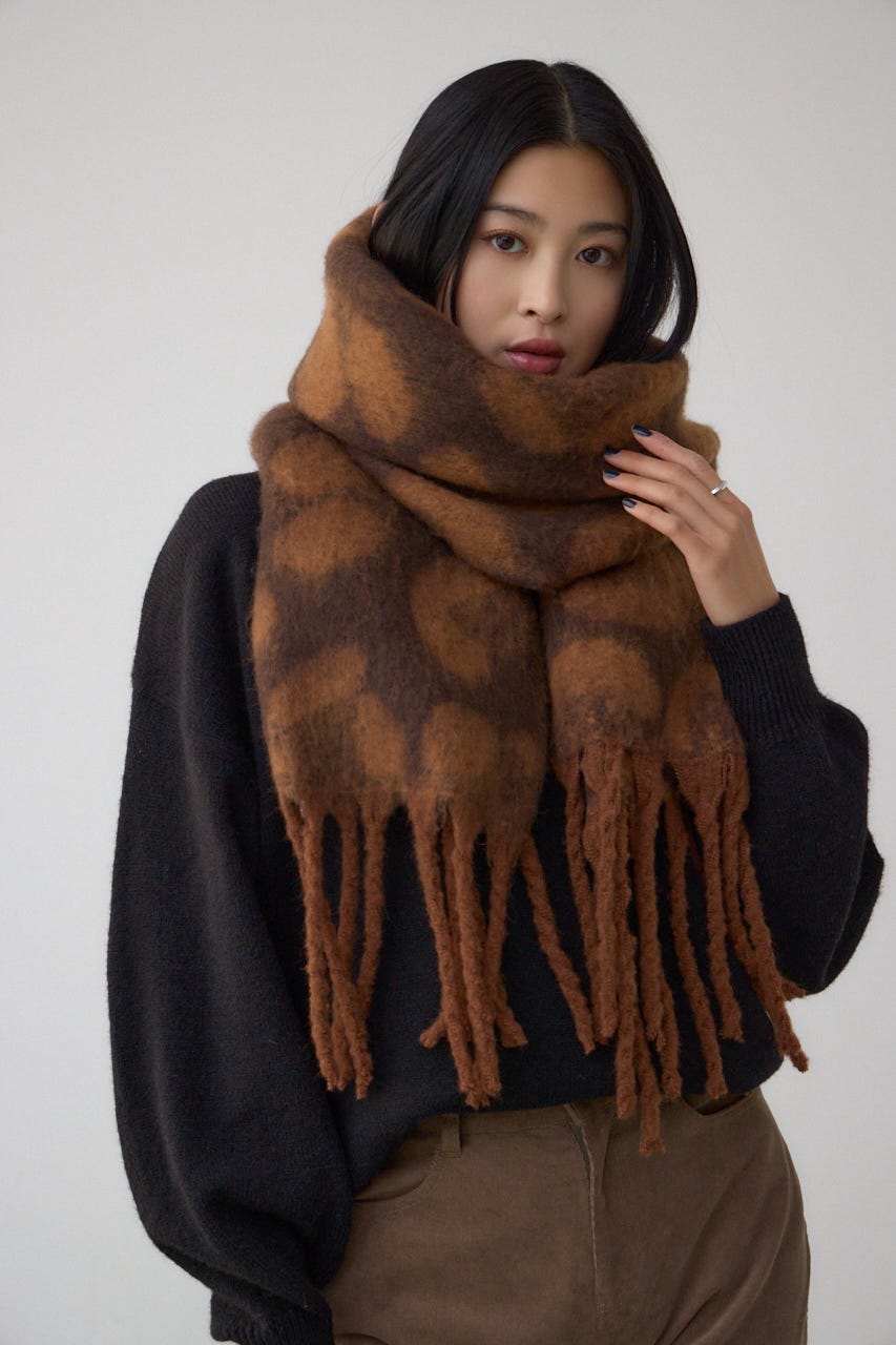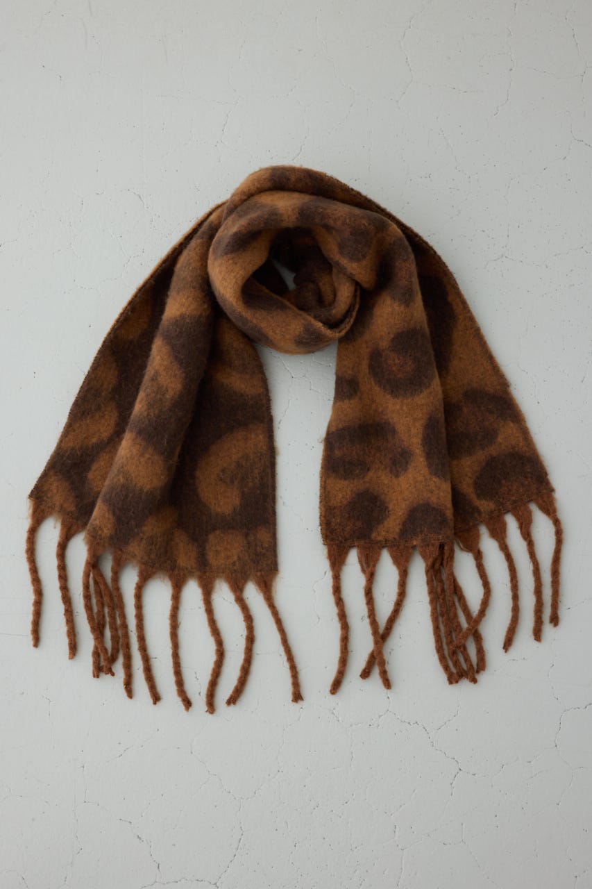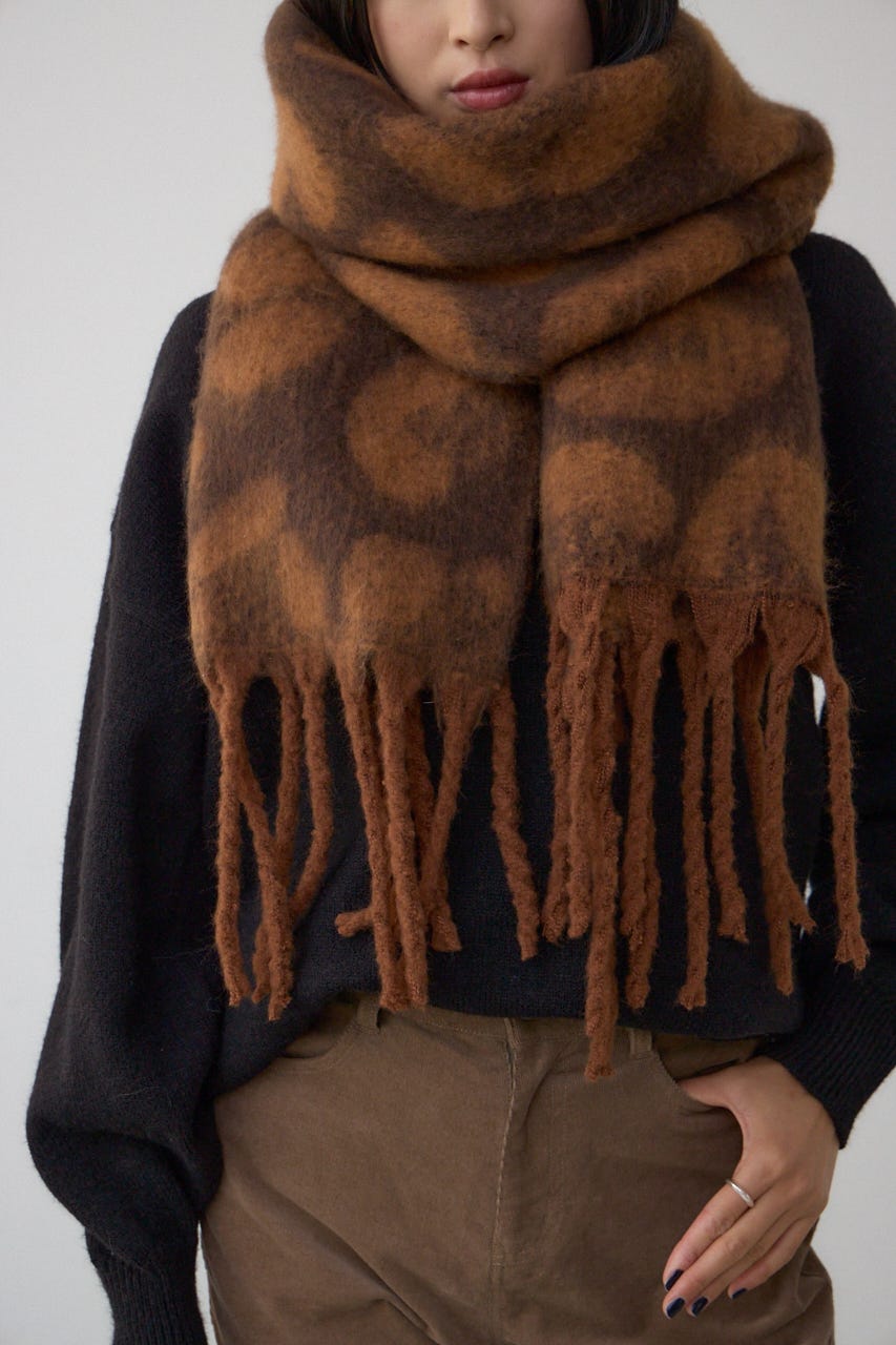 大きめのレオパード柄が今季らしいアクセントになる、レオパードジャガードマフラー。