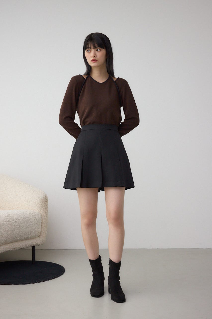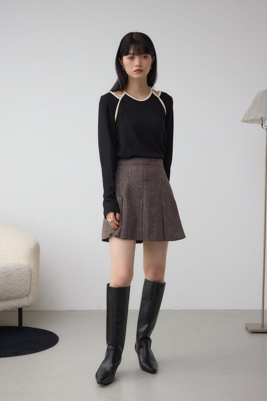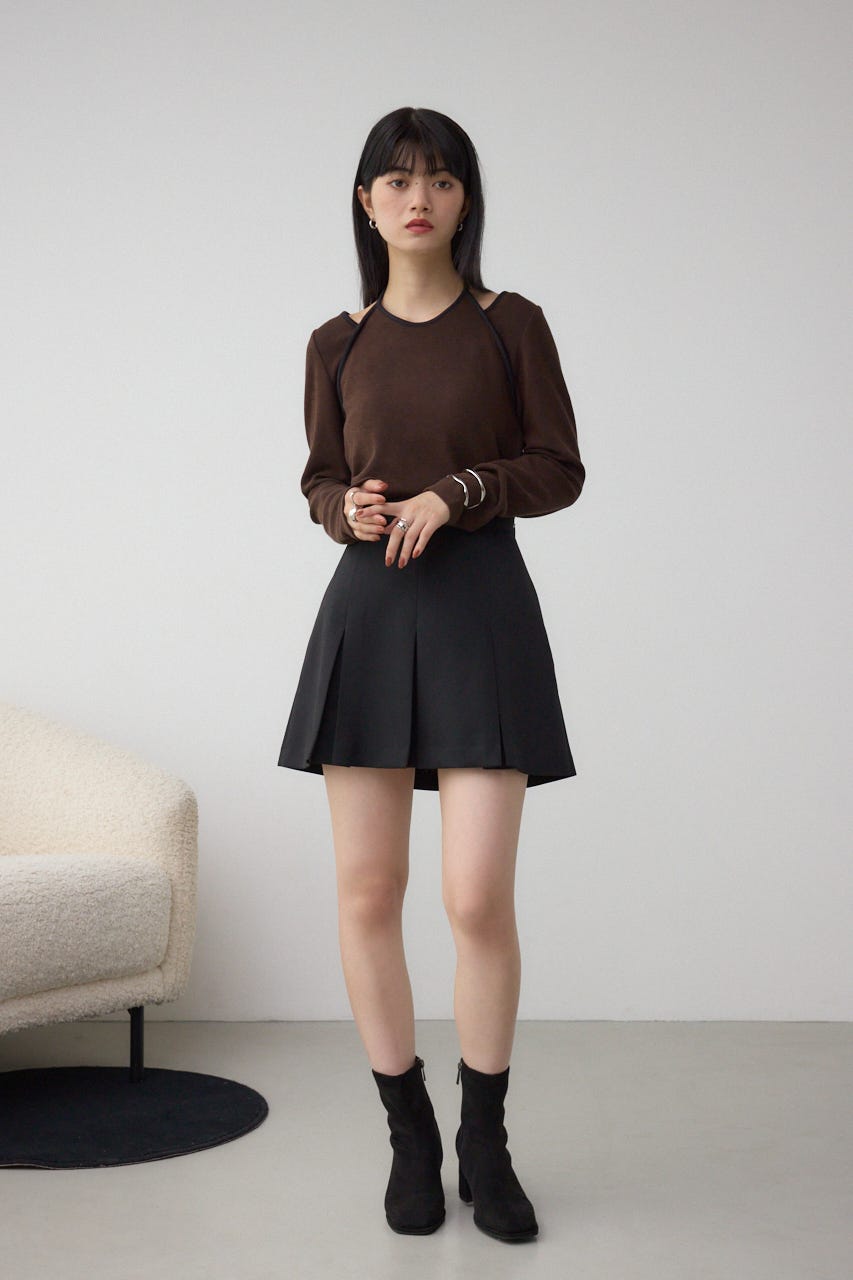 オーバーサイズなニットやトップスから少しプリーツを見せるスタイリングも◎。