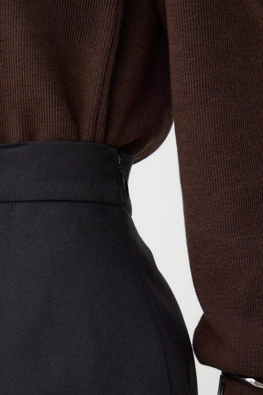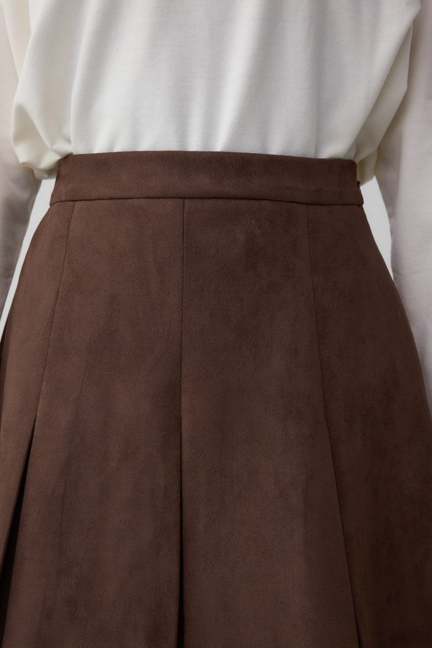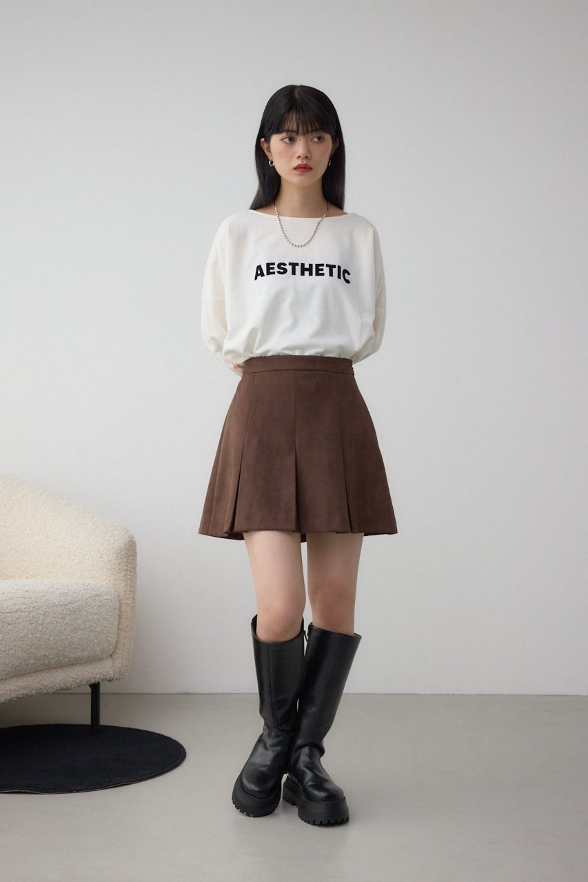 オーバーサイズなニットやトップスから少しプリーツを見せるスタイリングも◎。