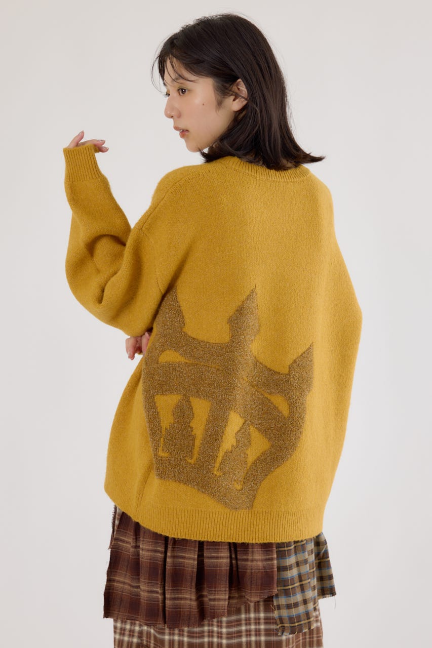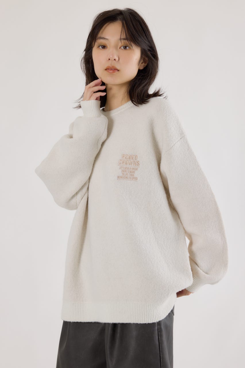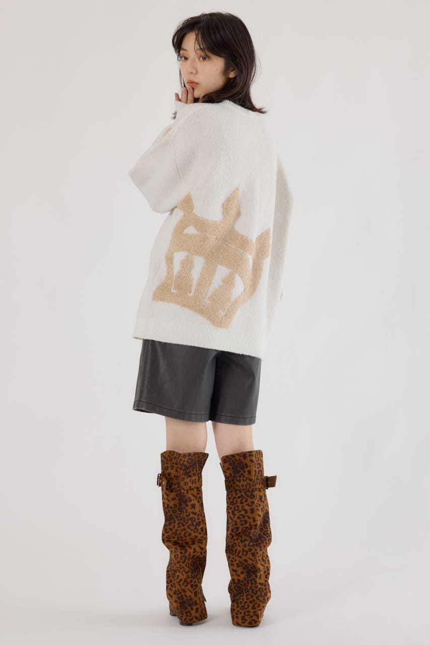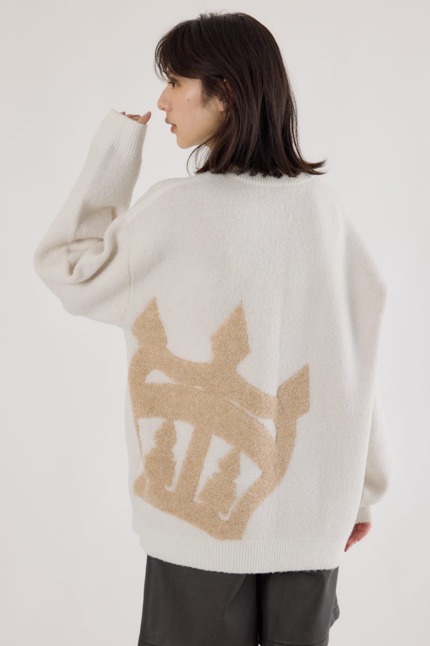 フロントはフリ刺繍、バックはループ編みでふわふわ感を出したビッグなクラウンのジャガードデザインです。