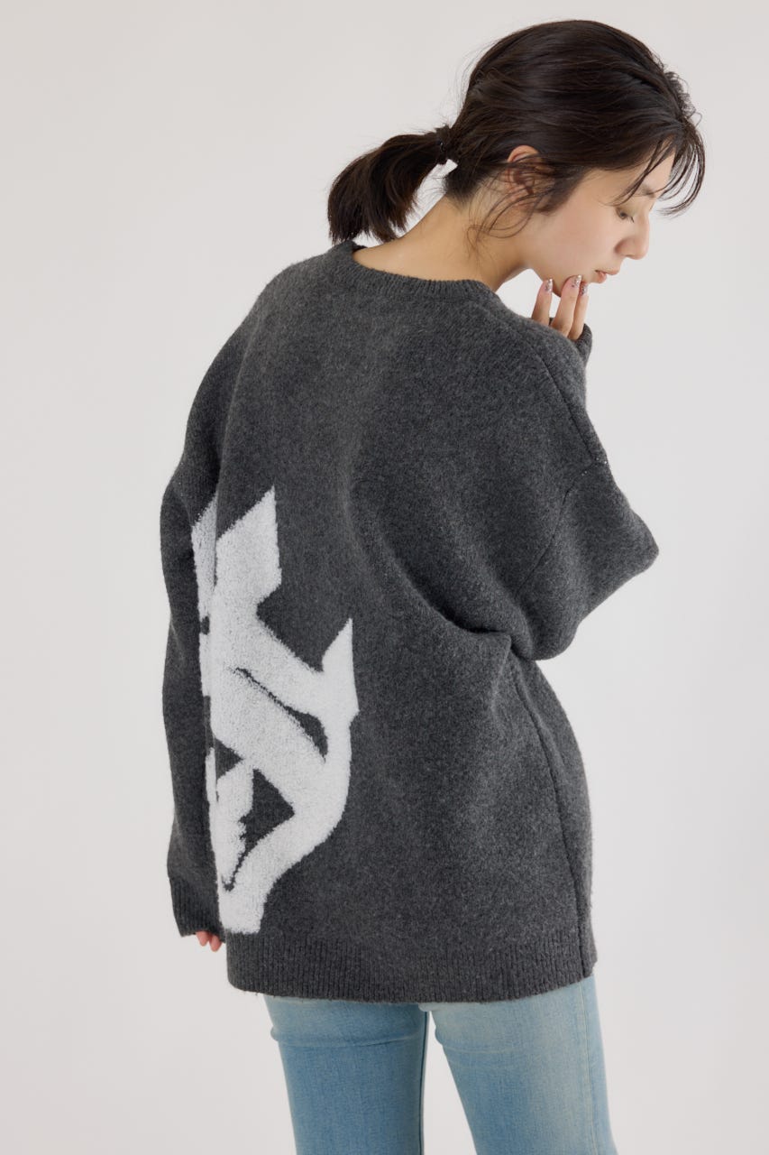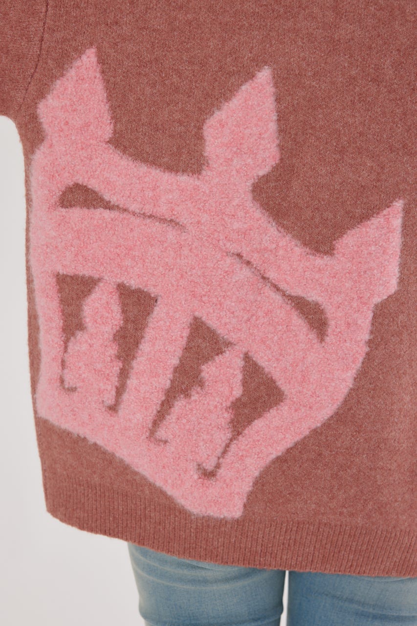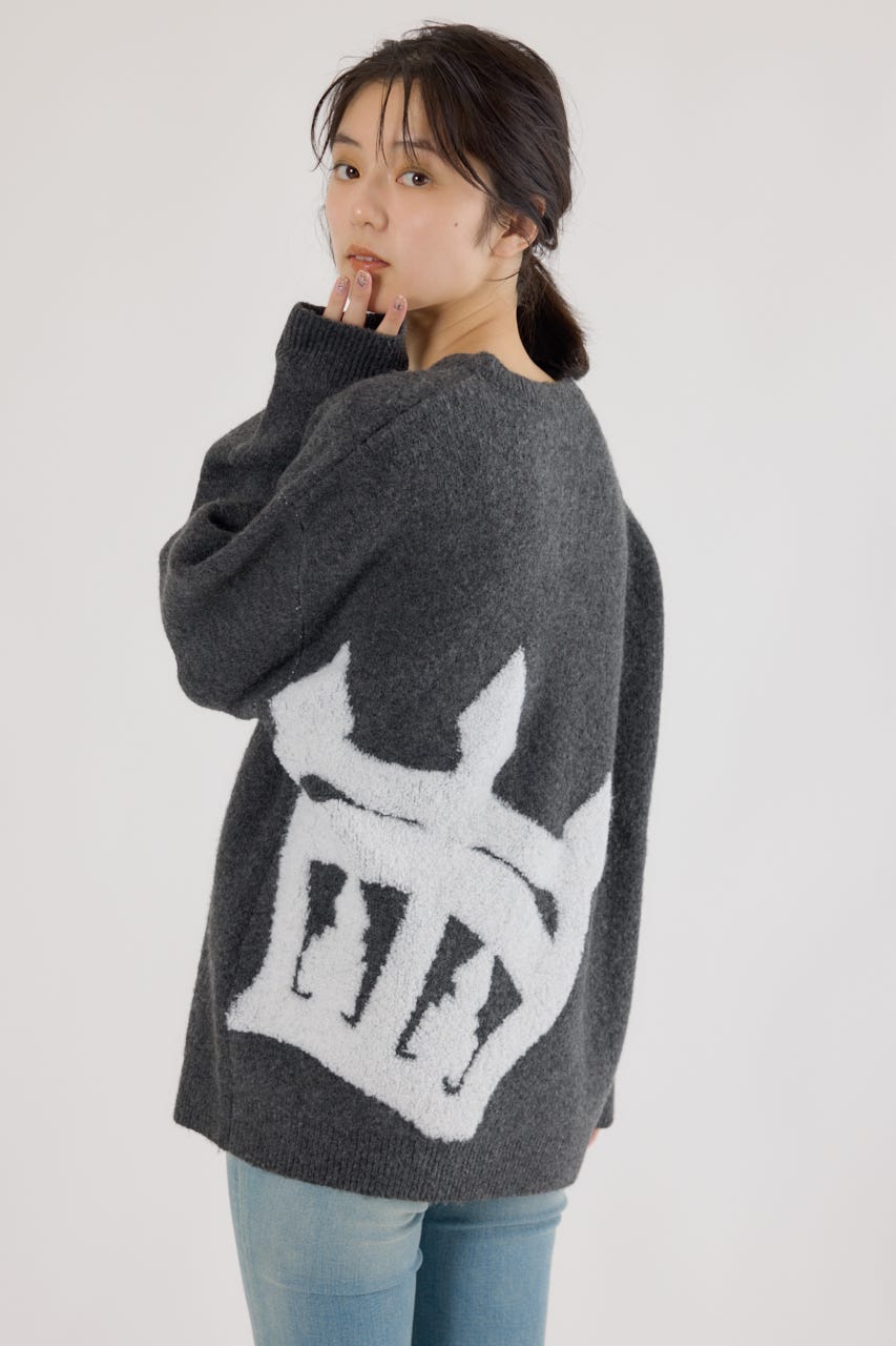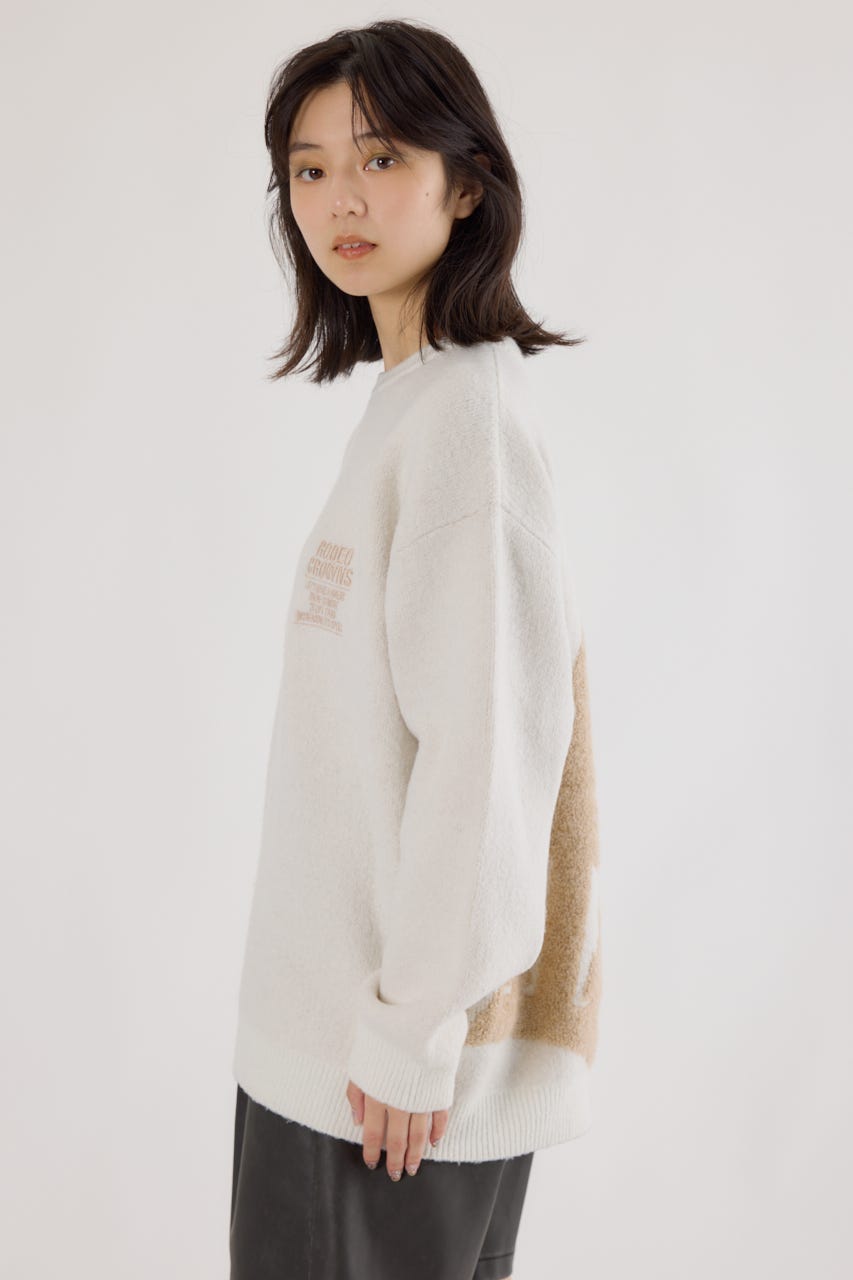 フロントはフリ刺繍、バックはループ編みでふわふわ感を出したビッグなクラウンのジャガードデザインです。