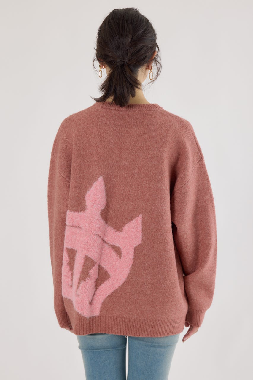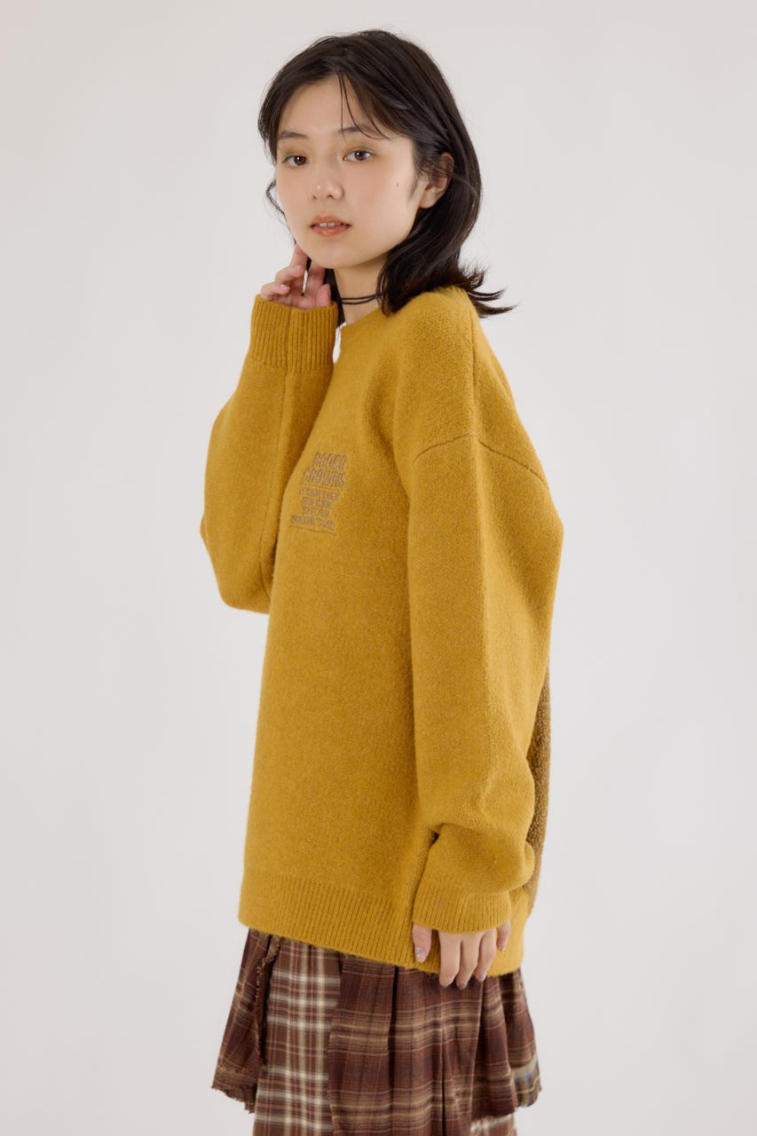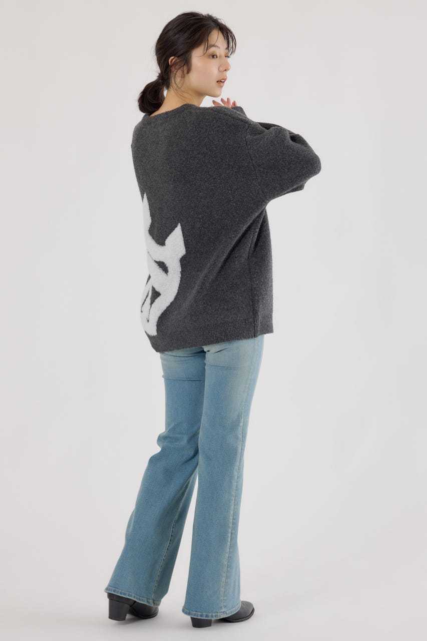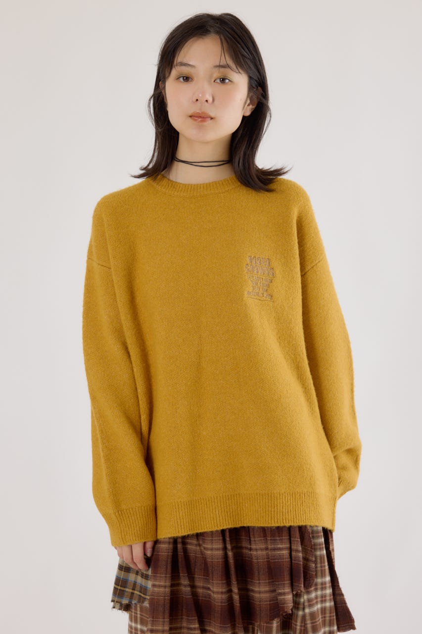 フロントはフリ刺繍、バックはループ編みでふわふわ感を出したビッグなクラウンのジャガードデザインです。
