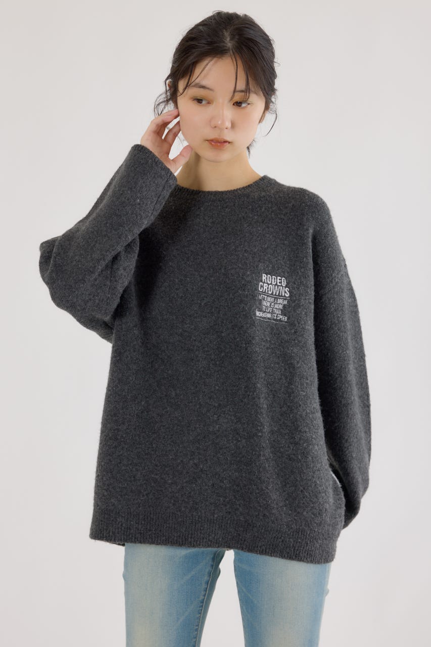 RODEOロゴ部分はシングルジャガード編みのため、ループロゴ部分に小さな穴のような編地が見られる場合があります。