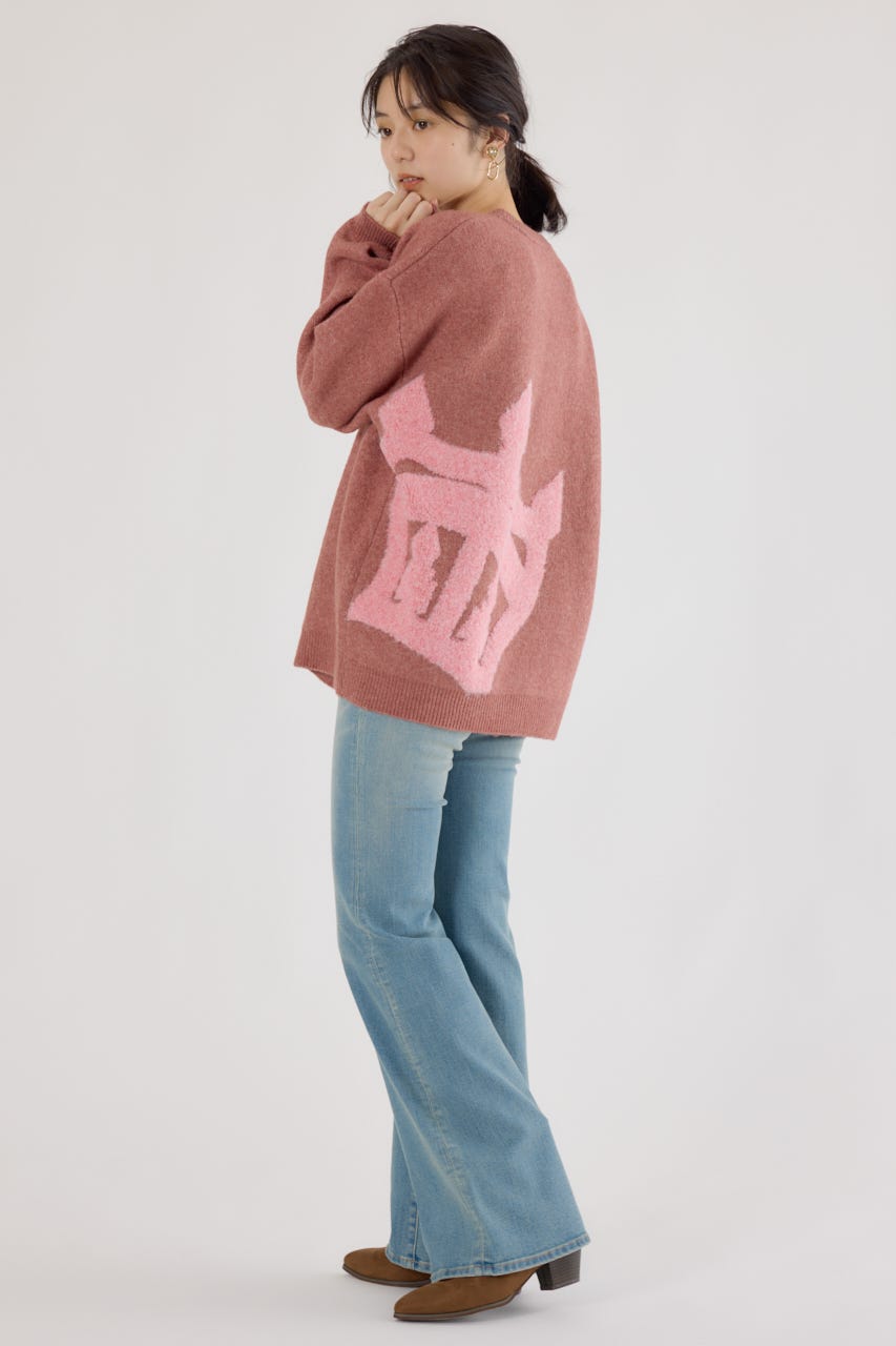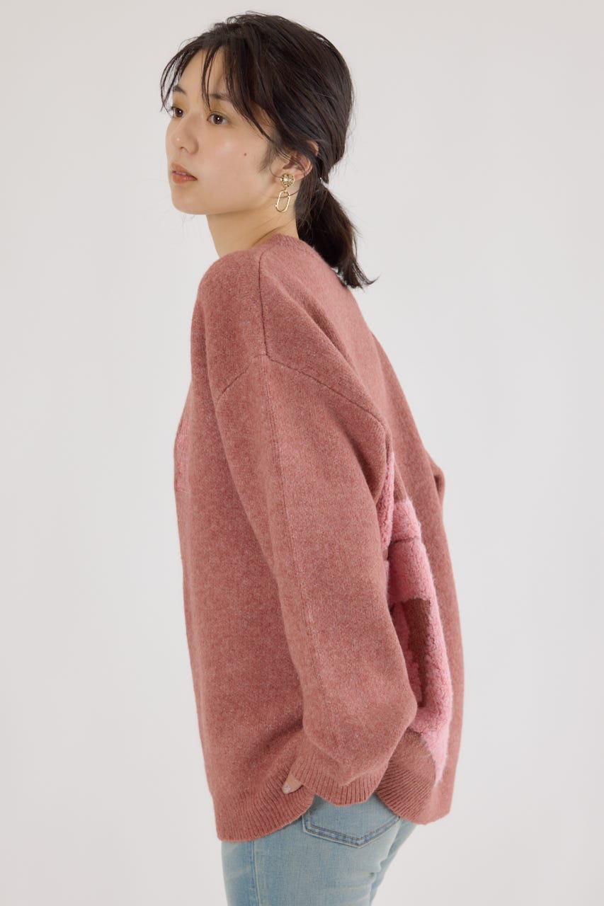 ブークレ糸とループ糸を組み合わせたジャガード編みのため、編地と素材の特性上、表面にネップや糸の浮きが多少生じる場合があります。