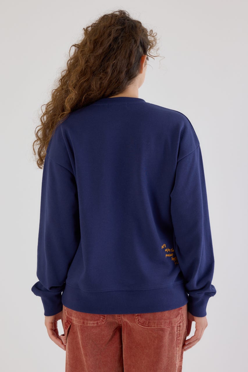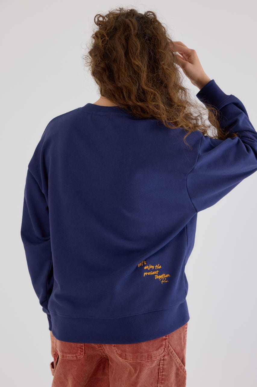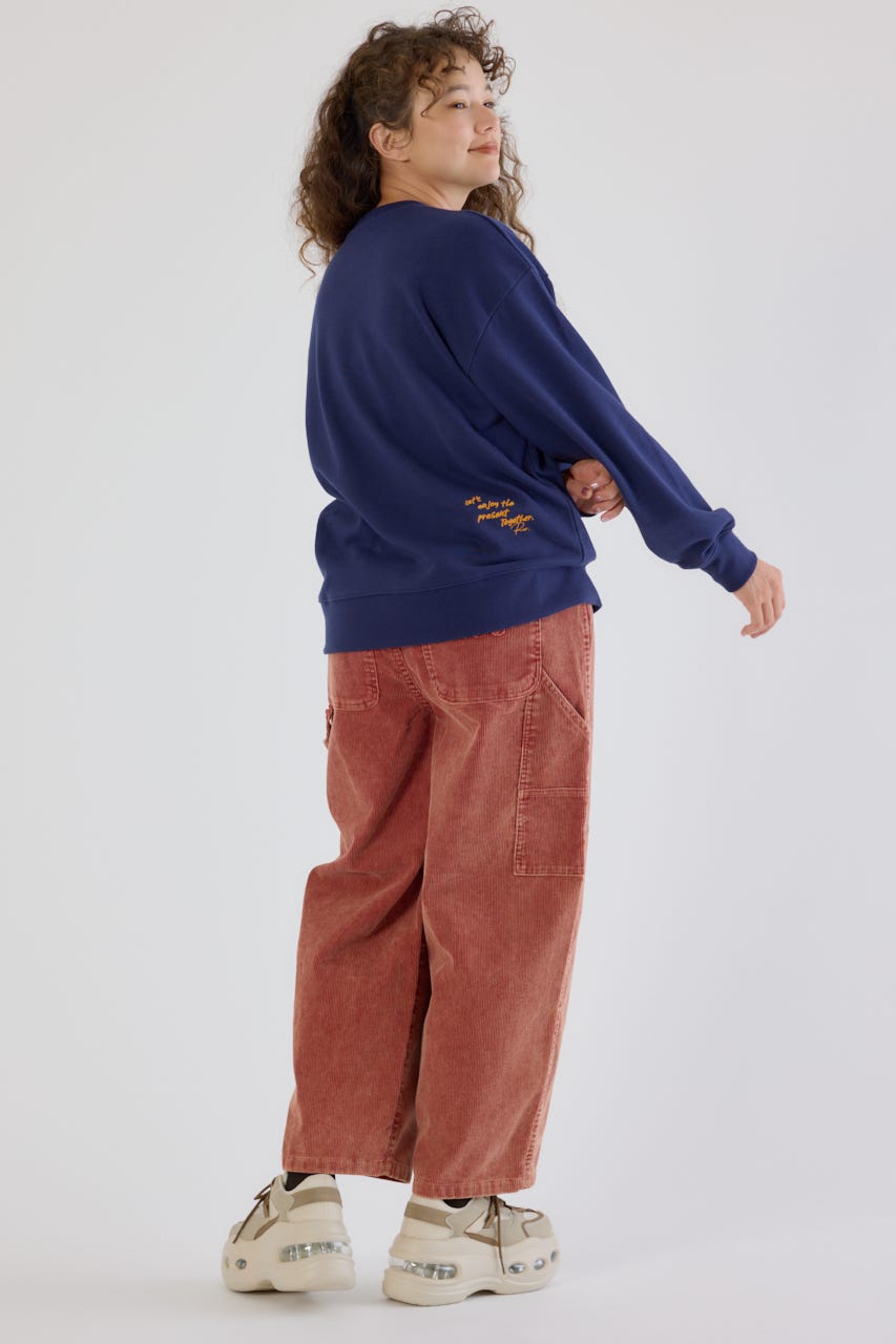 古着のスウェットに刺繍でリメイクしたかのようなデザイン。