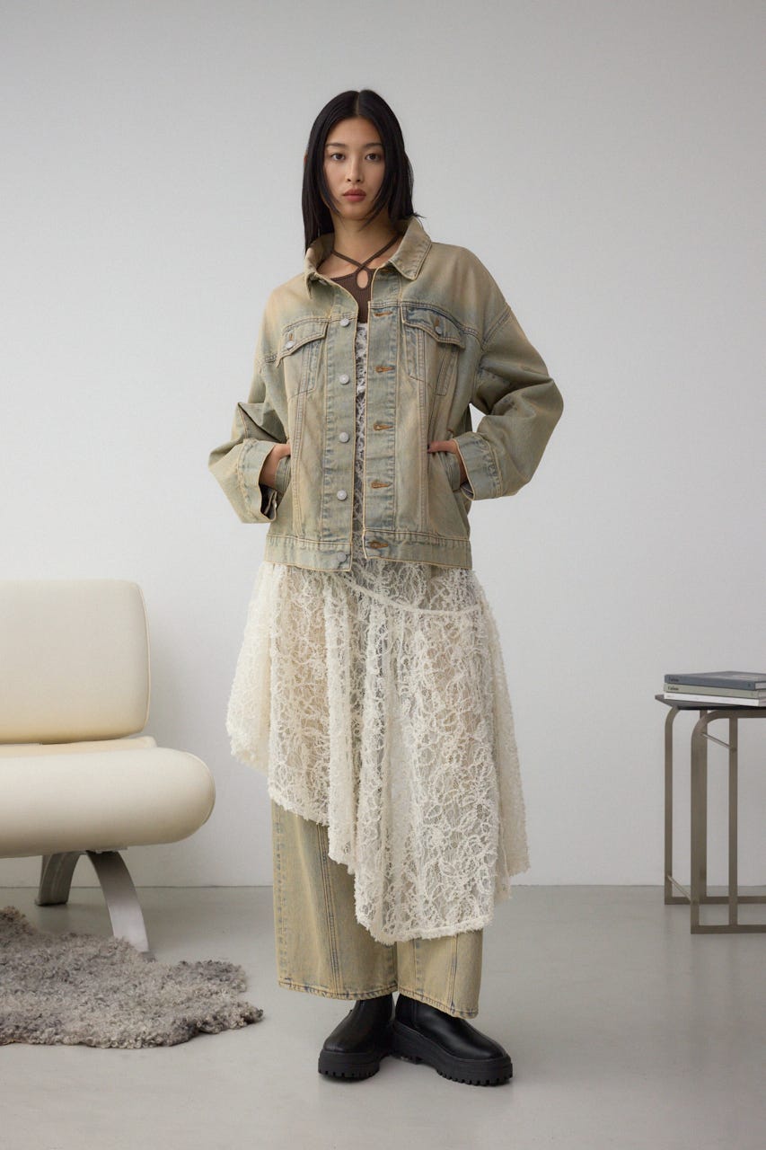 同素材、同じ加工を施したデニムパンツ(250IAC11-0121 AZUL DENIM ヴィンテージワイドデニム)、デニムスカート(250IAC11-0141 AZUL DENIM ヴィンテージデニムミニスカート)とのセットアップ着用がおすすめです。