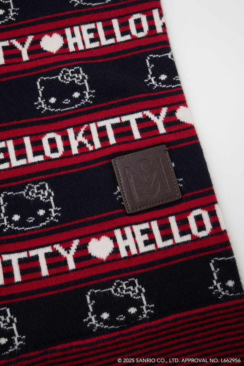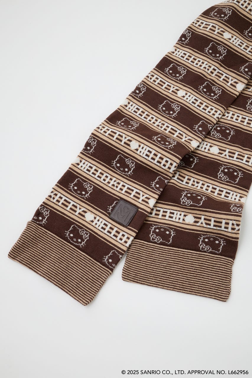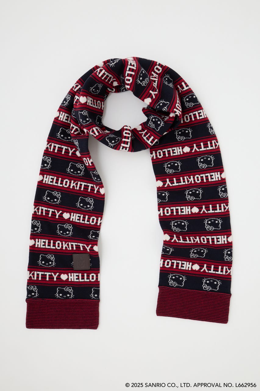 クラシックな配色とボーダーにHELLO KITTYのロゴと顔をジャガードで表現した遊び心のあるマフラー。