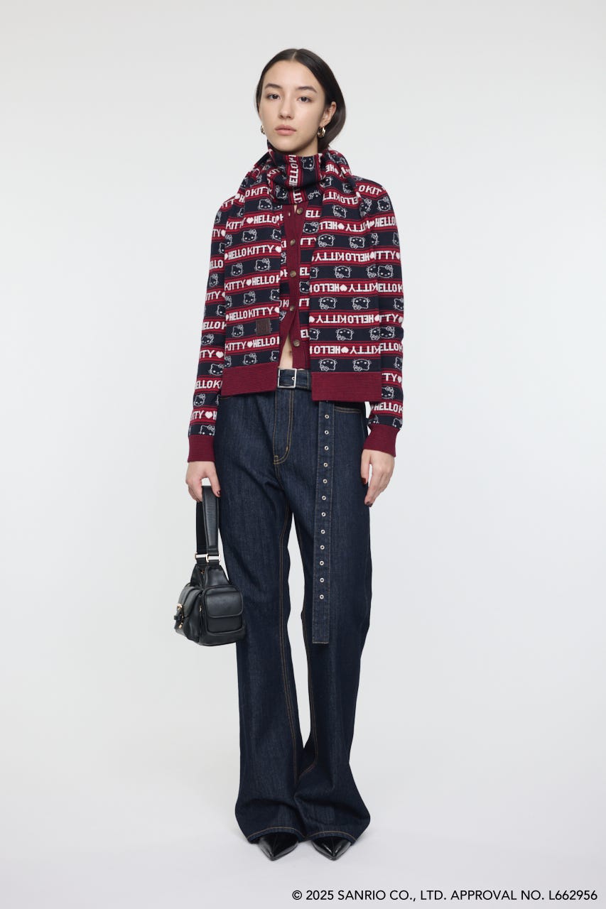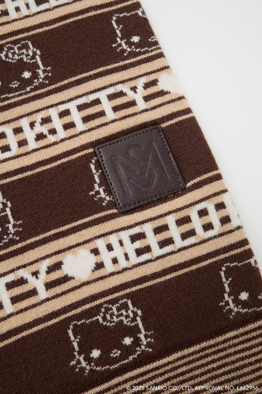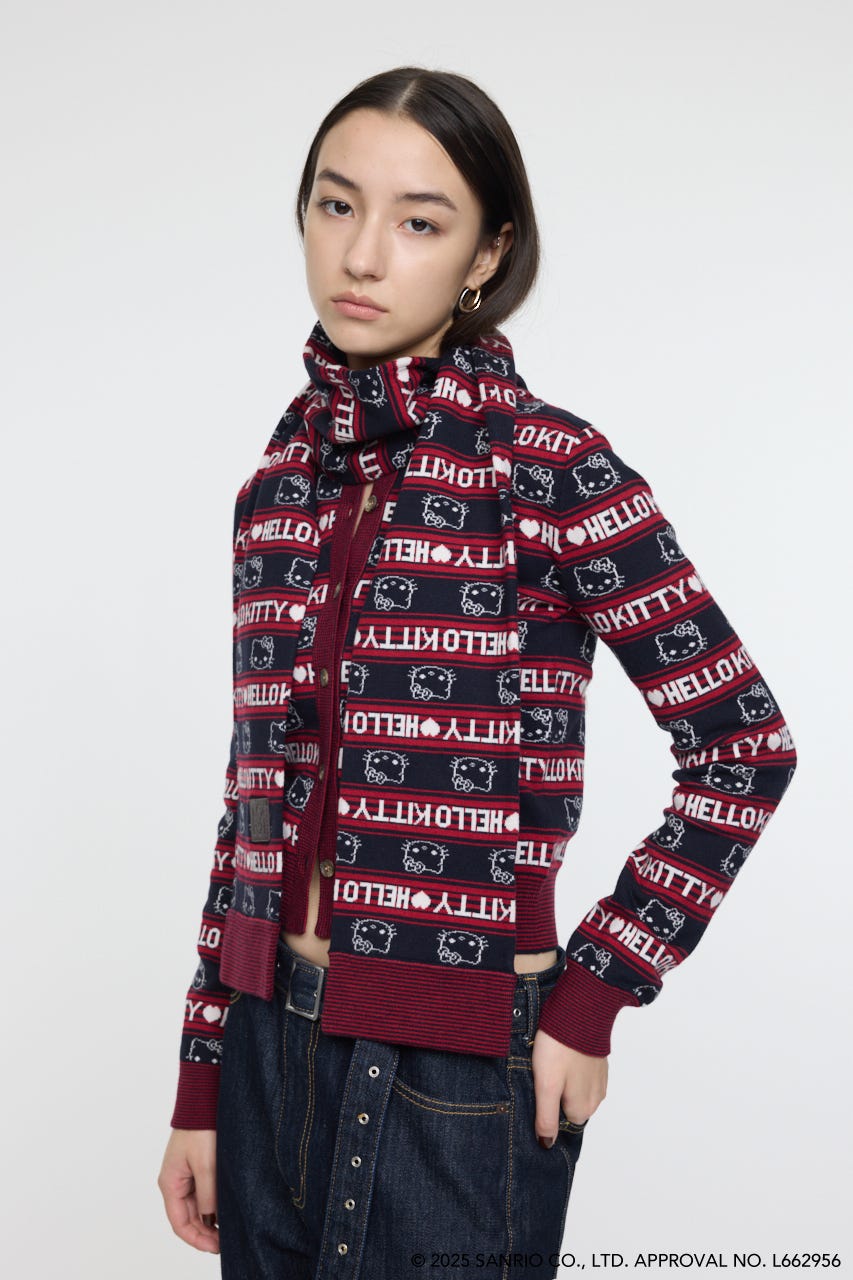 クラシックな配色とボーダーにHELLO KITTYのロゴと顔をジャガードで表現した遊び心のあるマフラー。