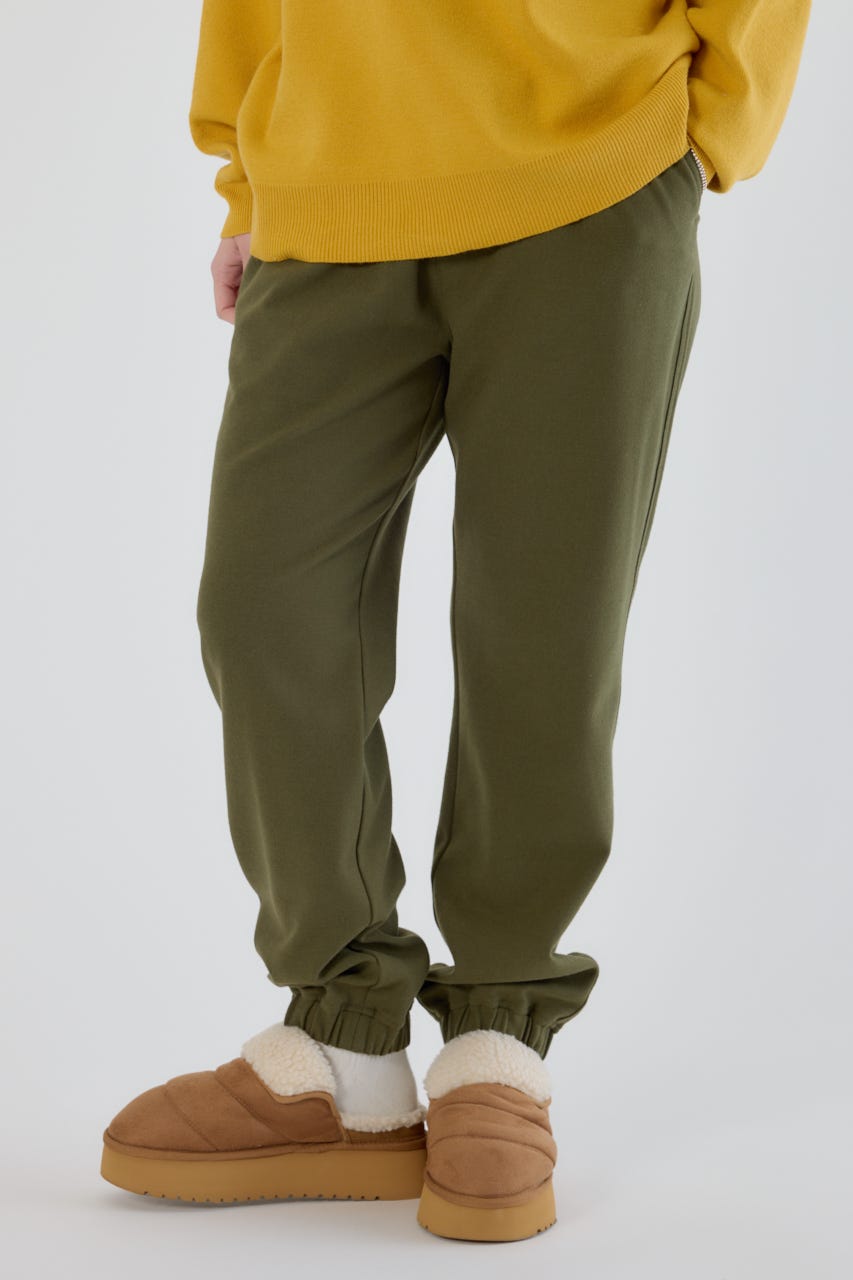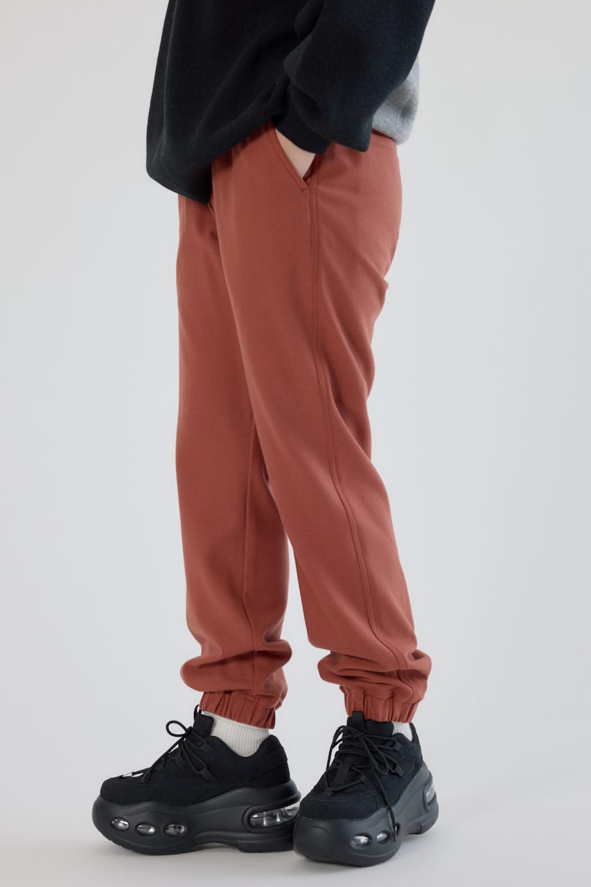 ストレッチ性のある起毛素材で、快適な穿き心地のジョグパンツ。