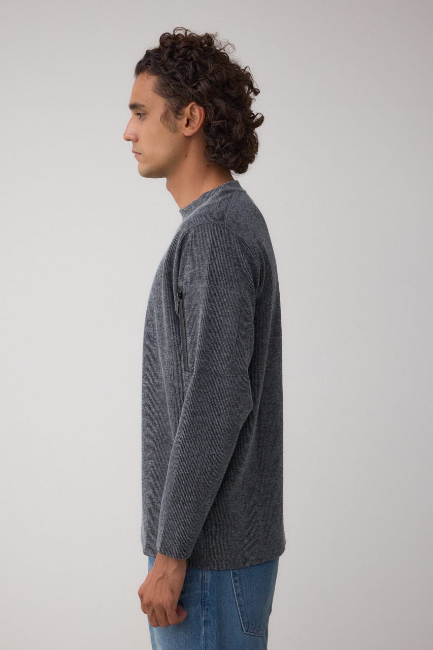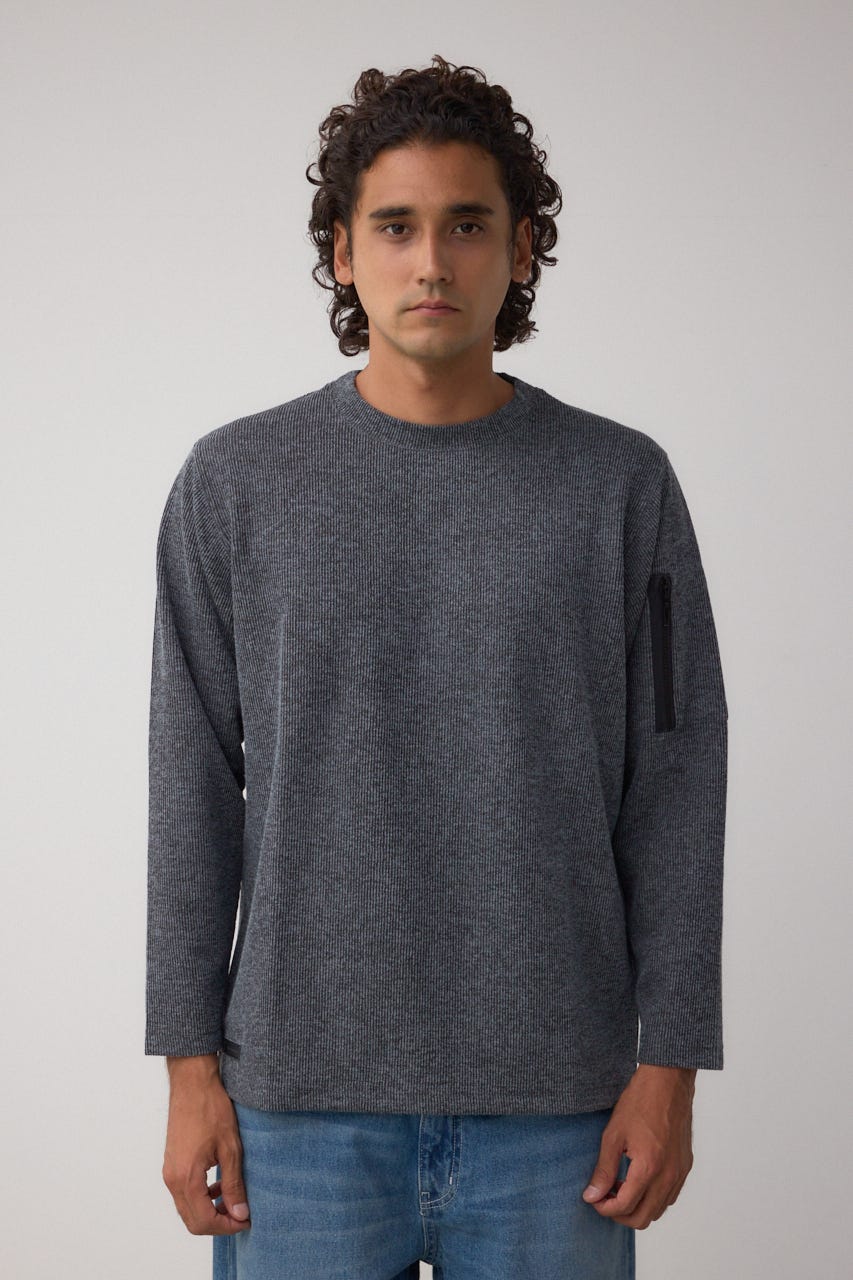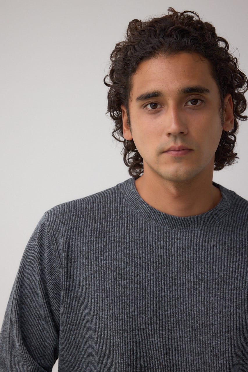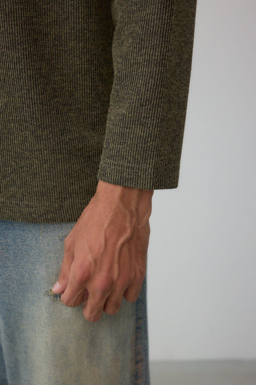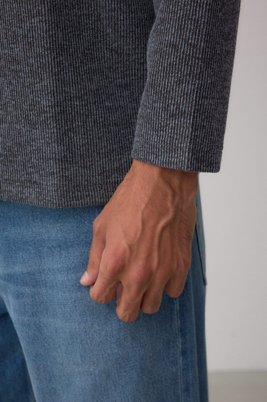 メランジ感のあるリブ見えジャガード編みで表情を出した長袖トップスになります。