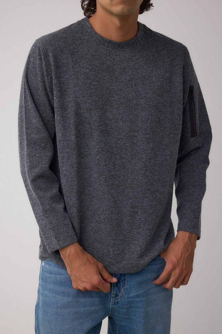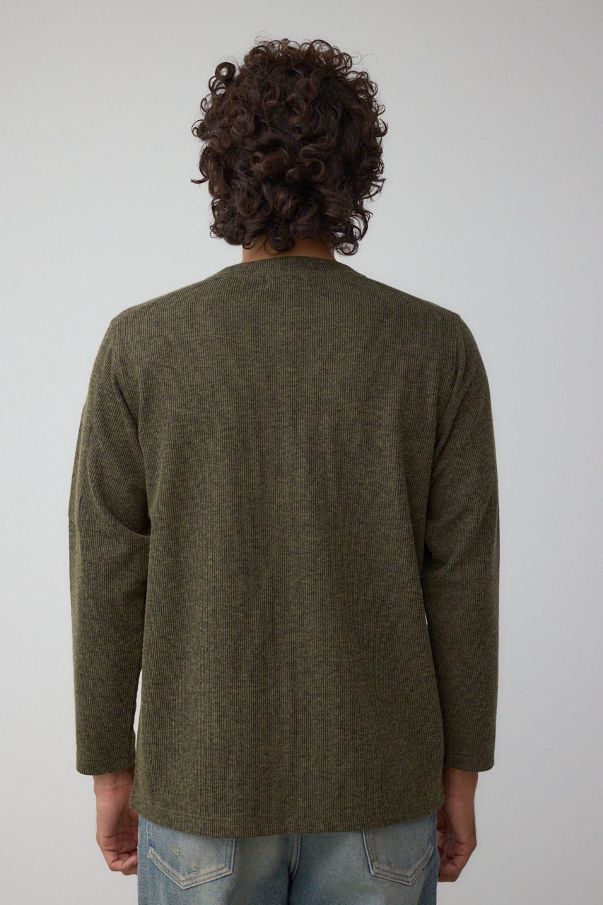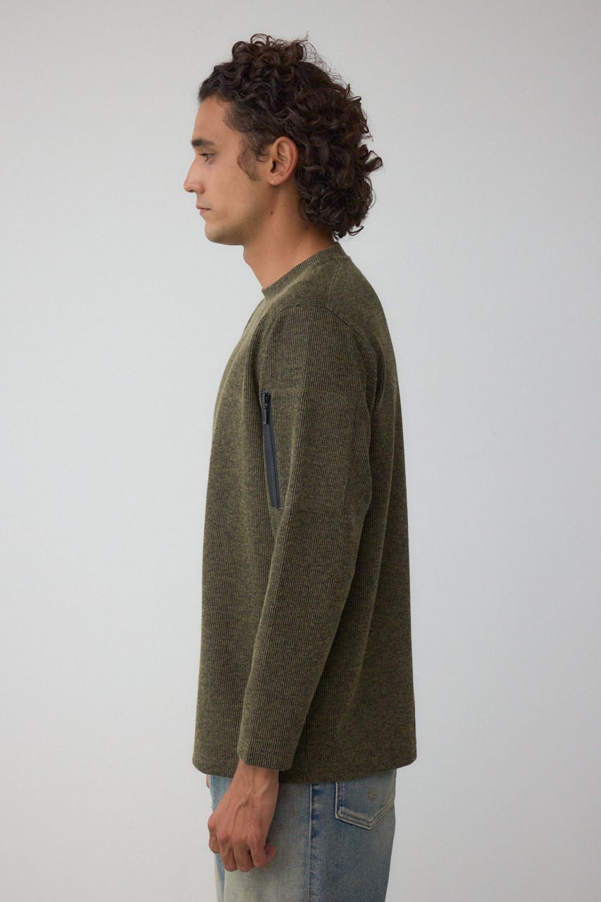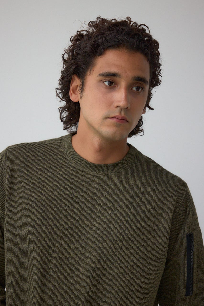メランジ感のあるリブ見えジャガード編みで表情を出した長袖トップスになります。