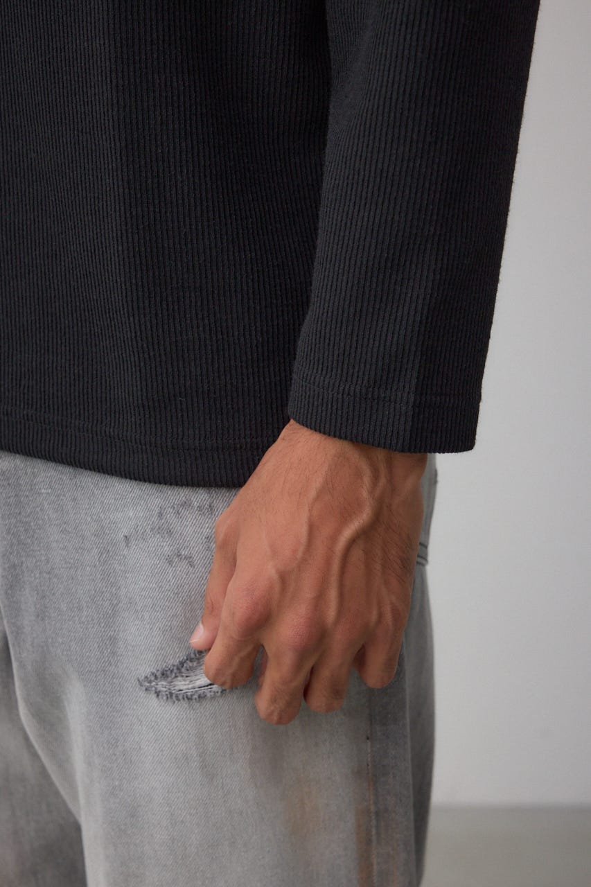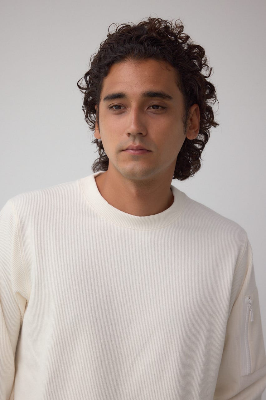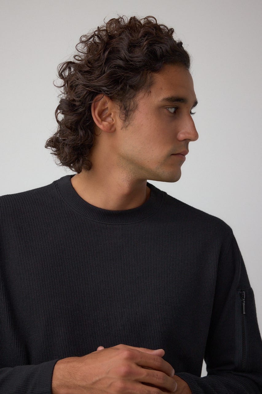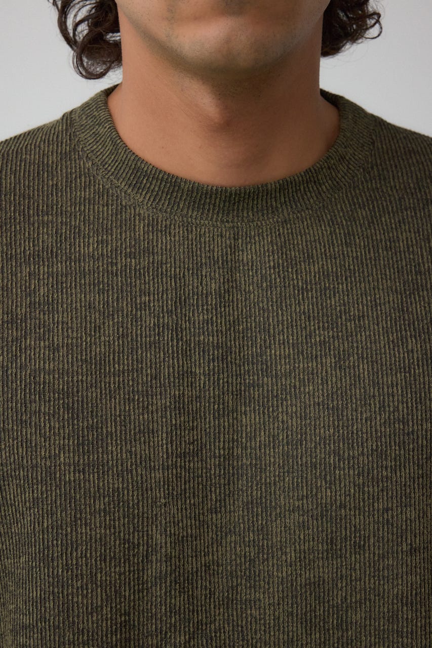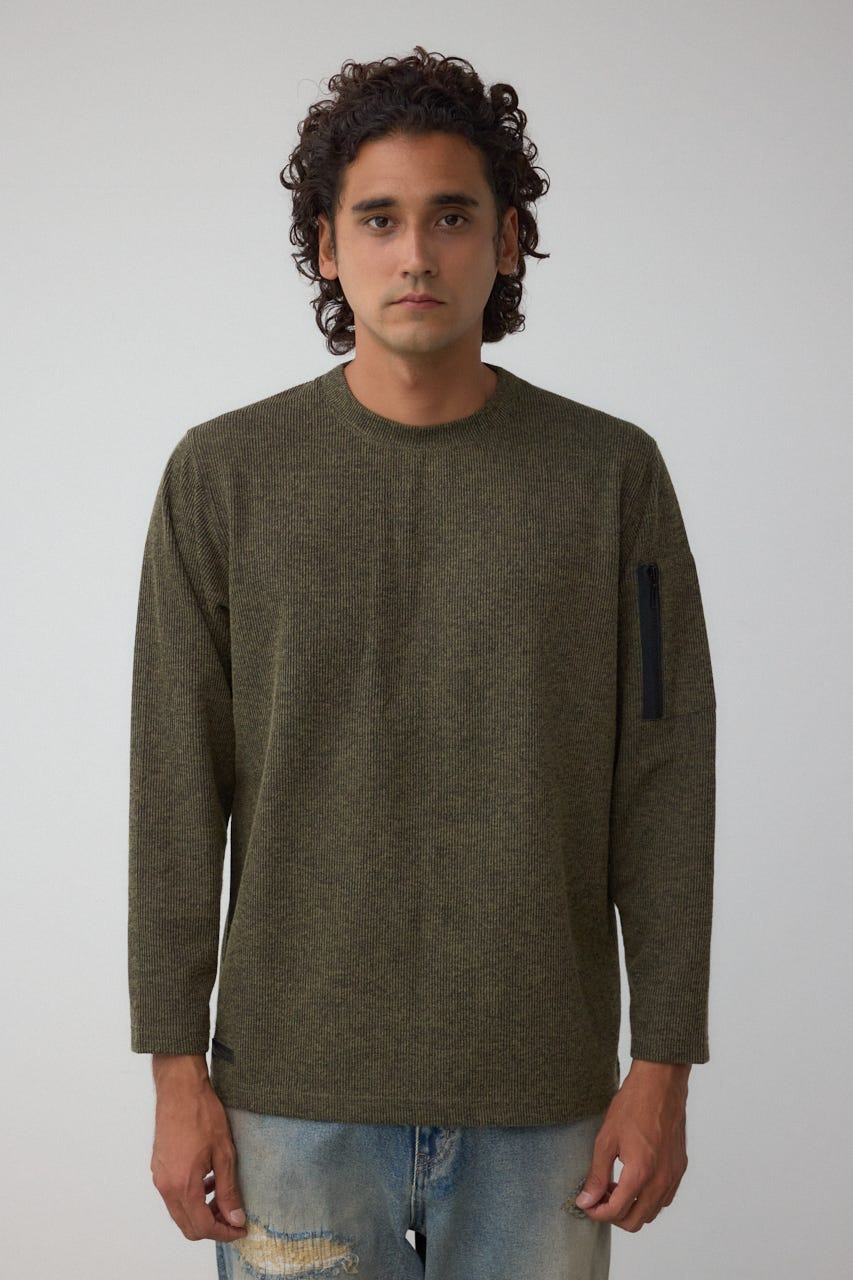 メランジ感のあるリブ見えジャガード編みで表情を出した長袖トップスになります。