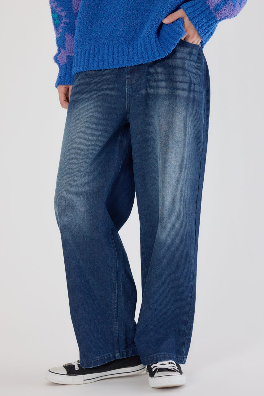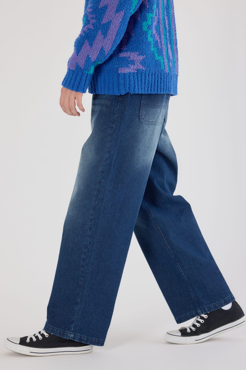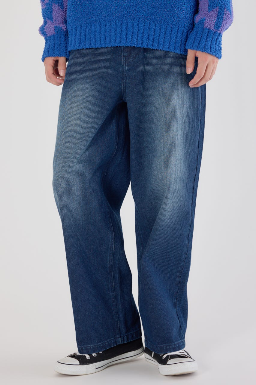 インディゴ染めによる独特の色合いと、ピケ素材の風合いが組み合わさることで、カジュアルながらも深みのある雰囲気を醸し出します。