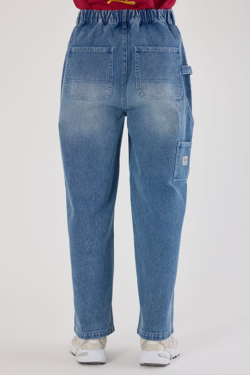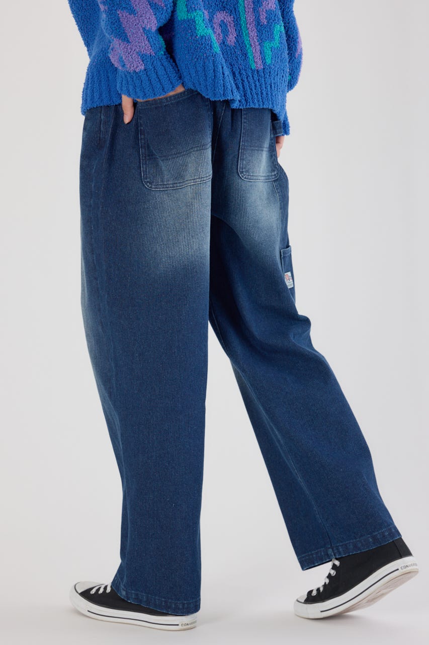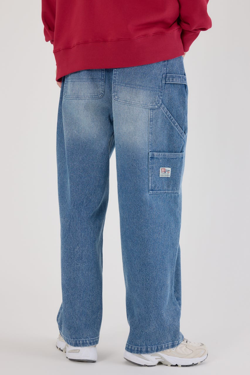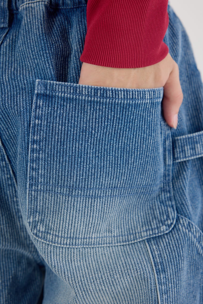 インディゴ染めの糸で織られたピケ素材のペインターパンツ。