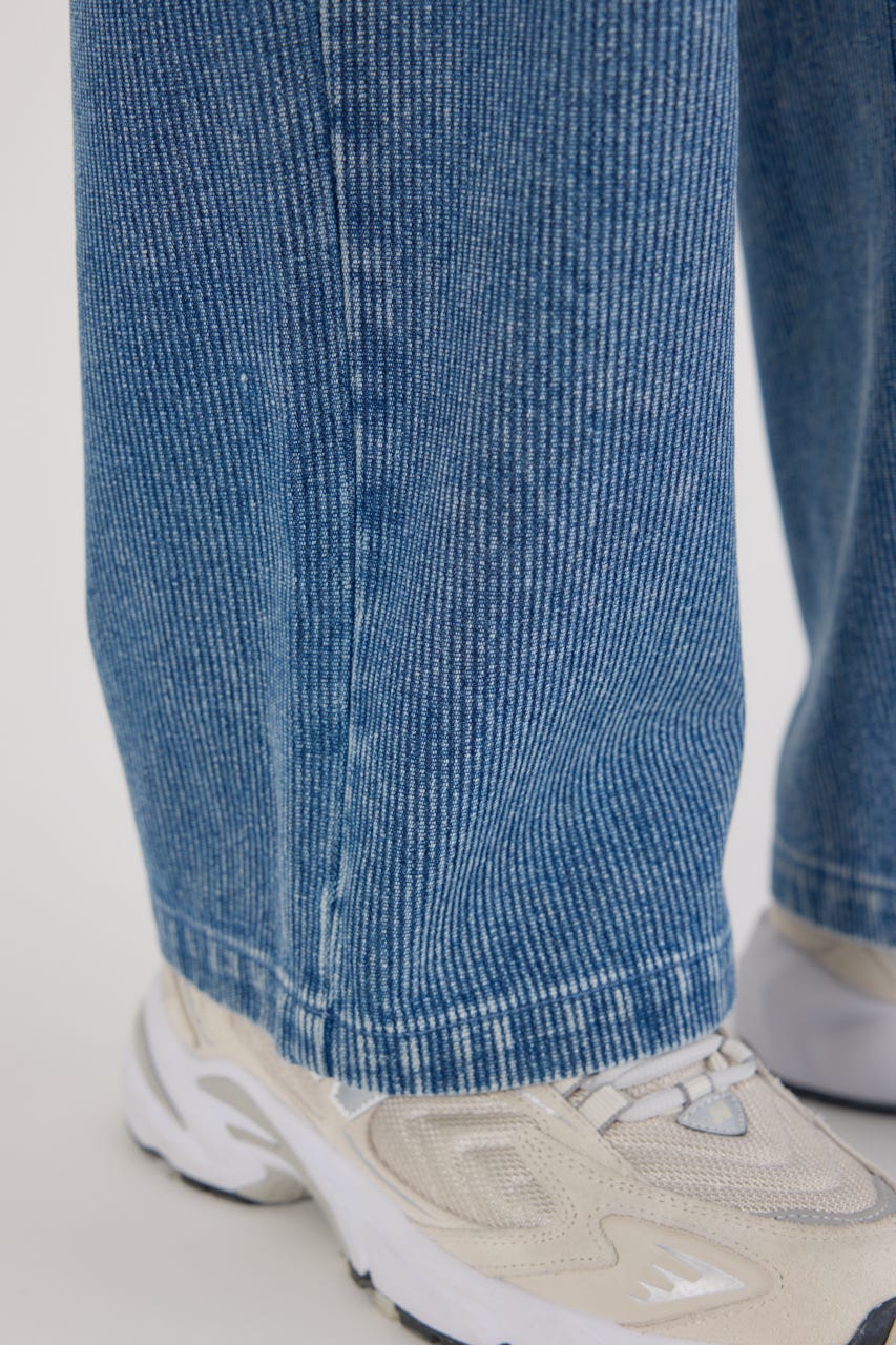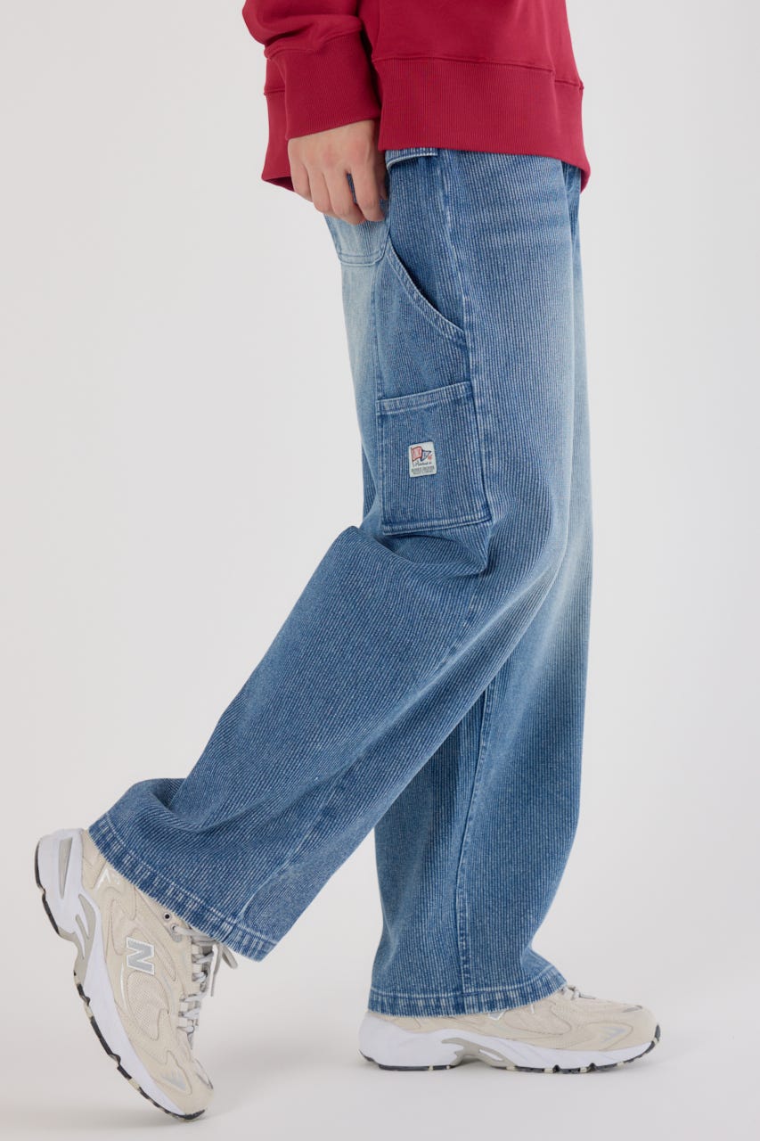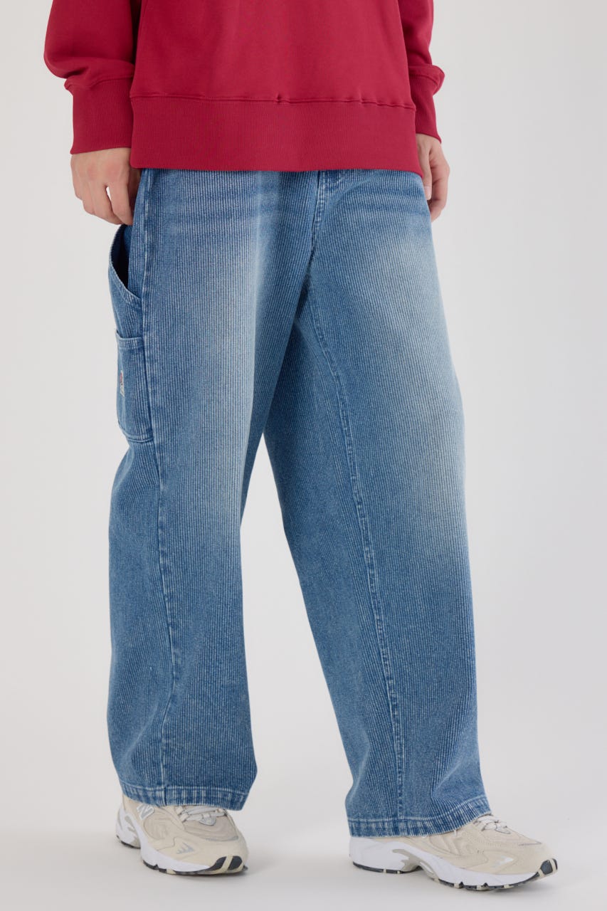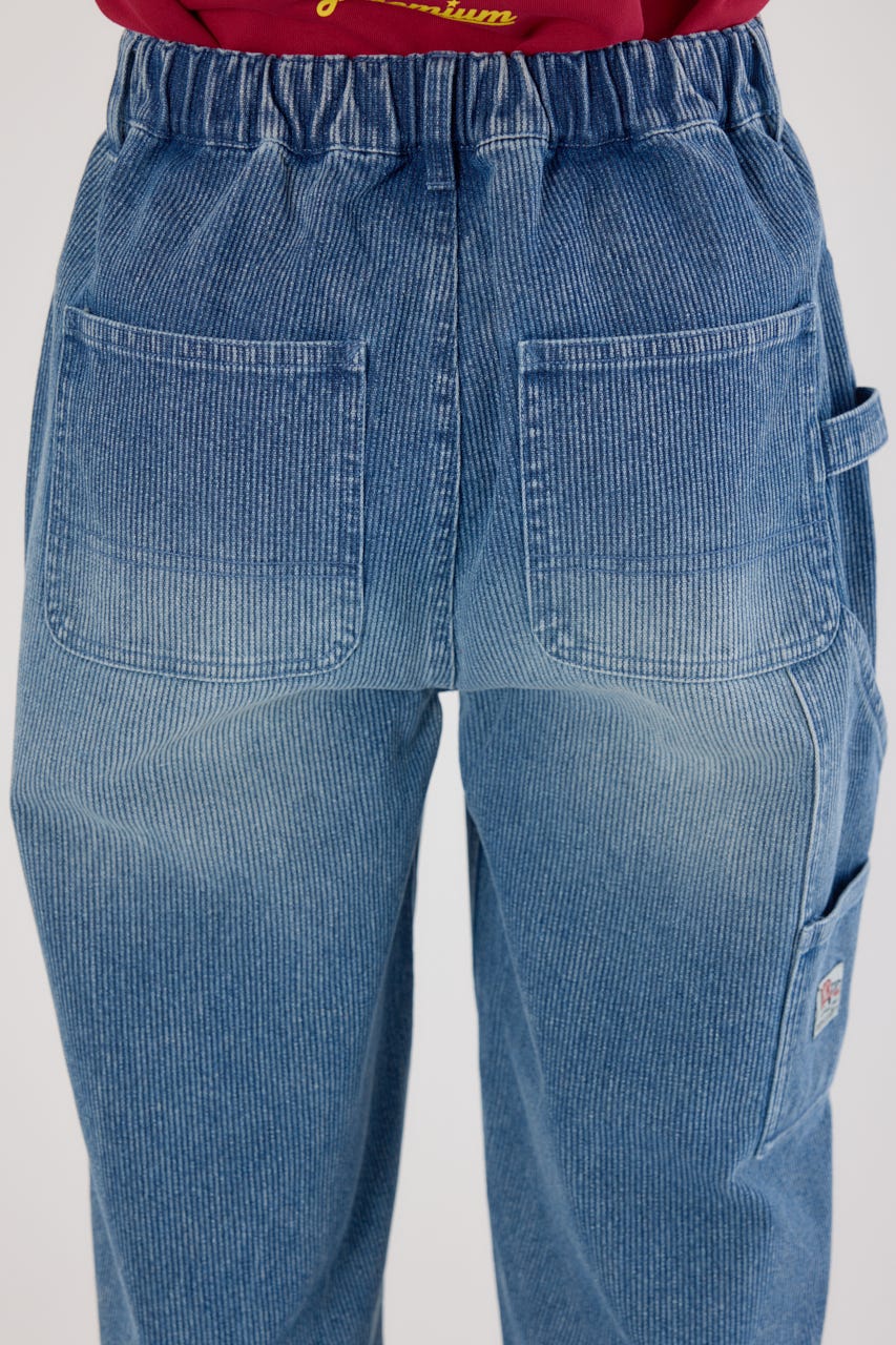 インディゴ染めの糸で織られたピケ素材のペインターパンツ。