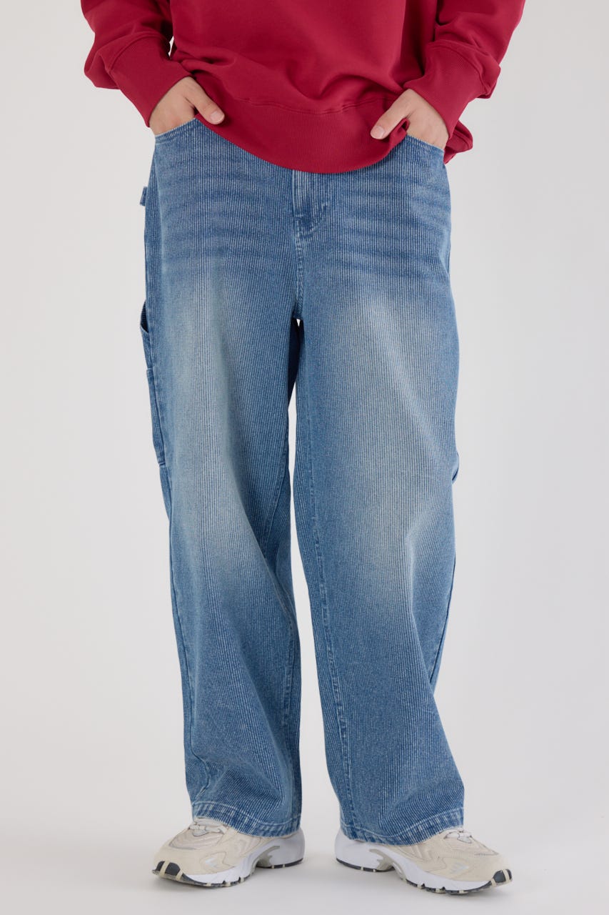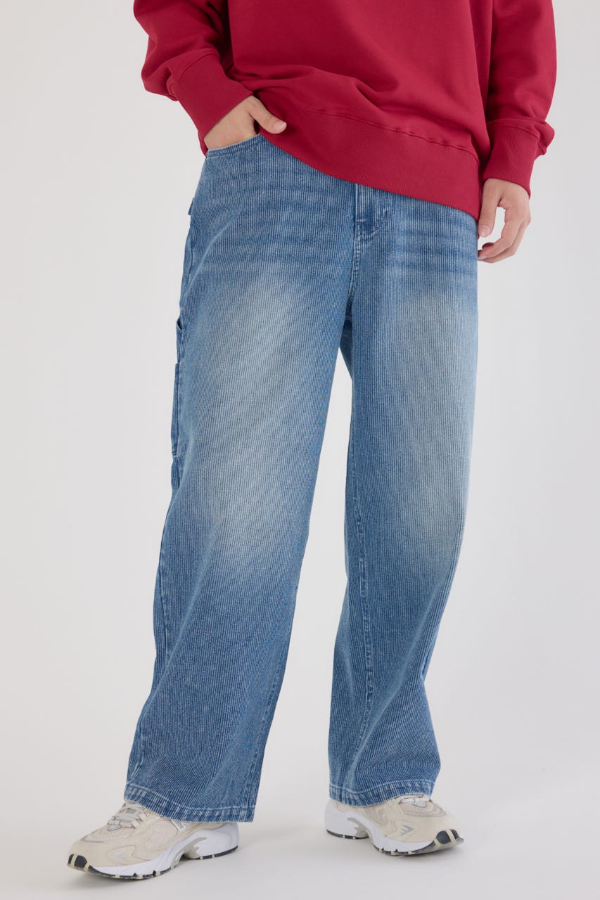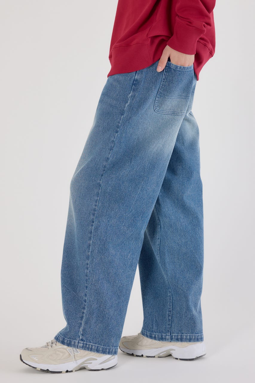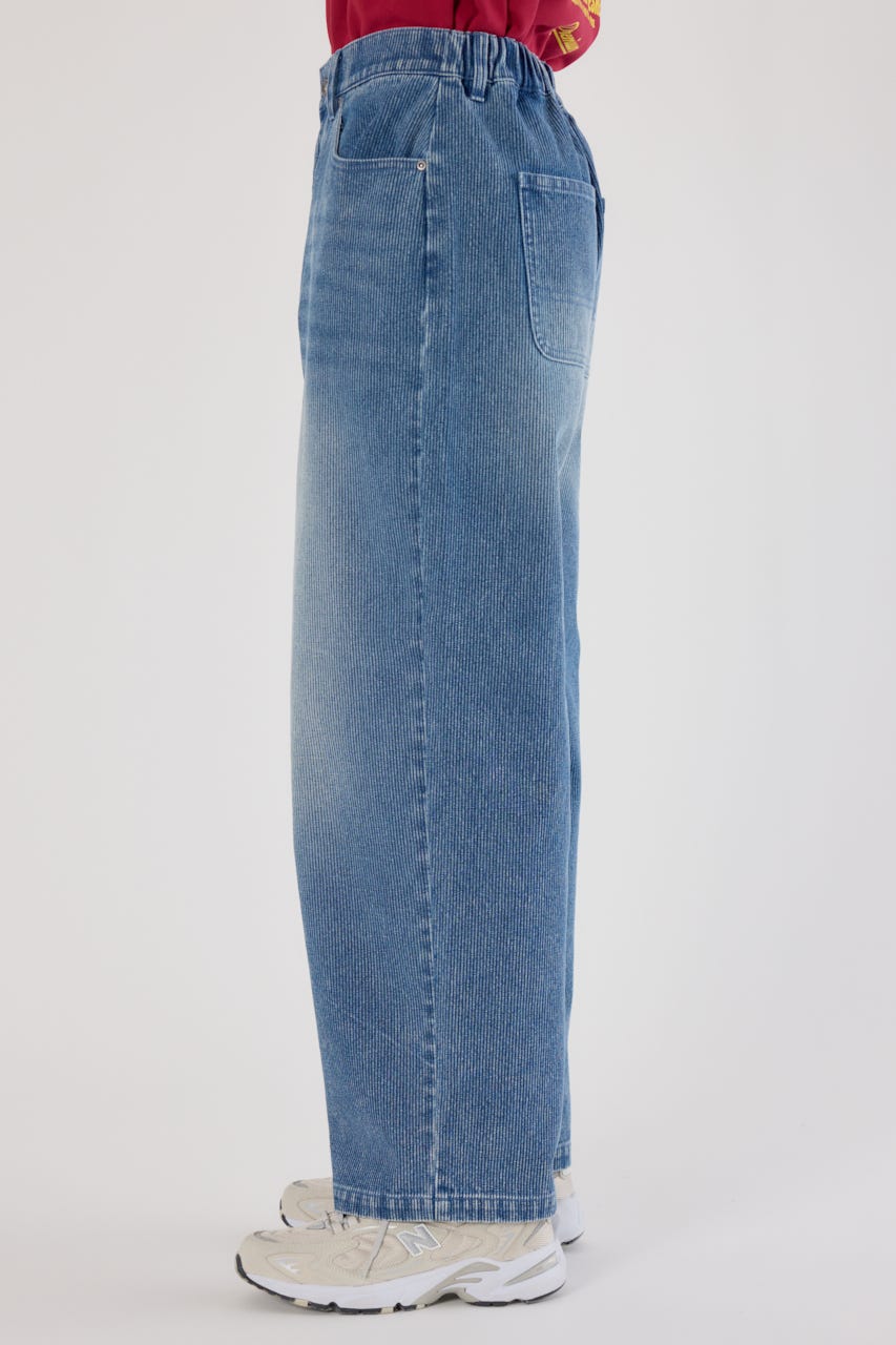 インディゴ染めの糸で織られたピケ素材のペインターパンツ。