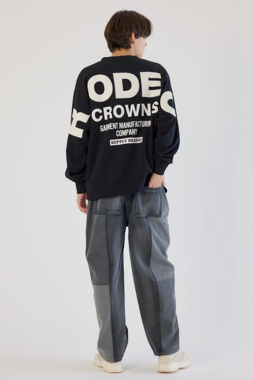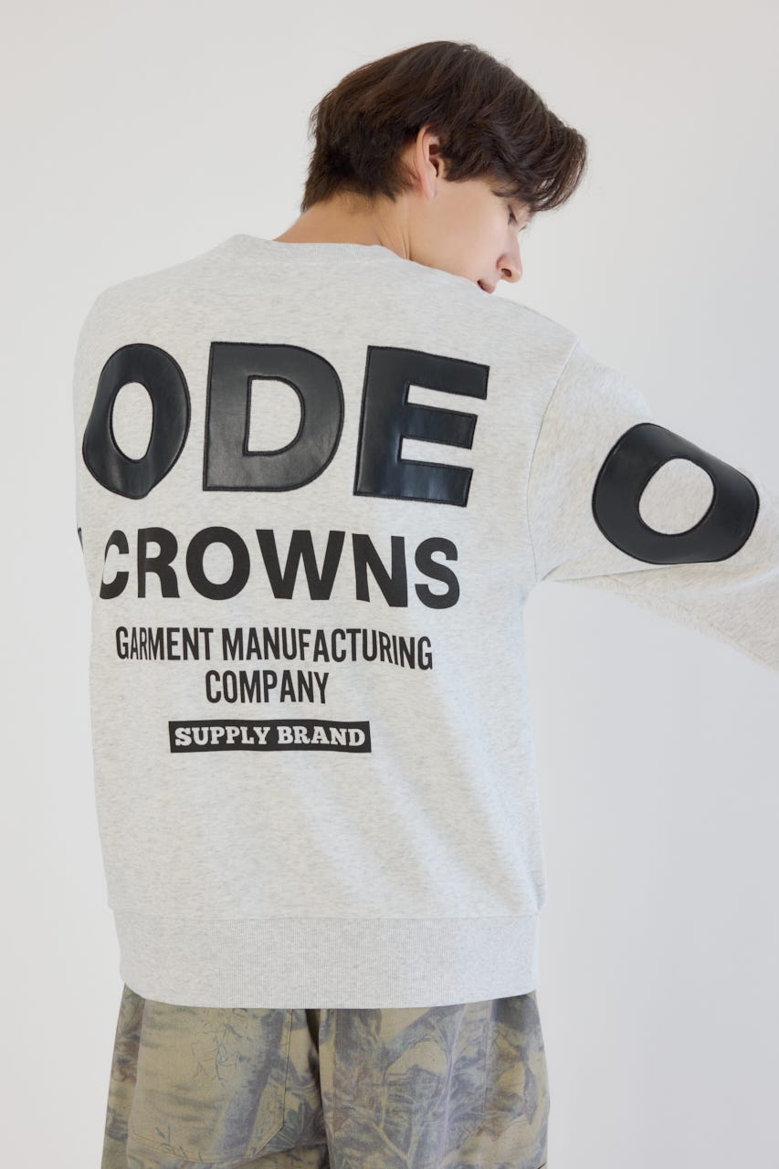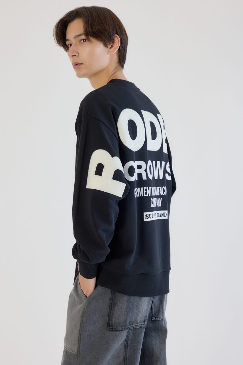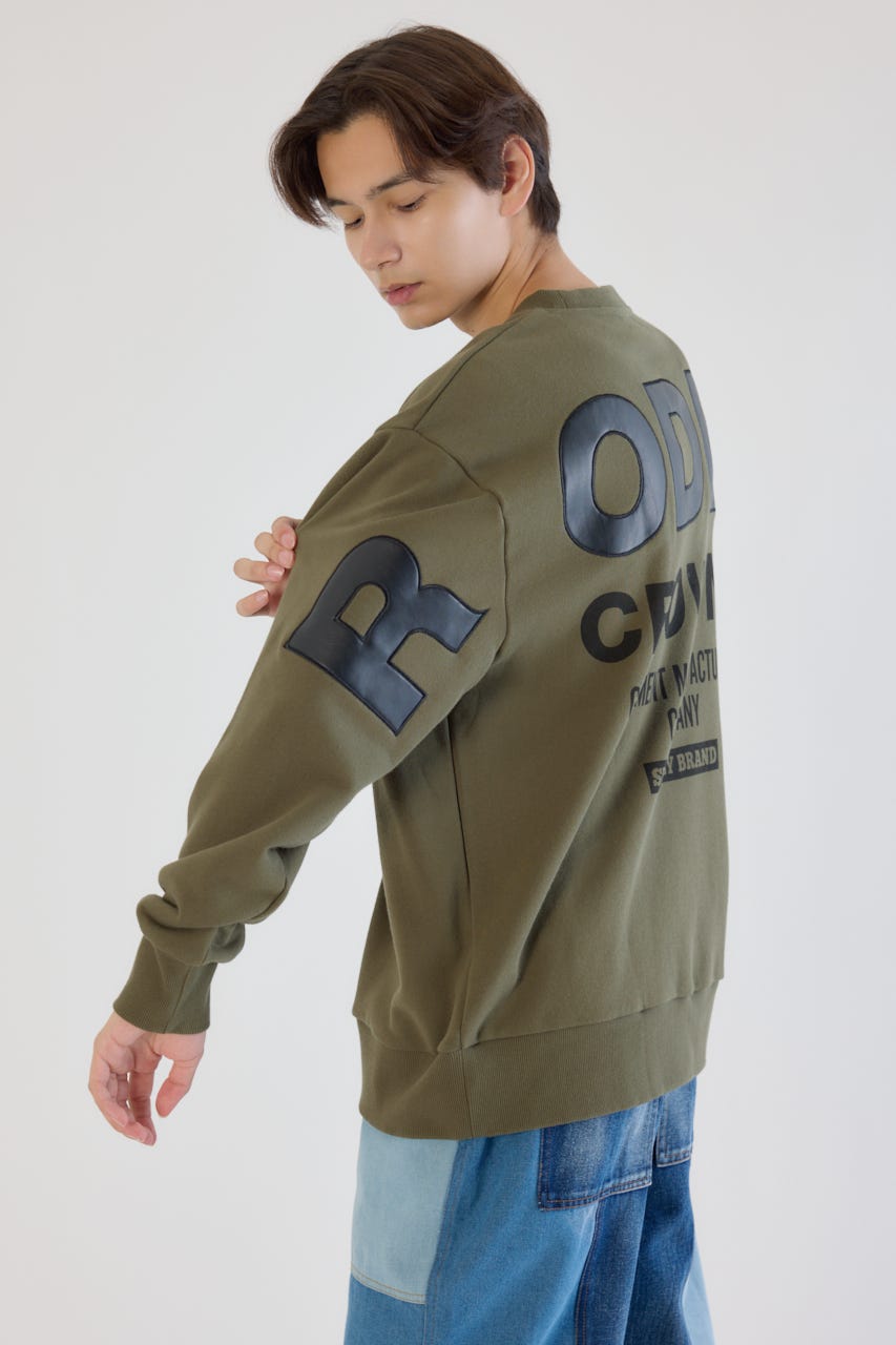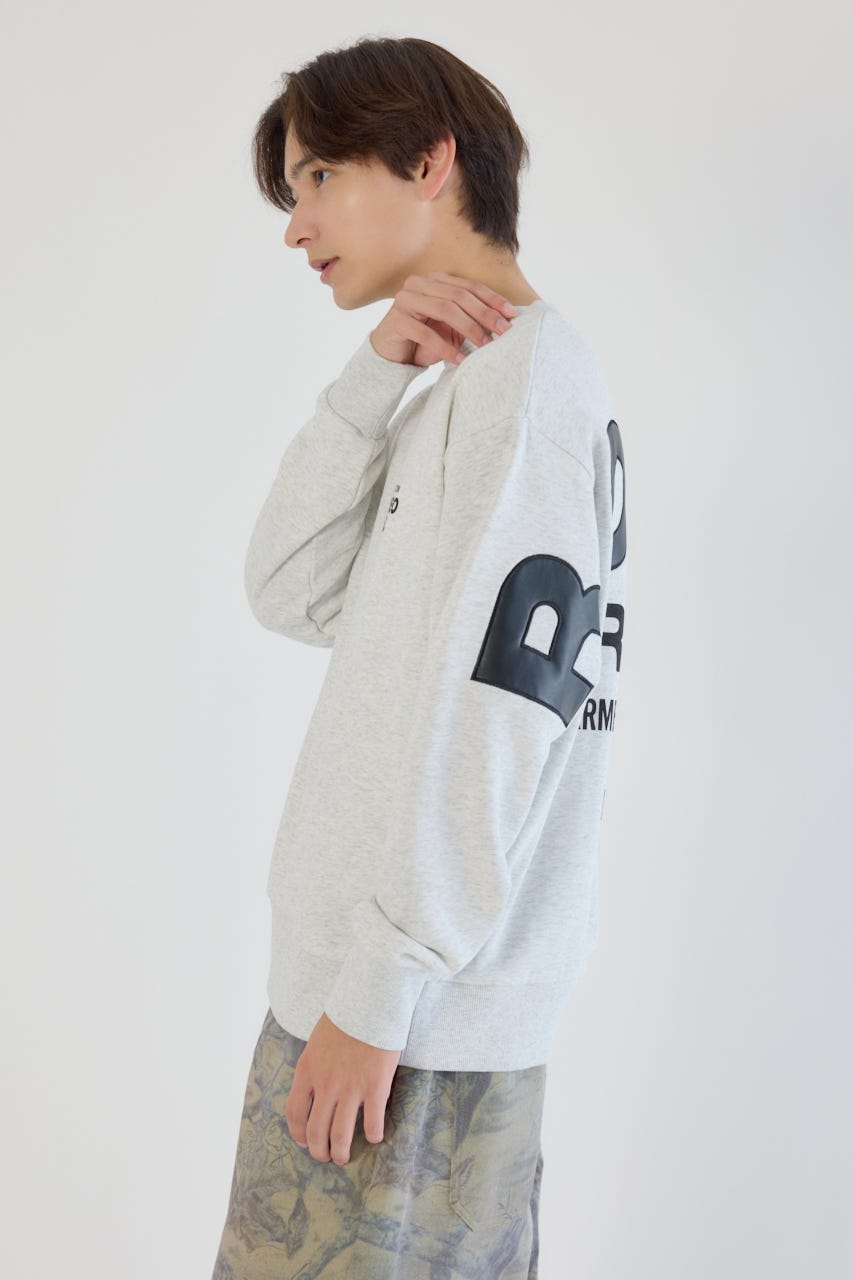 バックのロゴレザーアップリケがインパクト大のプルオーバースウェット。