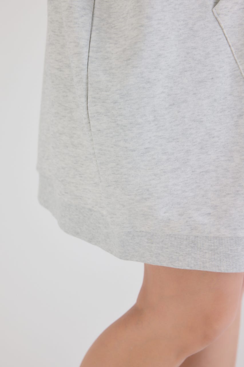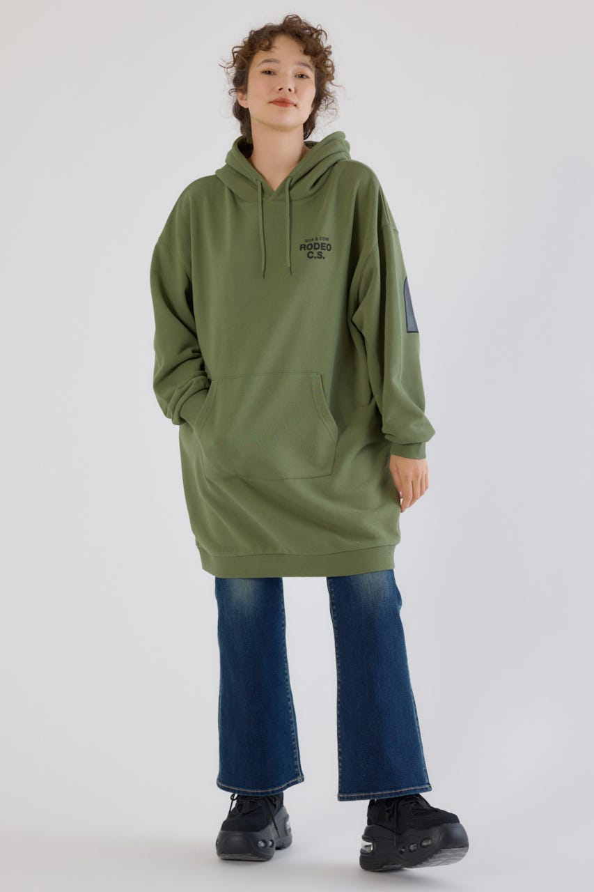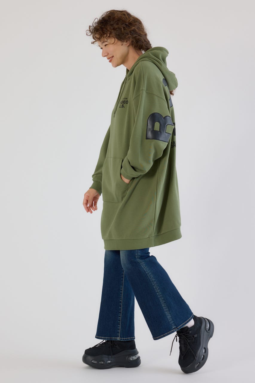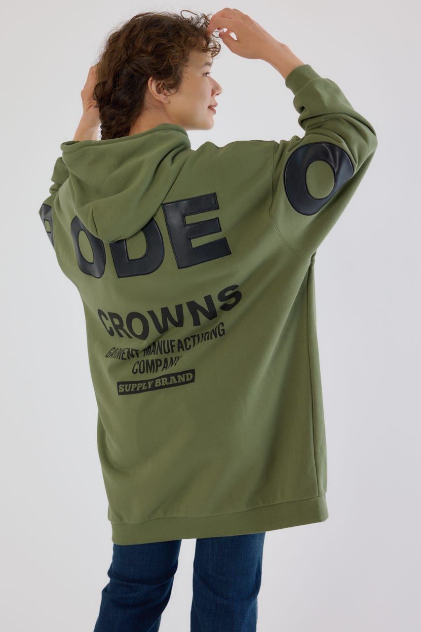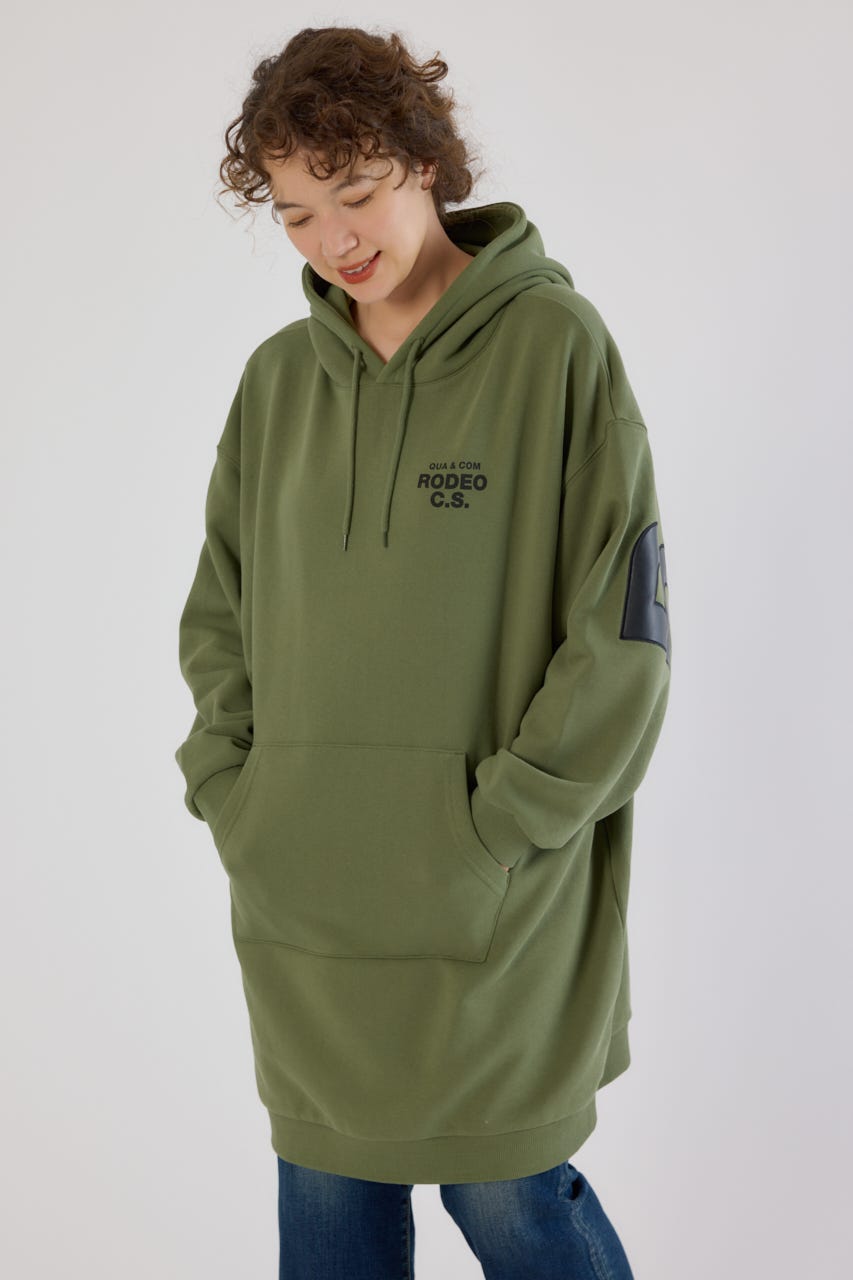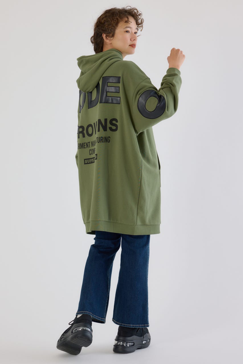秋冬にぴったりなレザーアップリケがトレンド感があり、かっこいいパーカーワンピースです。