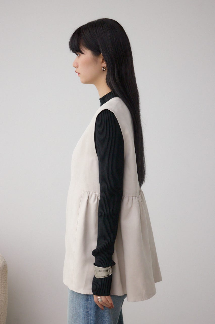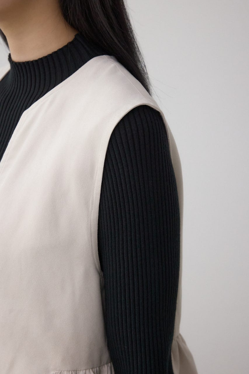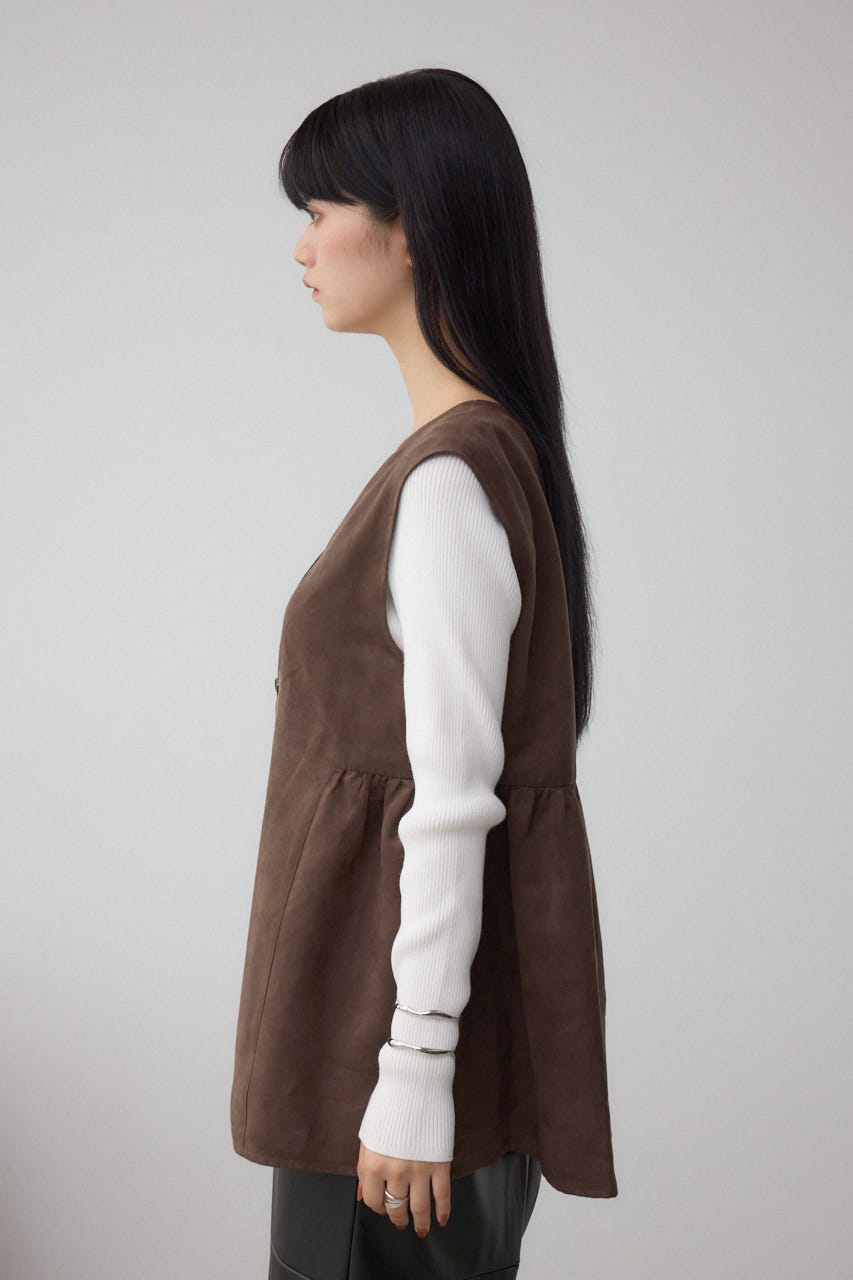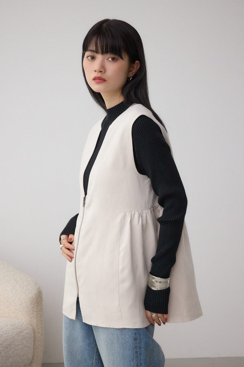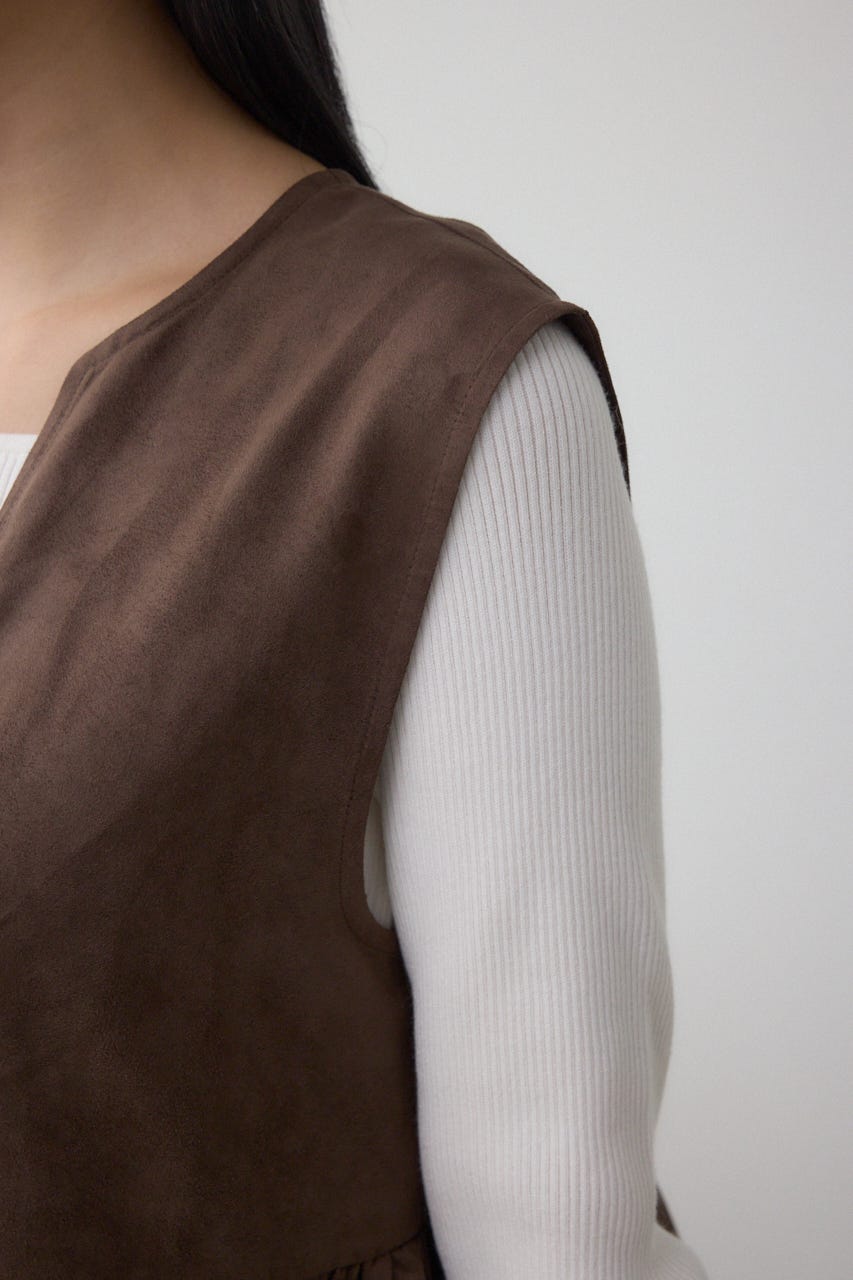 上品なスエード調素材を使用した、シンプルでありながら存在感のあるジップベスト。