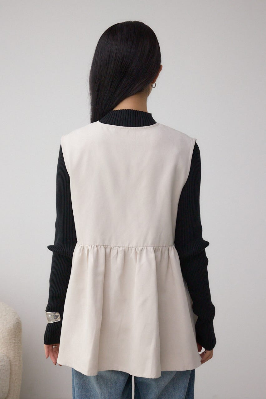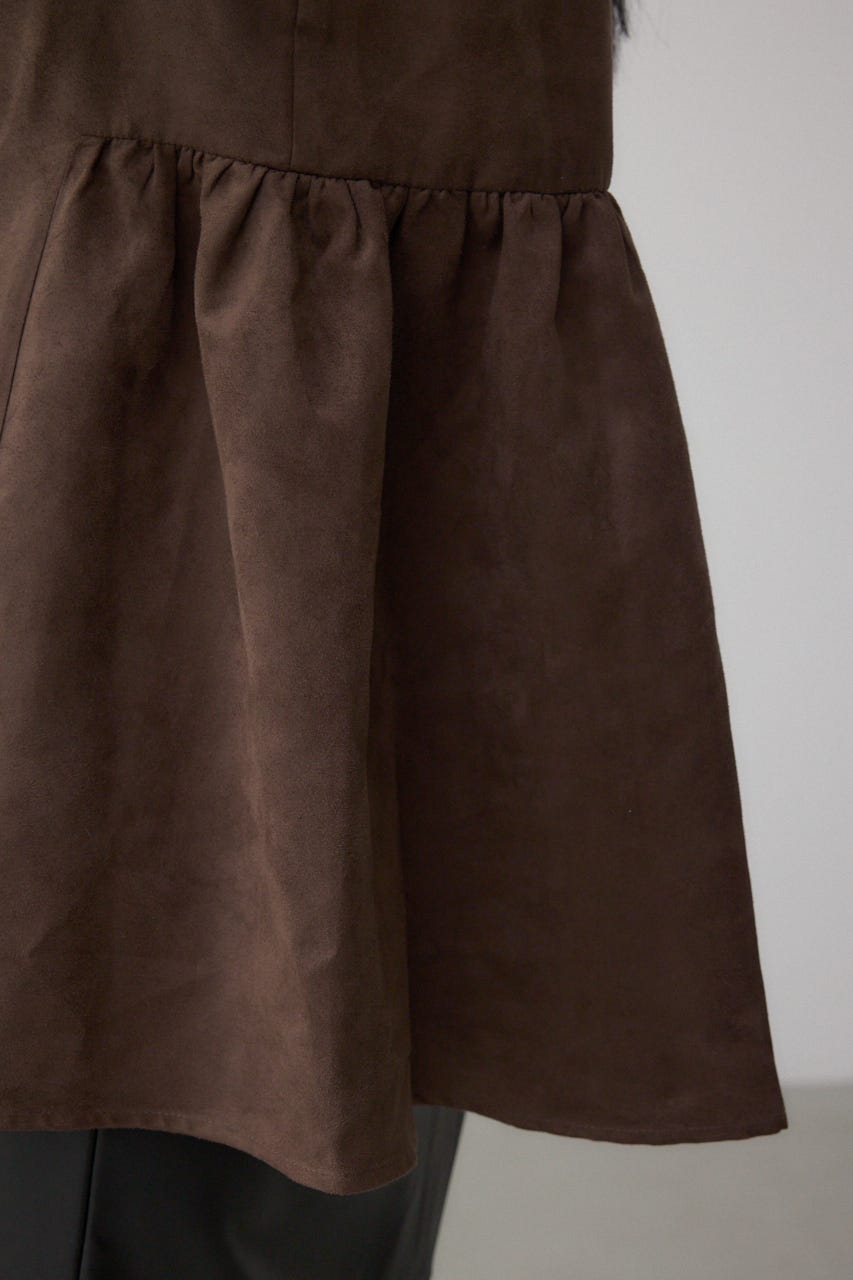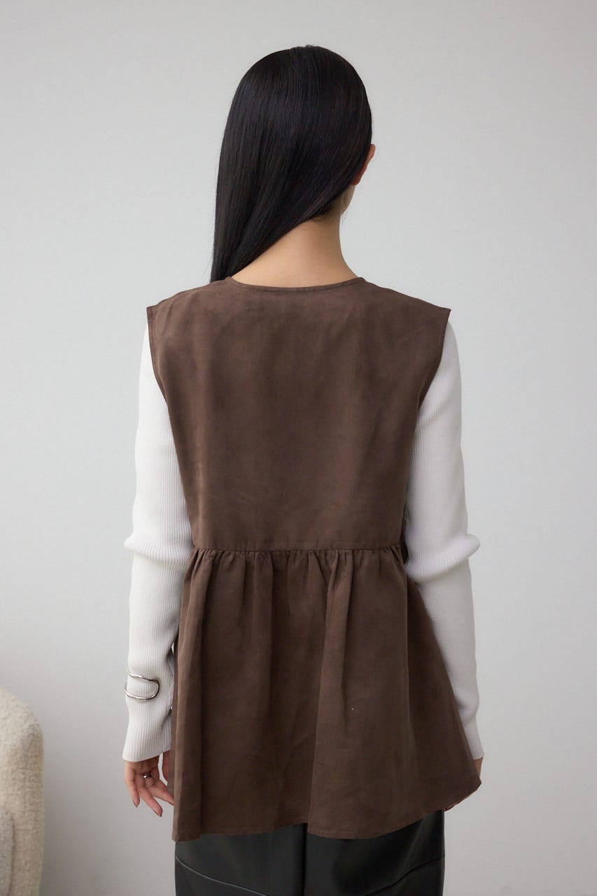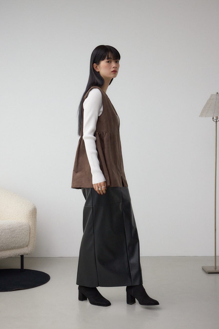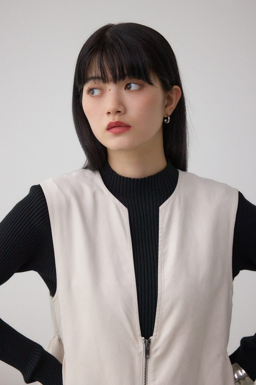 上品なスエード調素材を使用した、シンプルでありながら存在感のあるジップベスト。