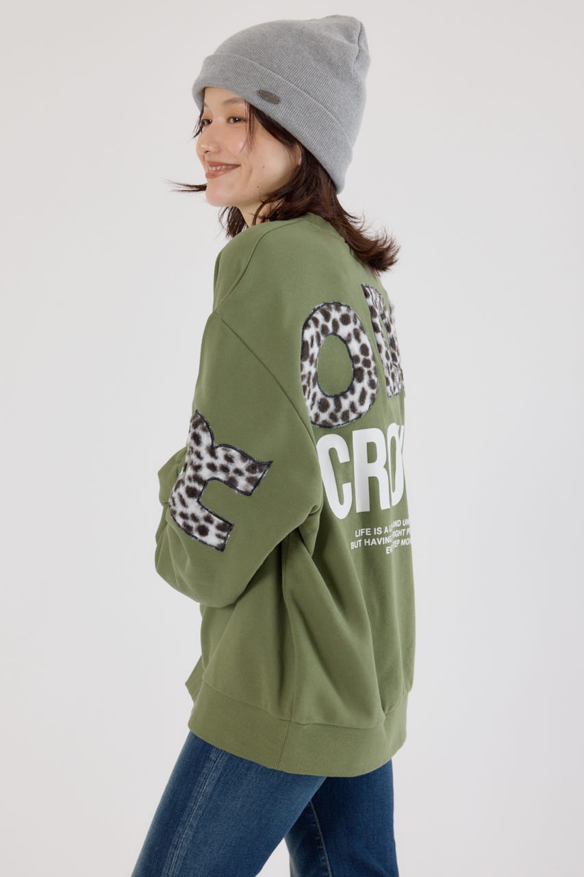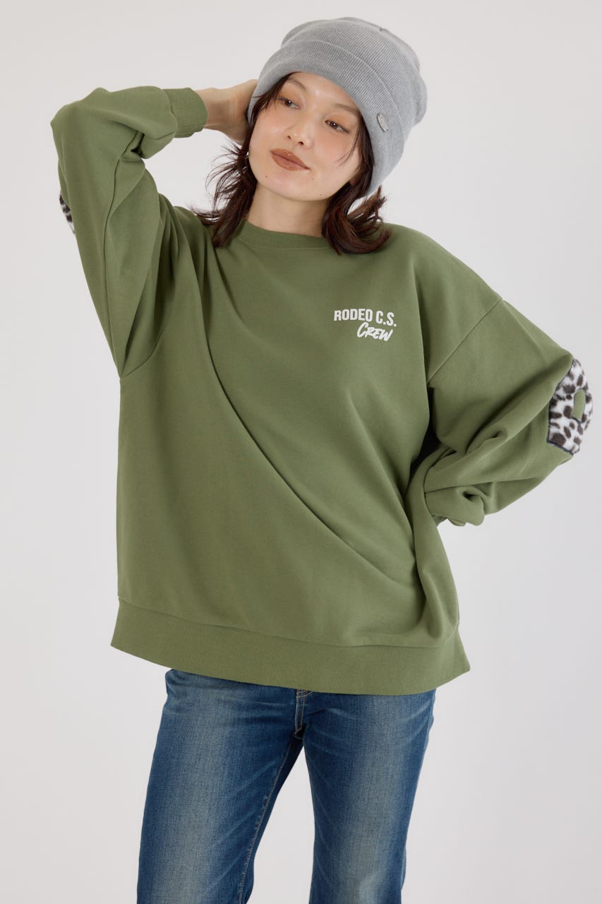 体型を拾わないゆるっとしたサイズ感で着用しやすく、リラックスできるスウェットトップスです。