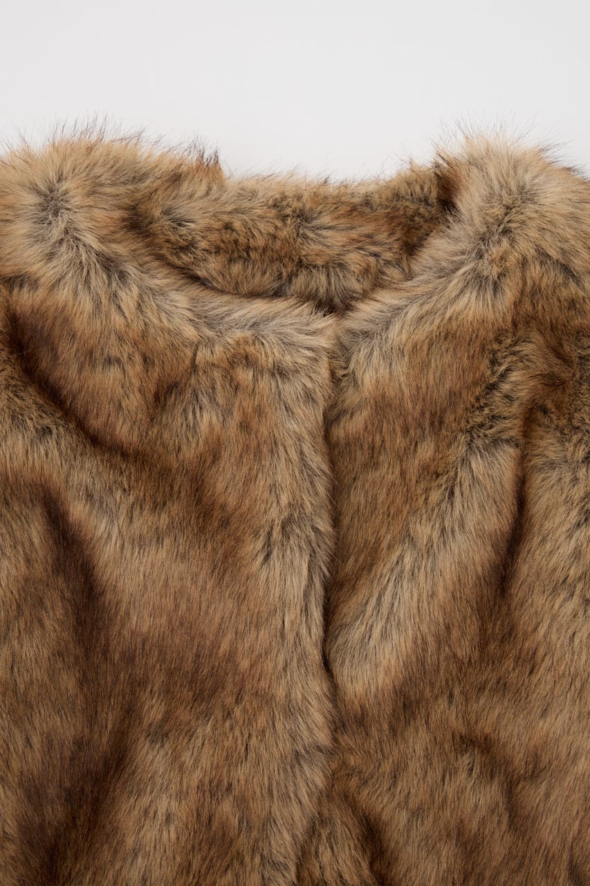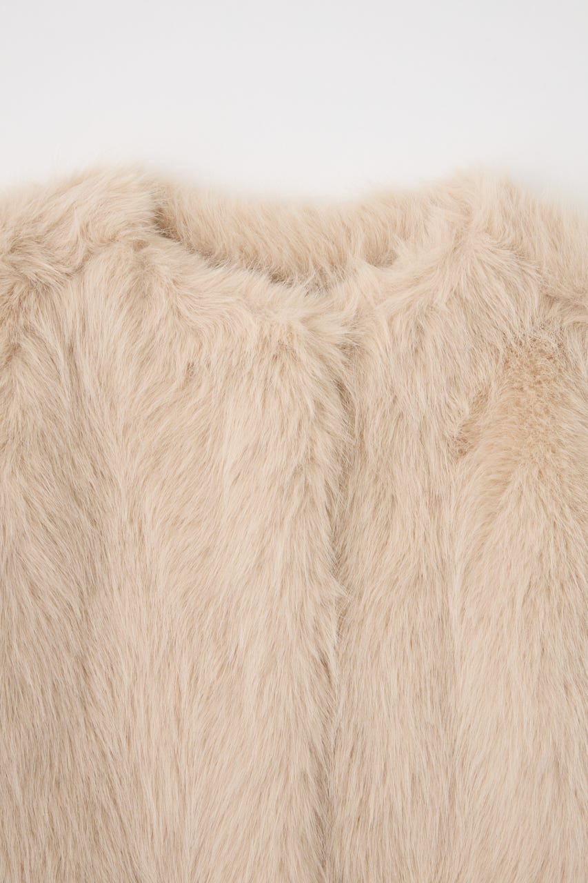 柔らかな毛並みが高級感あるフェイクファージャケット。
