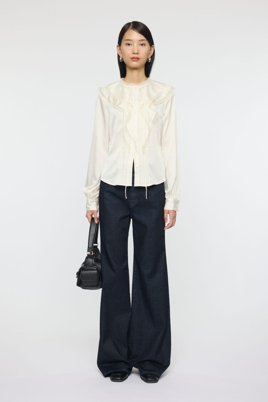 甘すぎないカラーと立体的なフリルが印象的なブラウスです。