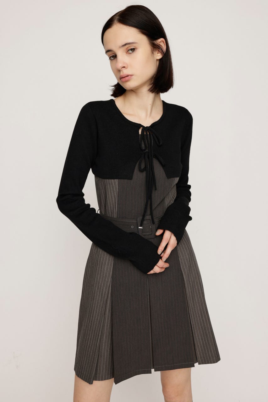 ■POINT:コンパクトなニットボレロトップスとキャミソールプリーツミニワンピースのセットアイテム。