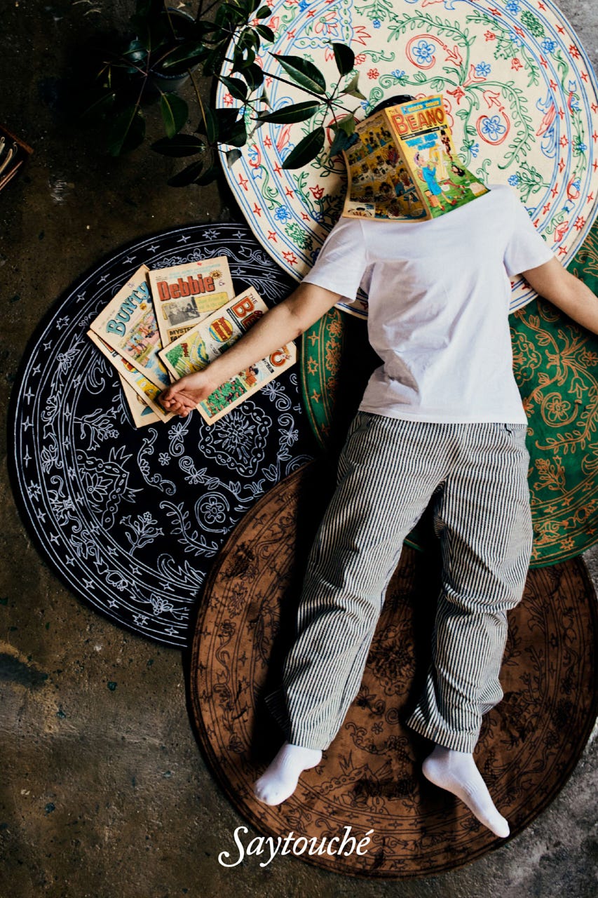 アイコニックなペルシャラグを自由かつユーモラスなドゥードゥルスタイルで再解釈。