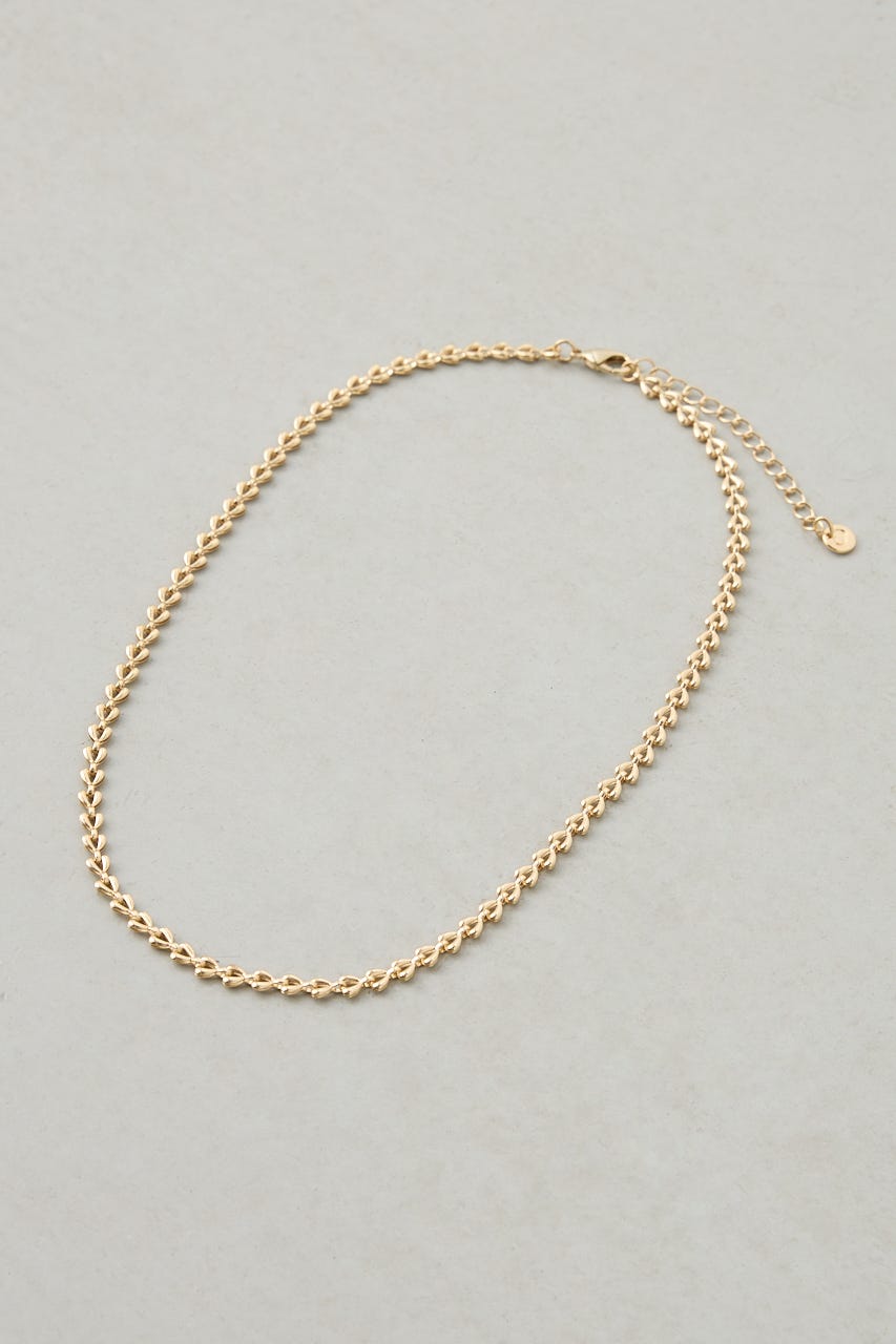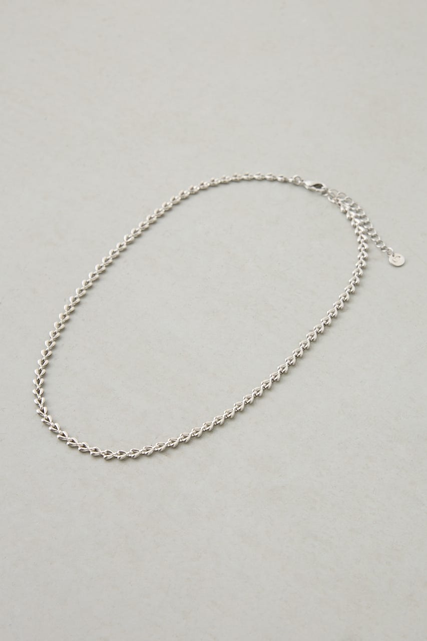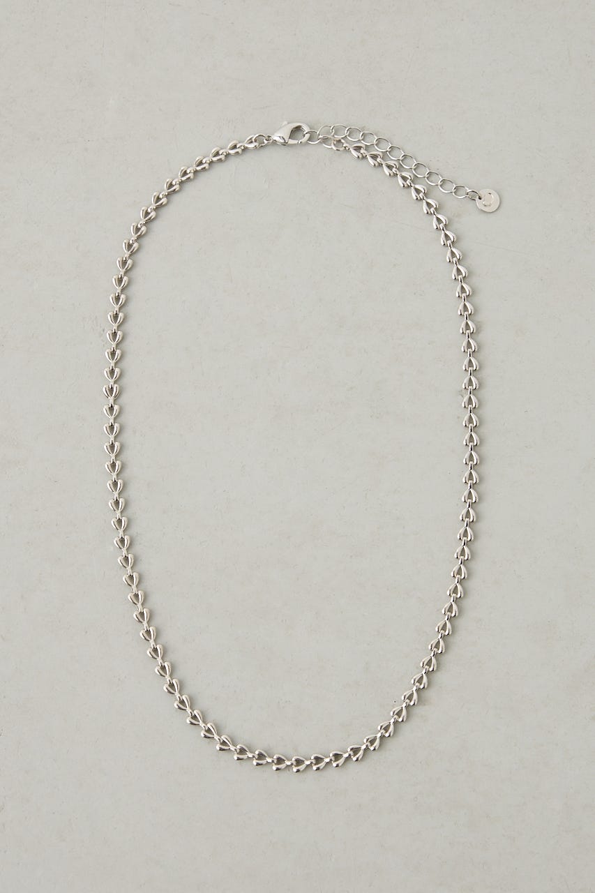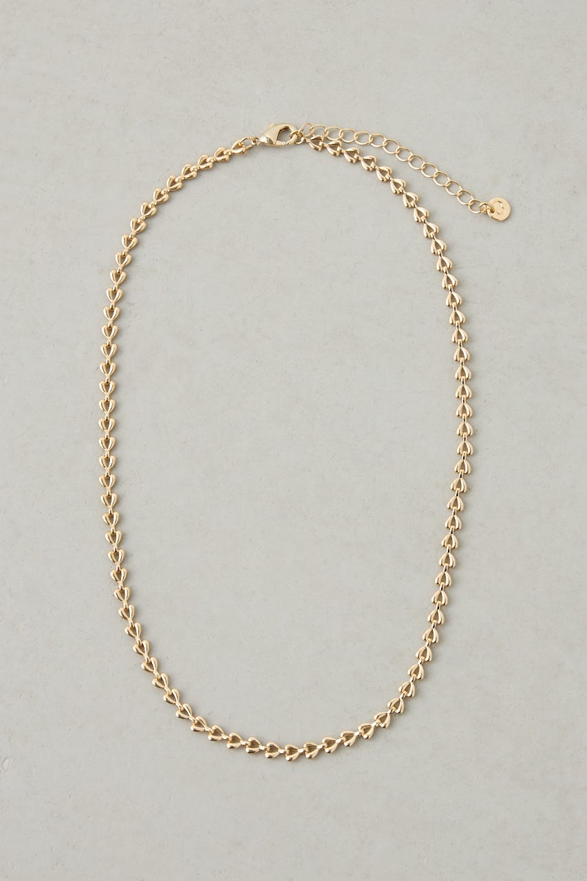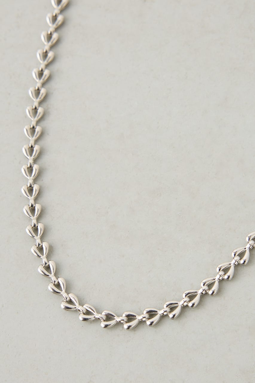 一見シンプルなネックレスは、よく見るとチェーンの一つ一つがハート型になっているのがポイントです。