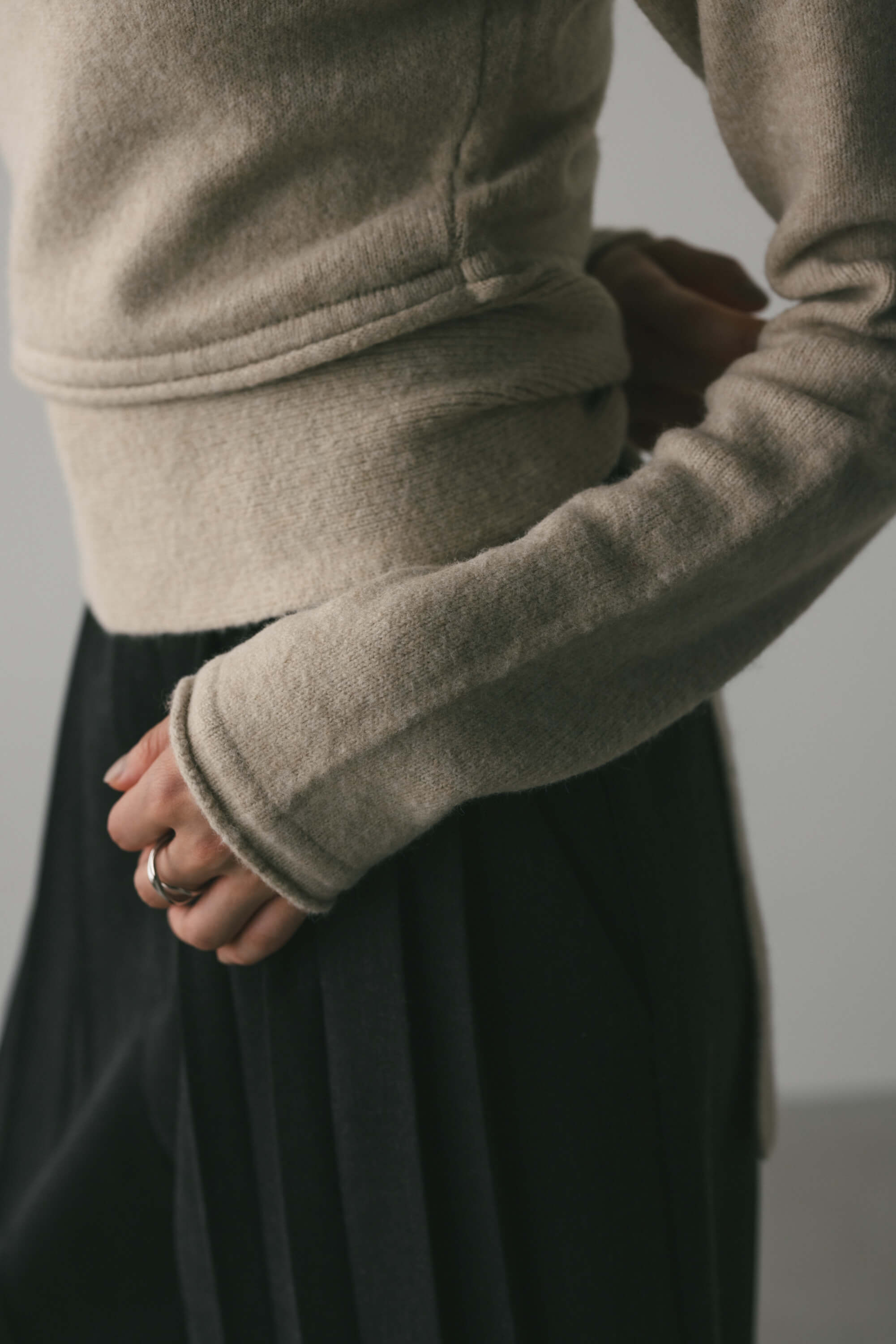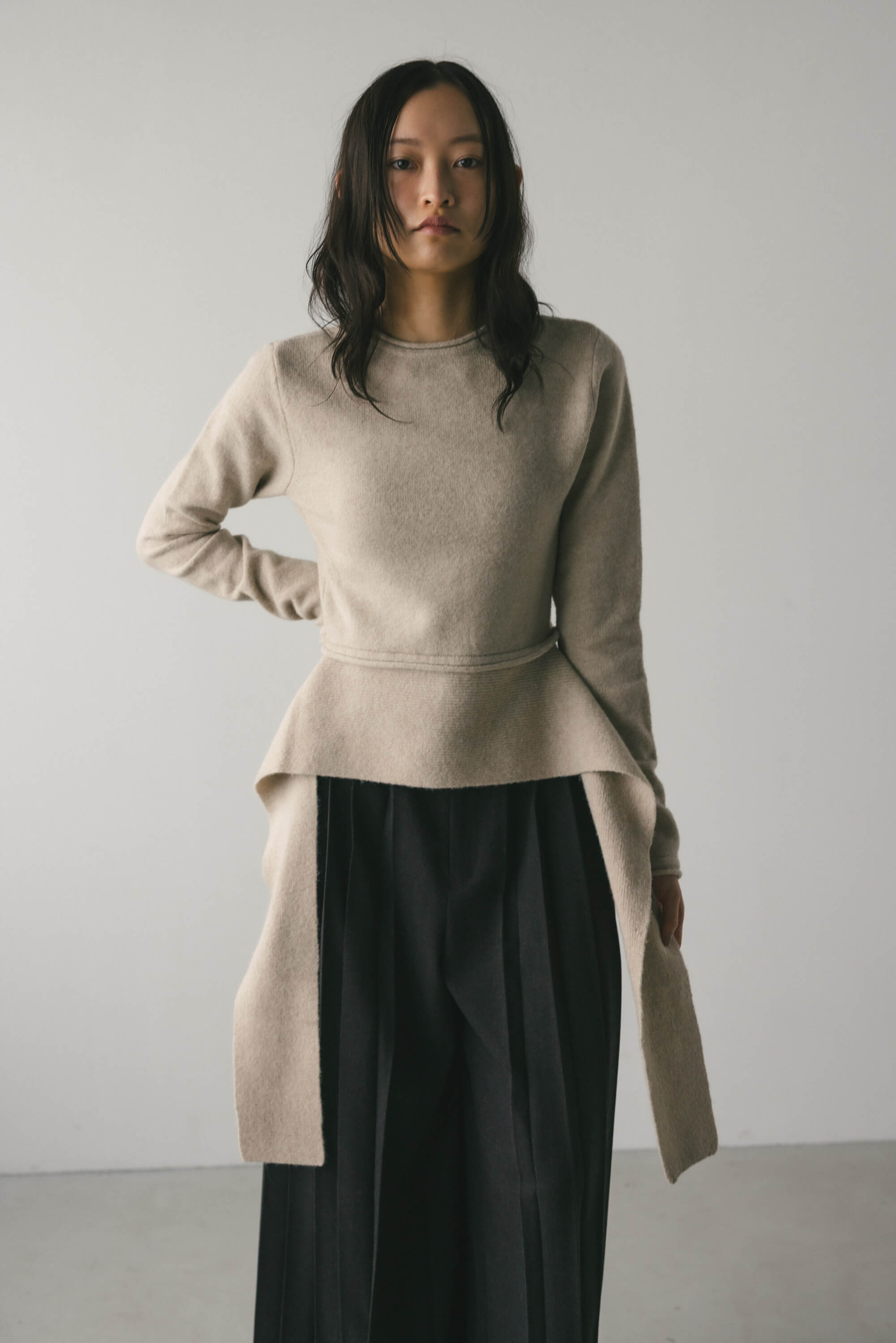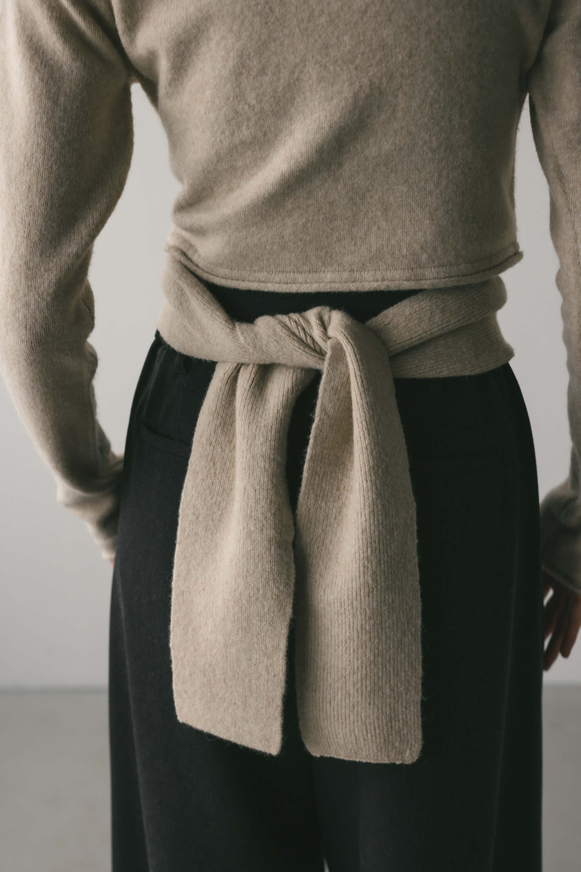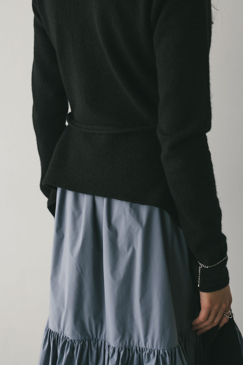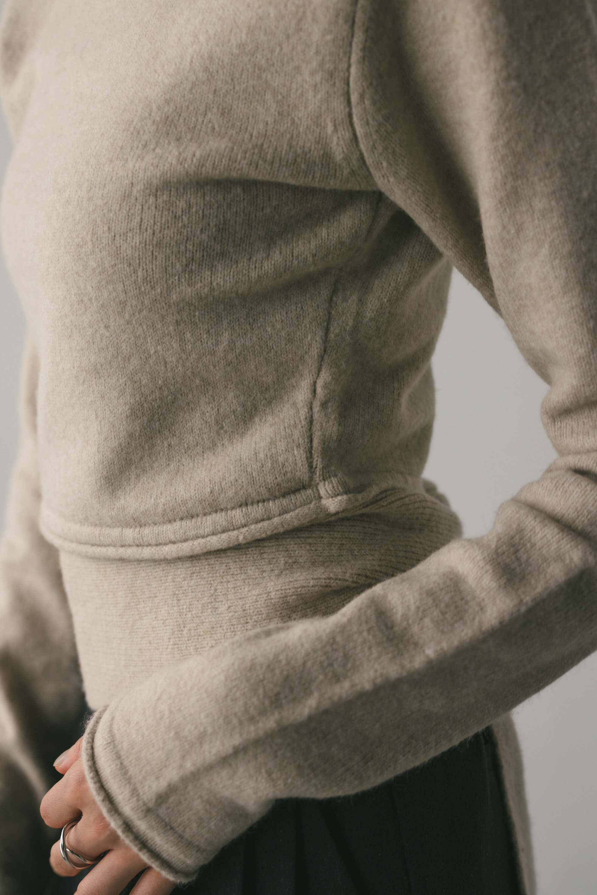 ウエストマークできるデザインがポイントのショート丈のコンパクトニット。