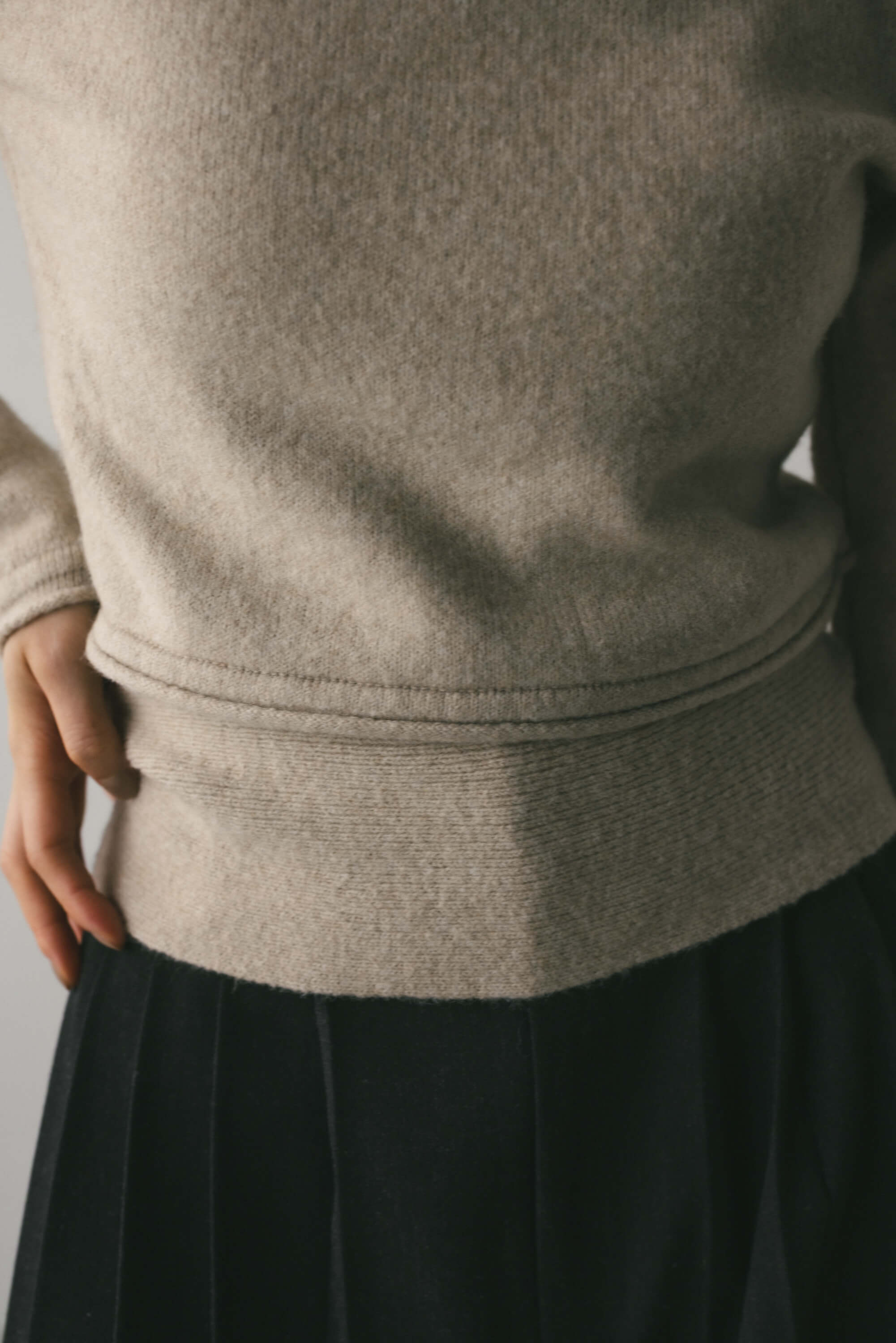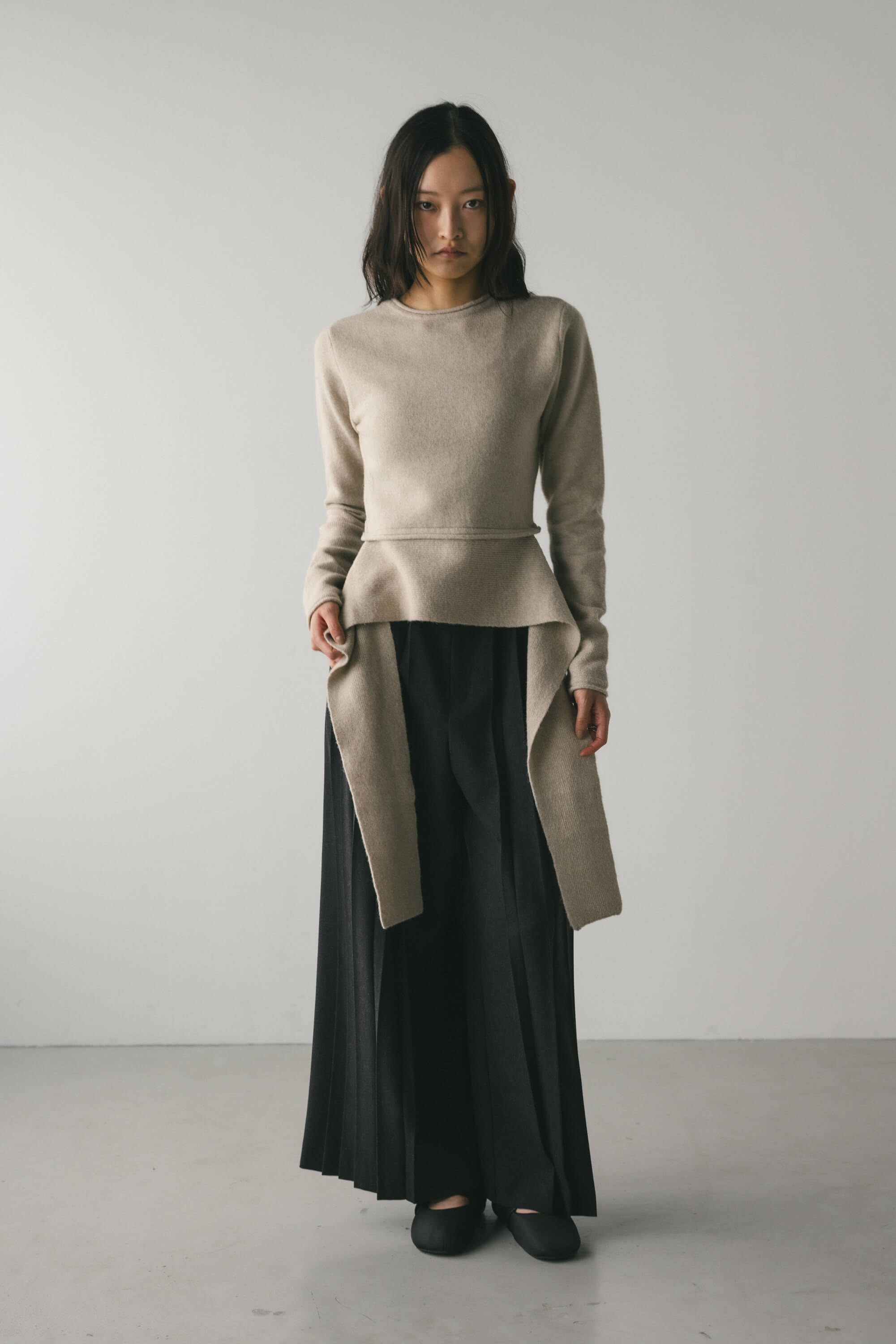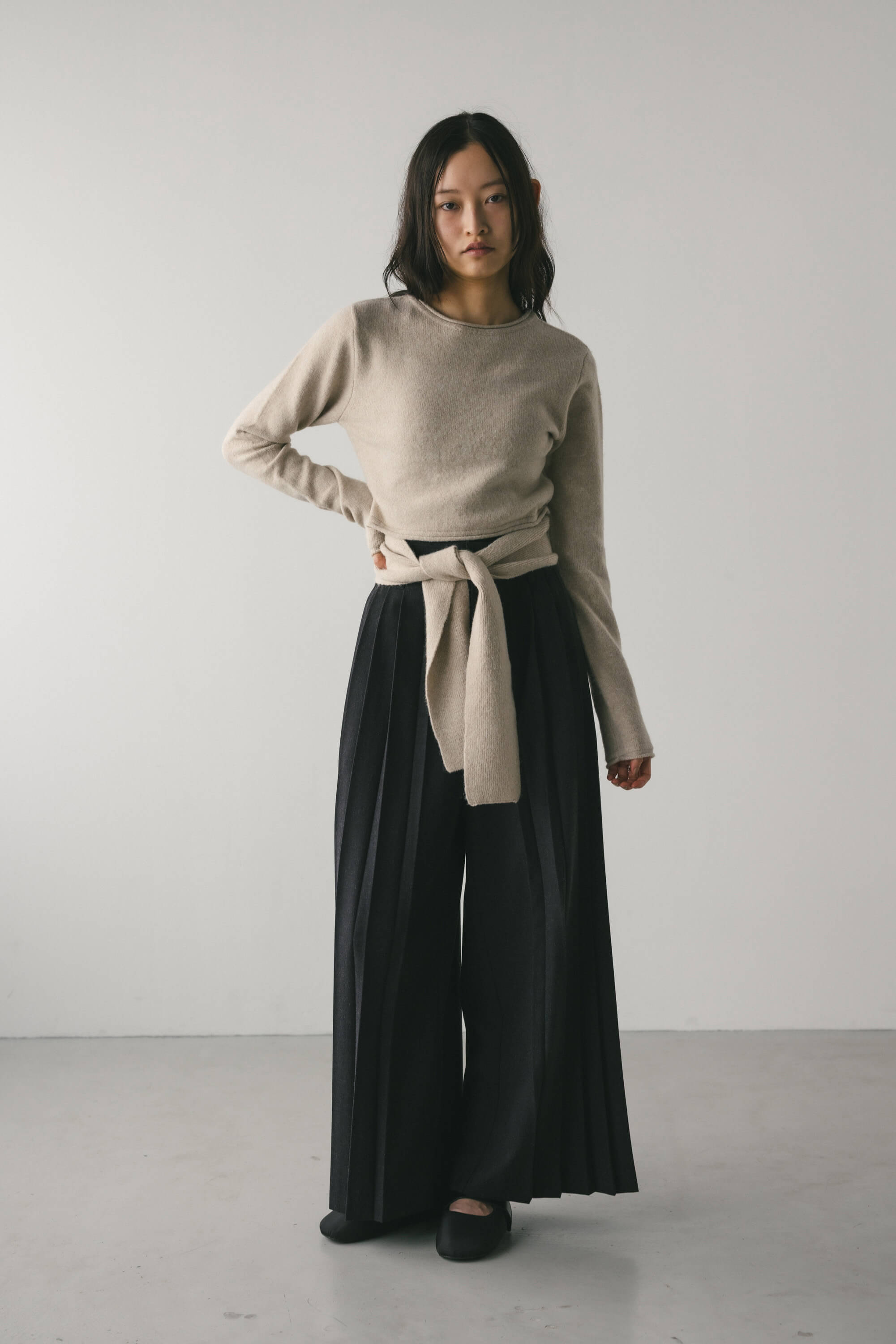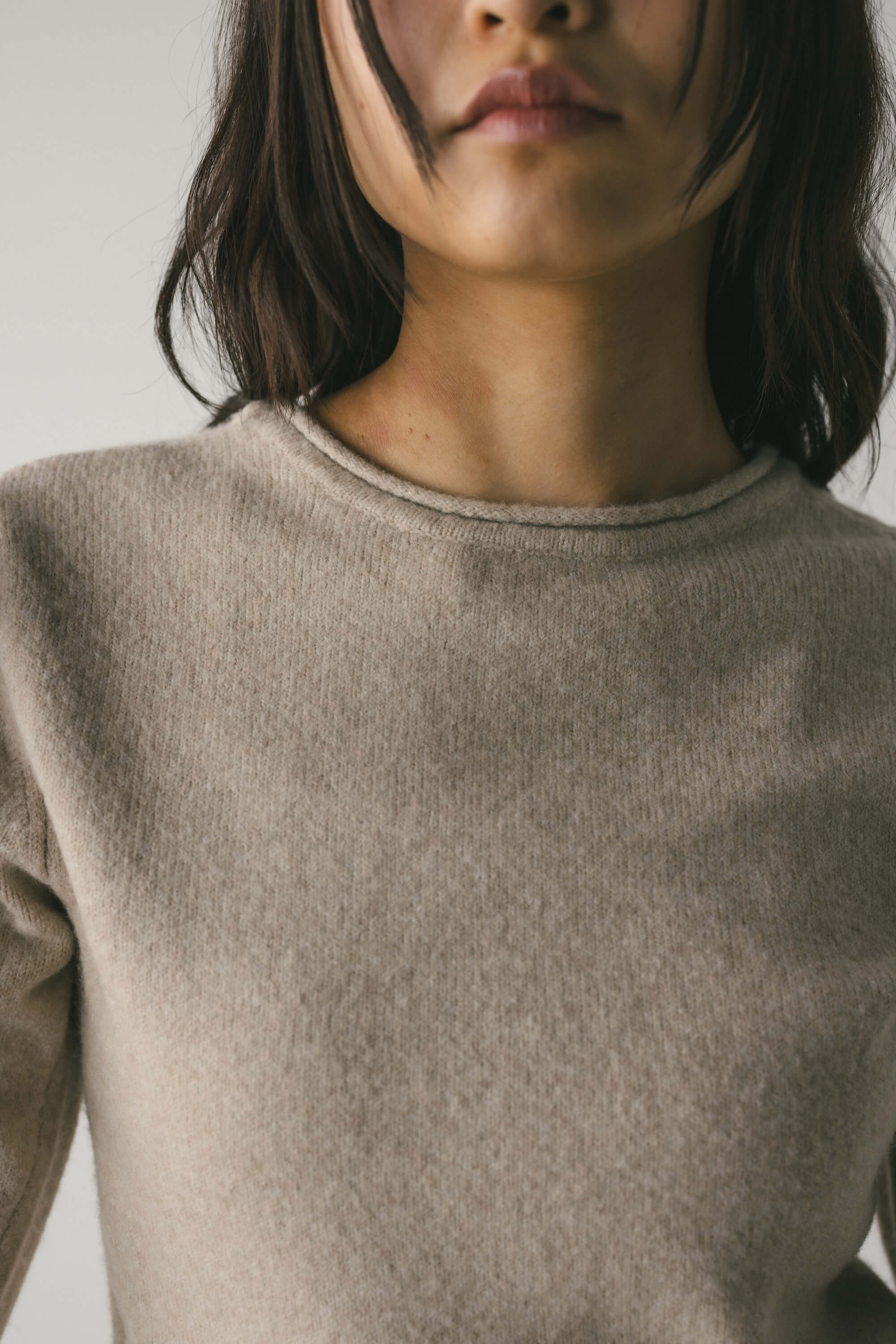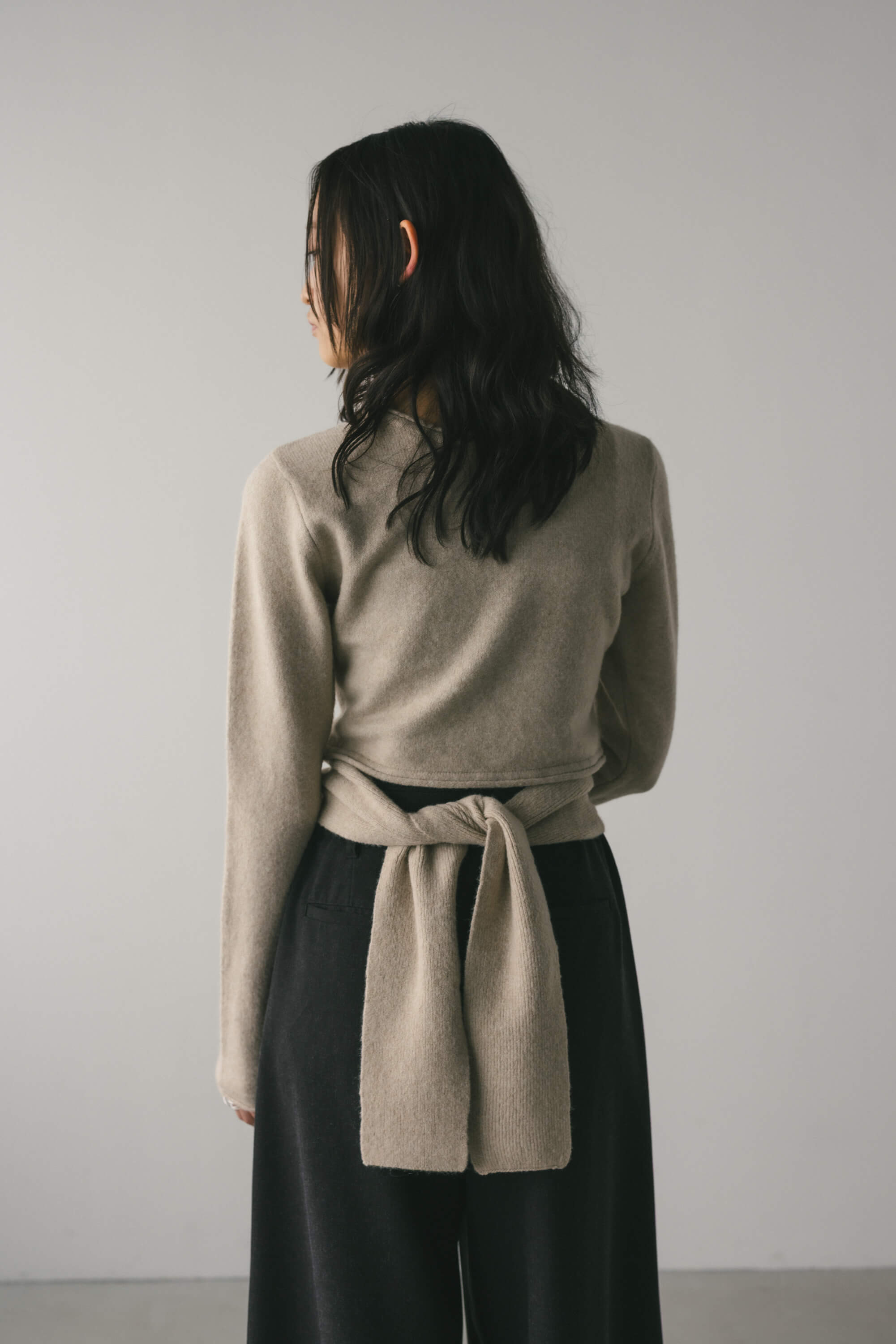 ウエストマークできるデザインがポイントのショート丈のコンパクトニット。