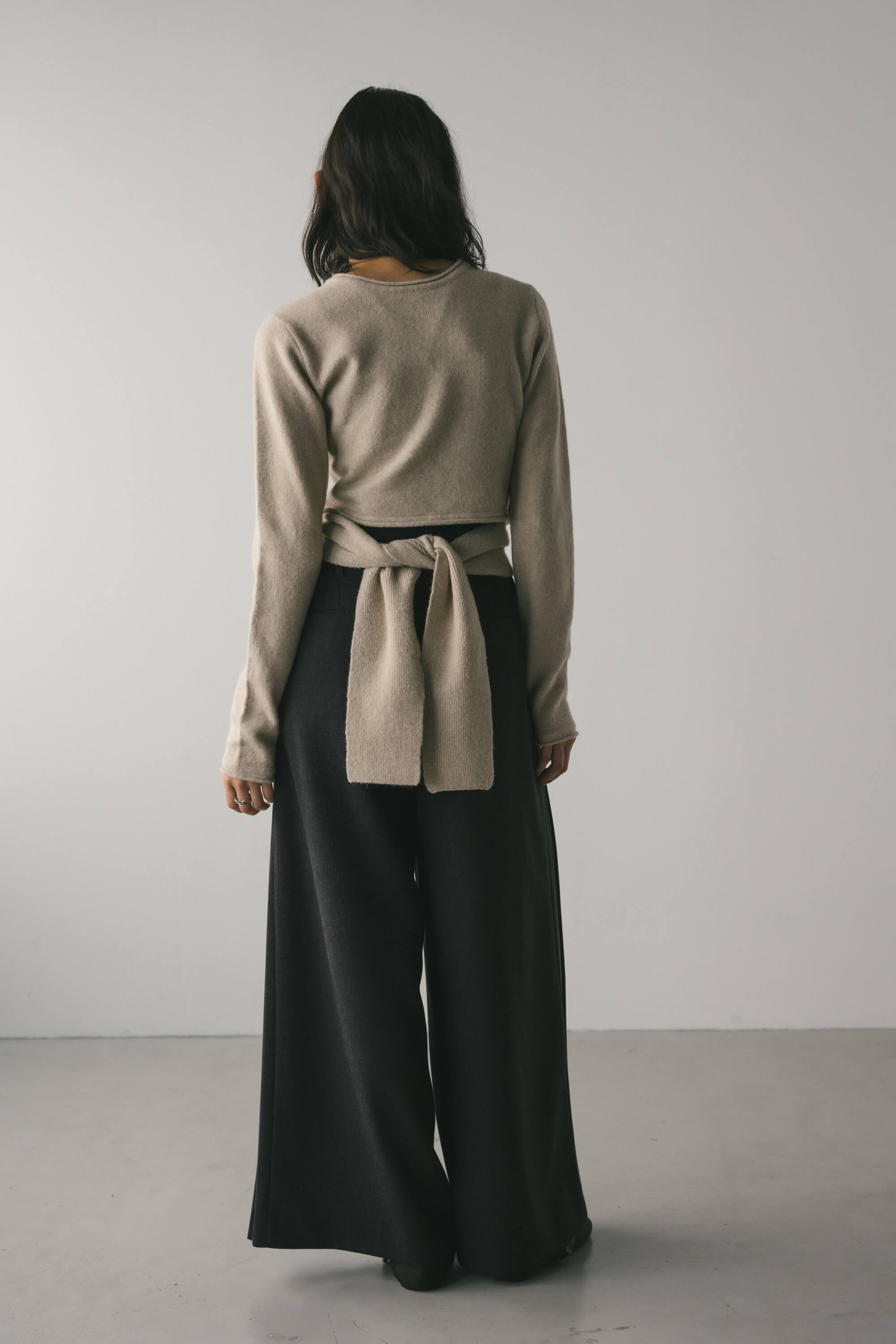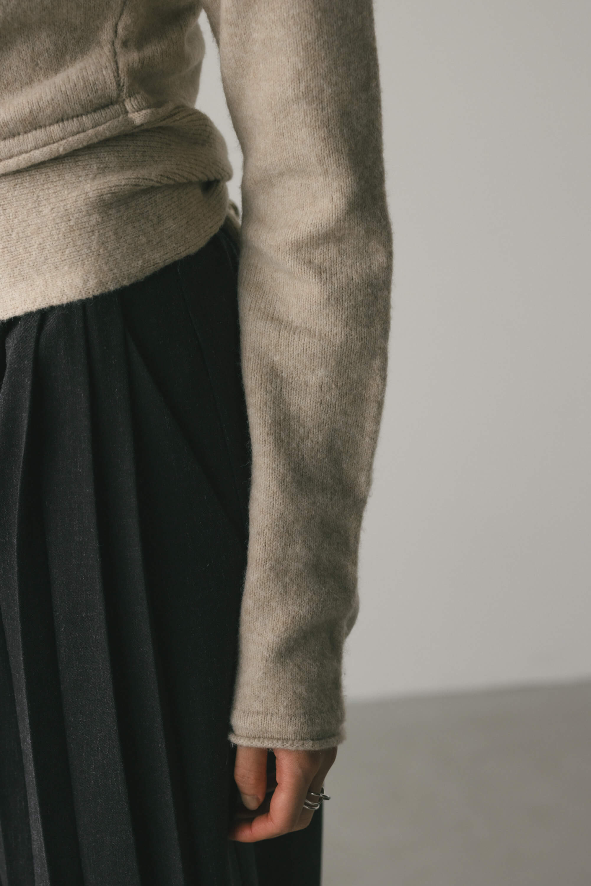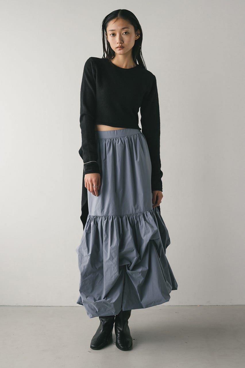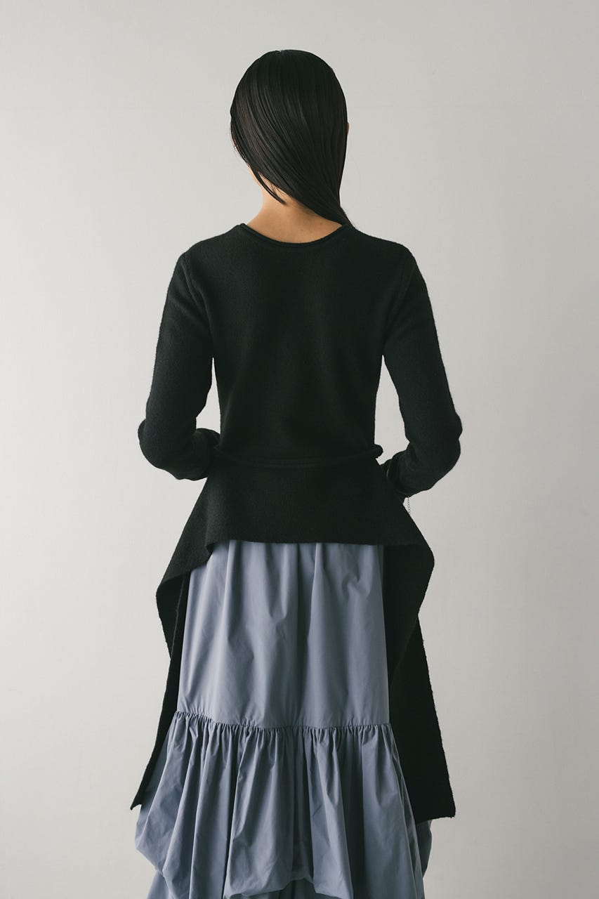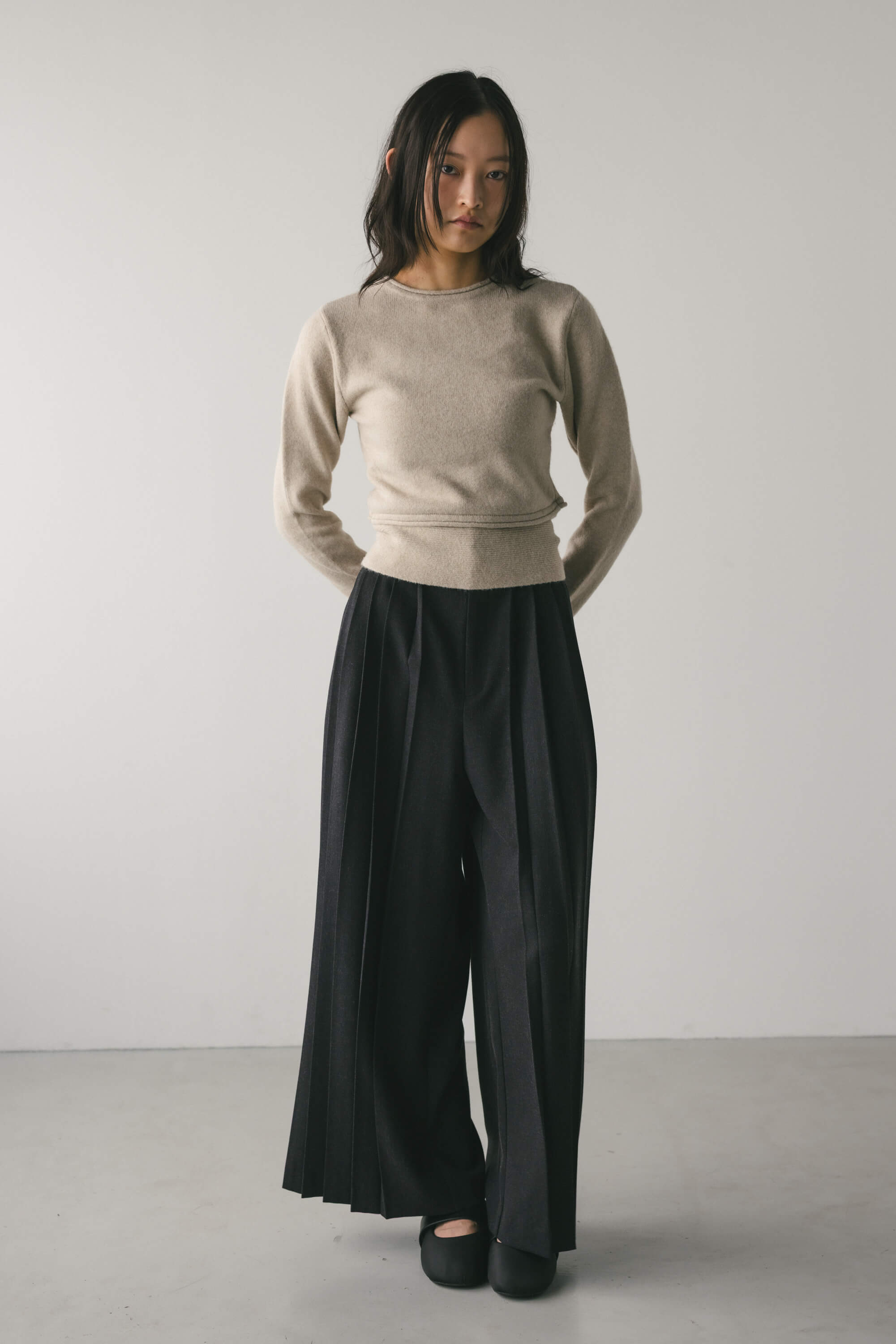ウエストマークできるデザインがポイントのショート丈のコンパクトニット。