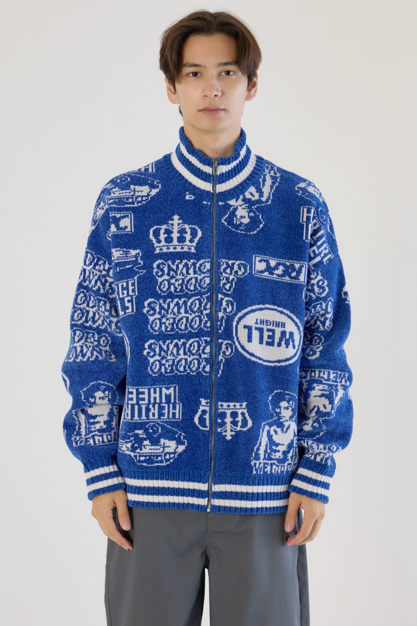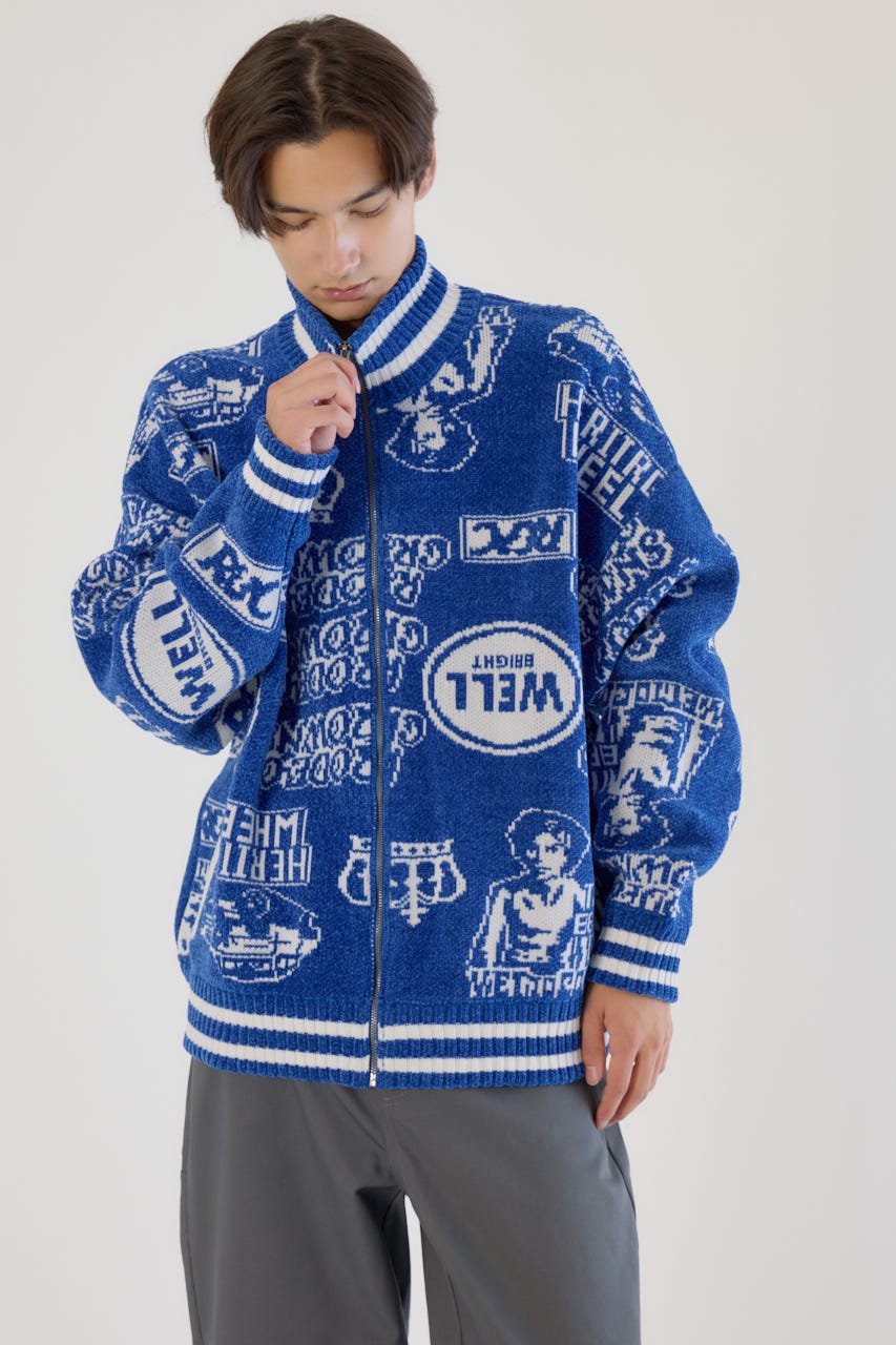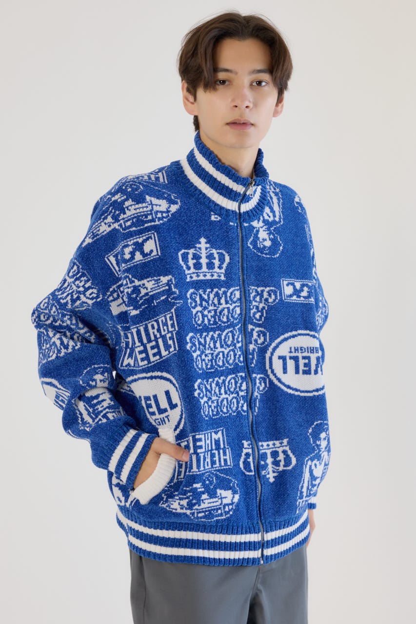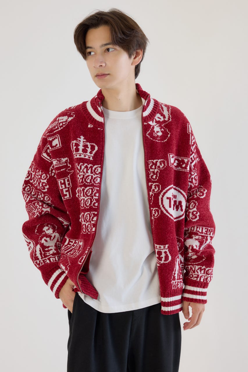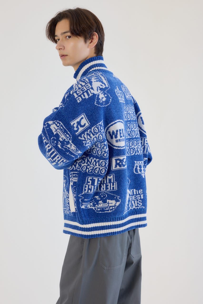 見た目にインパクトのあるグラフィックが特徴的なニット素材のスタジアムジャンパー。