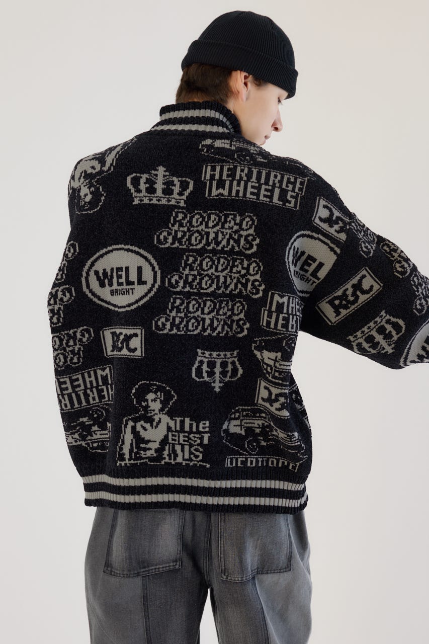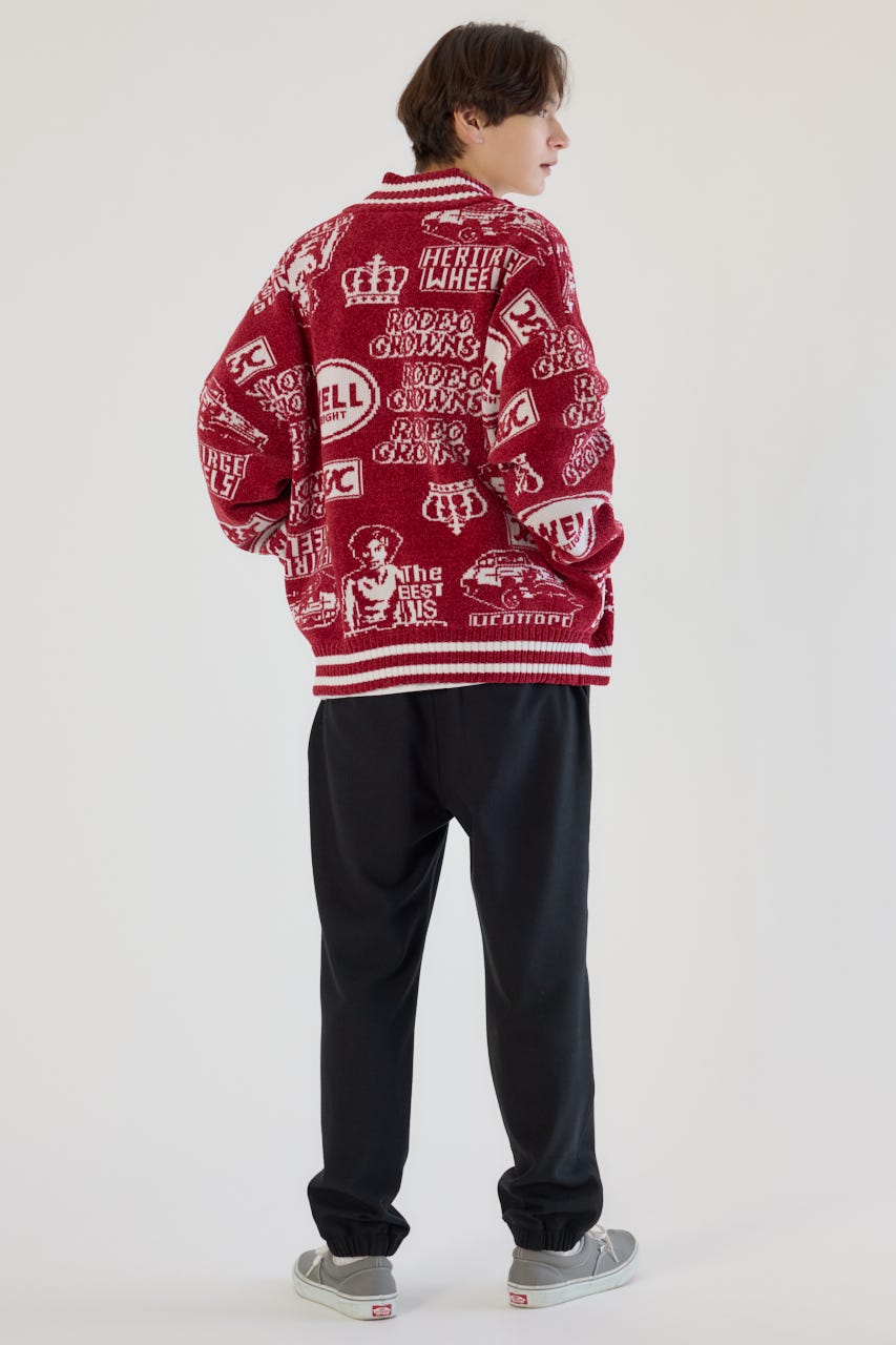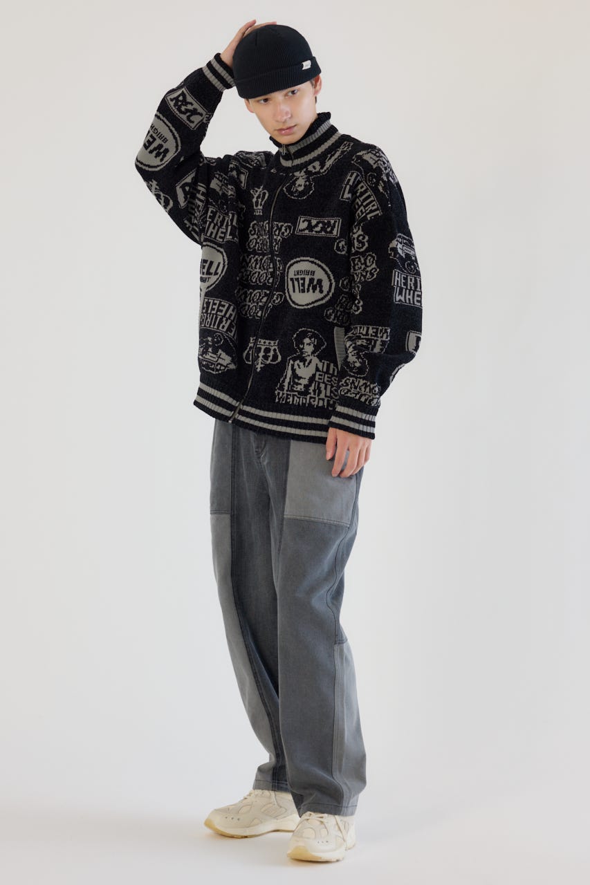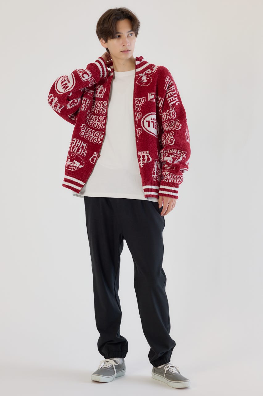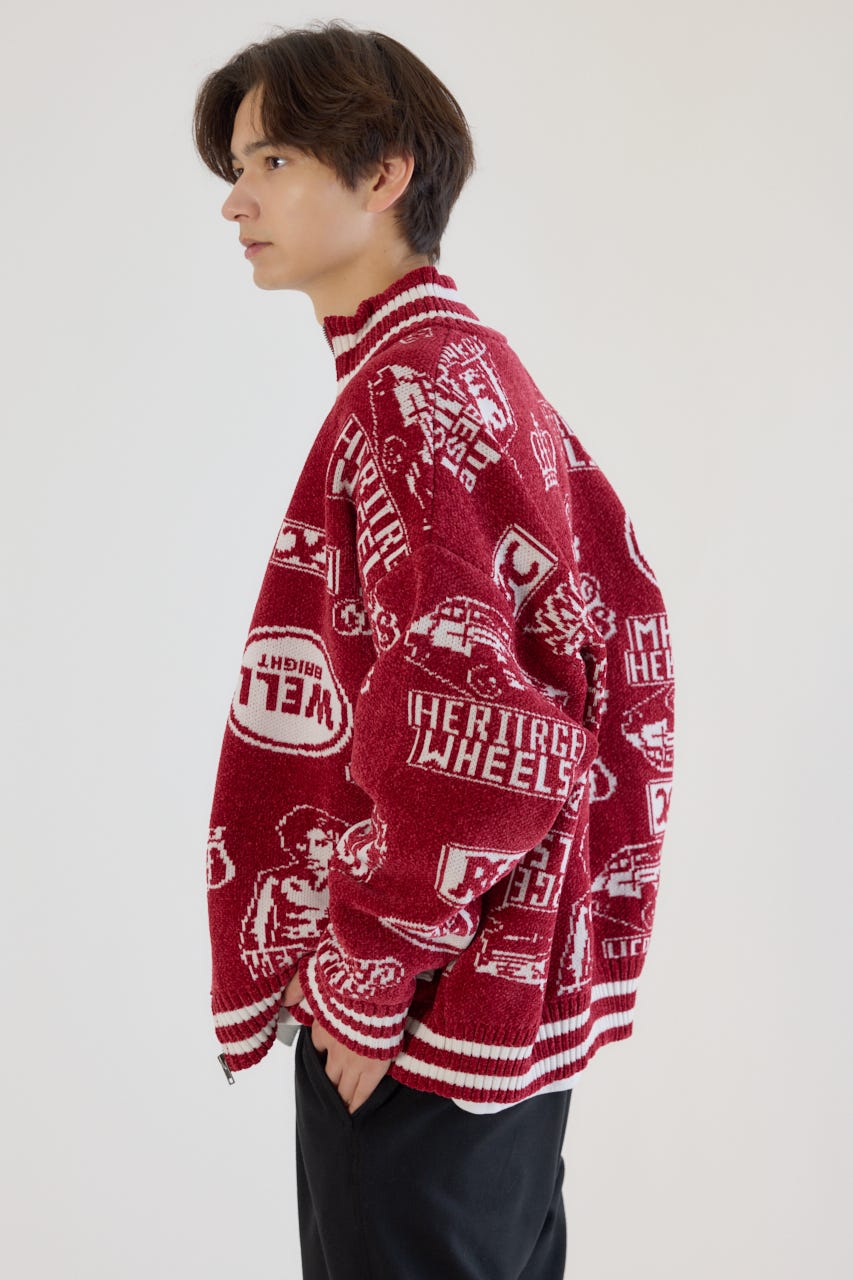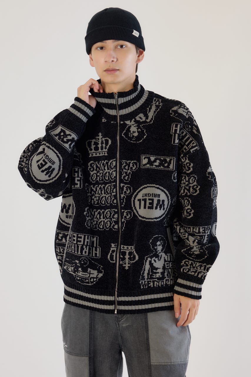 見た目にインパクトのあるグラフィックが特徴的なニット素材のスタジアムジャンパー。