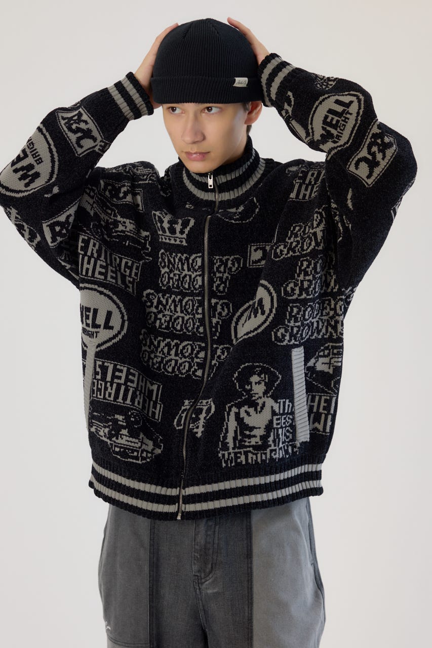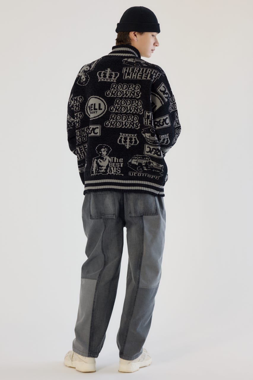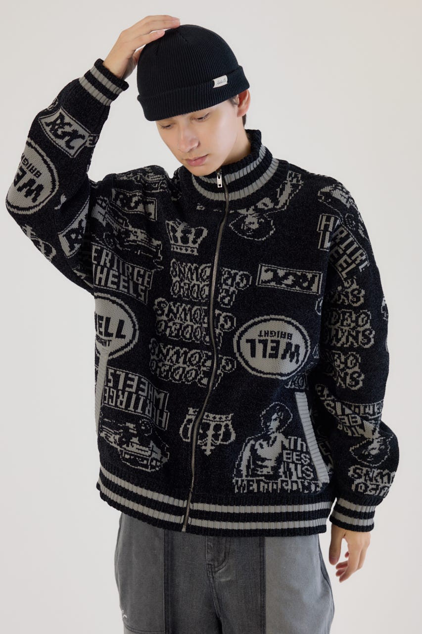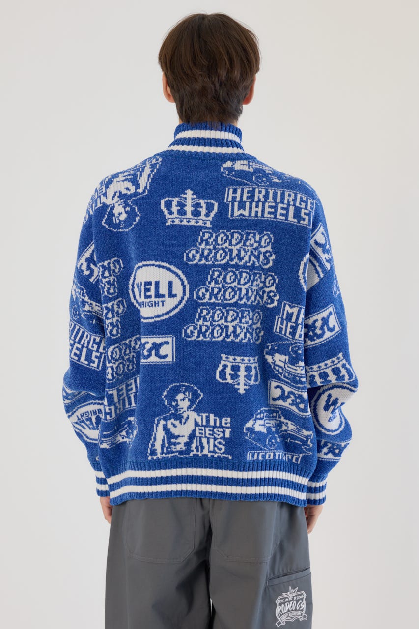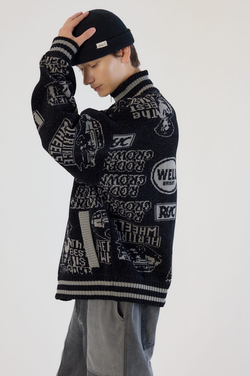 見た目にインパクトのあるグラフィックが特徴的なニット素材のスタジアムジャンパー。