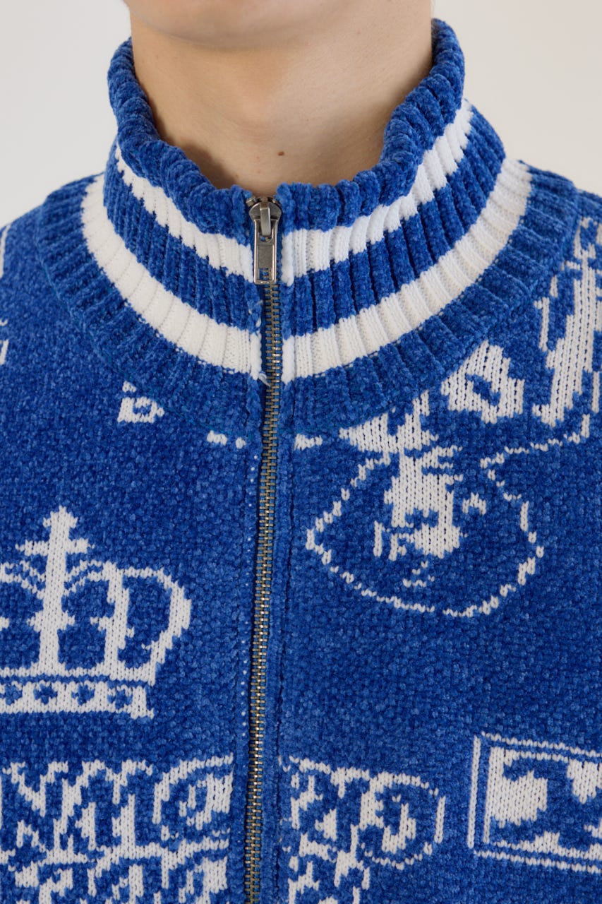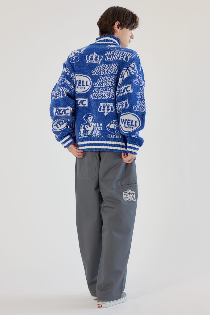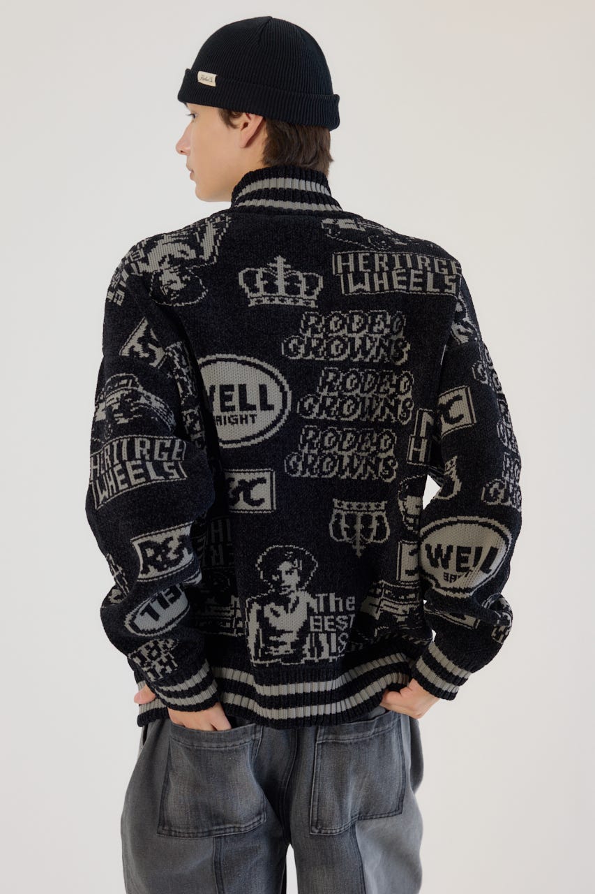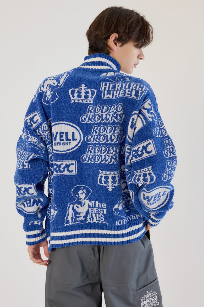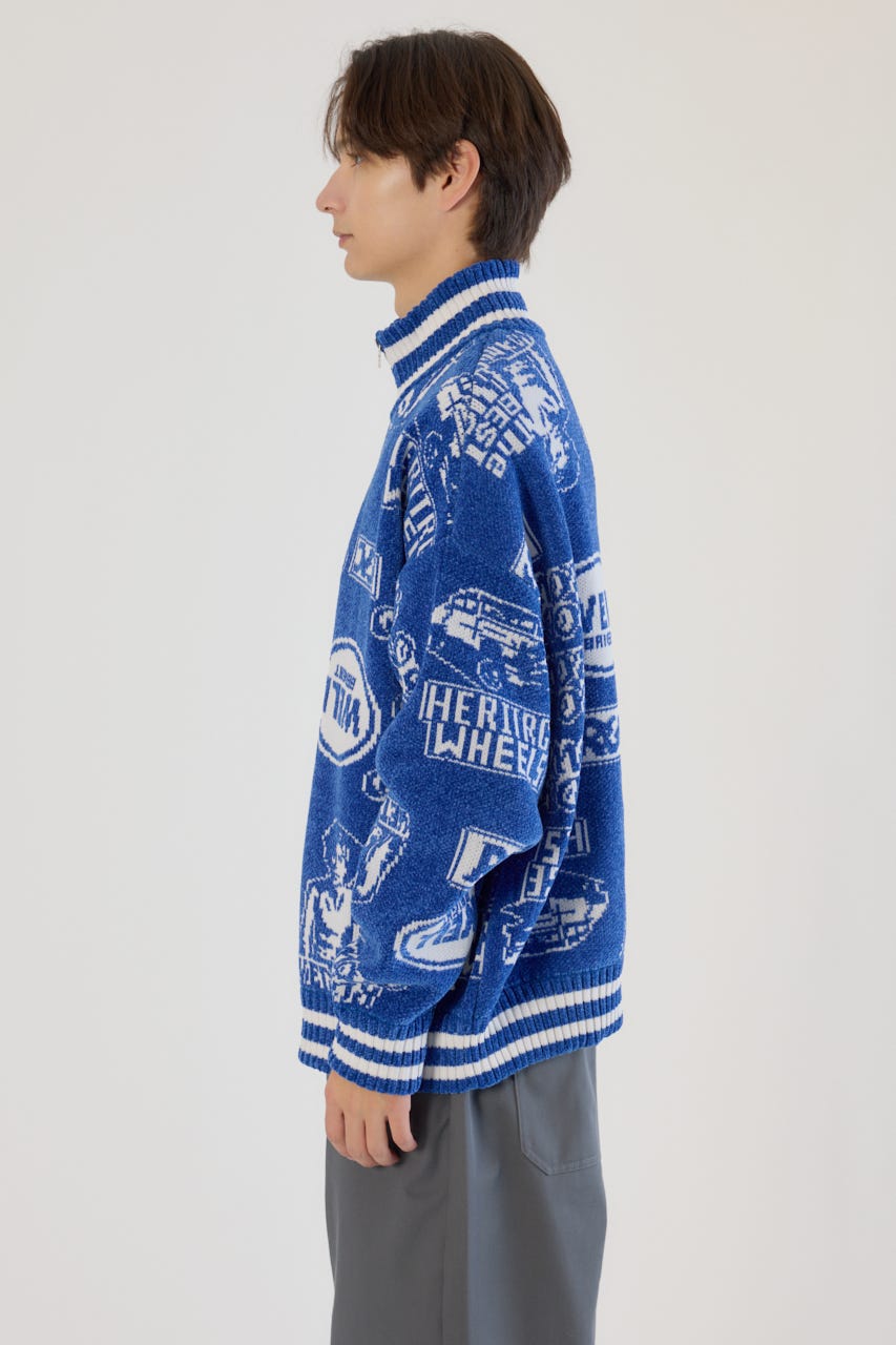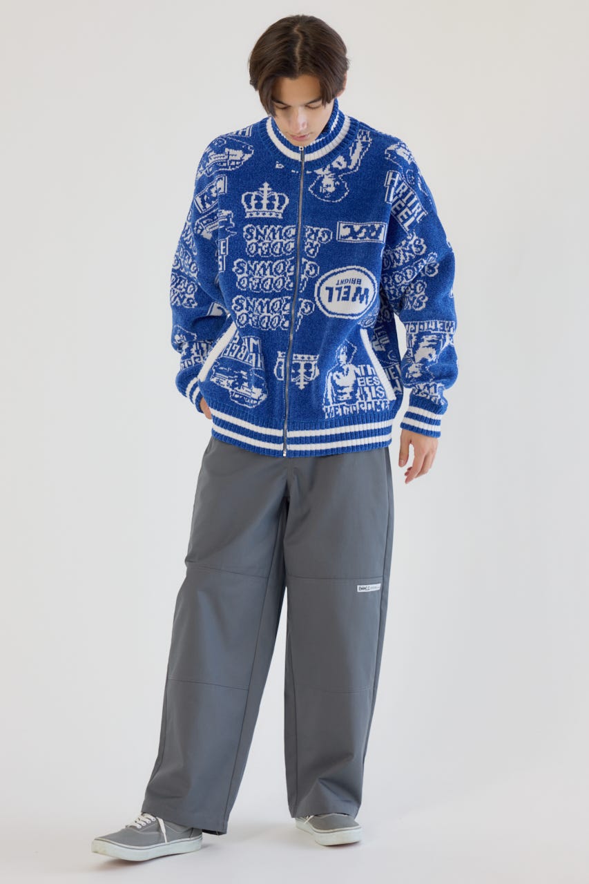 見た目にインパクトのあるグラフィックが特徴的なニット素材のスタジアムジャンパー。