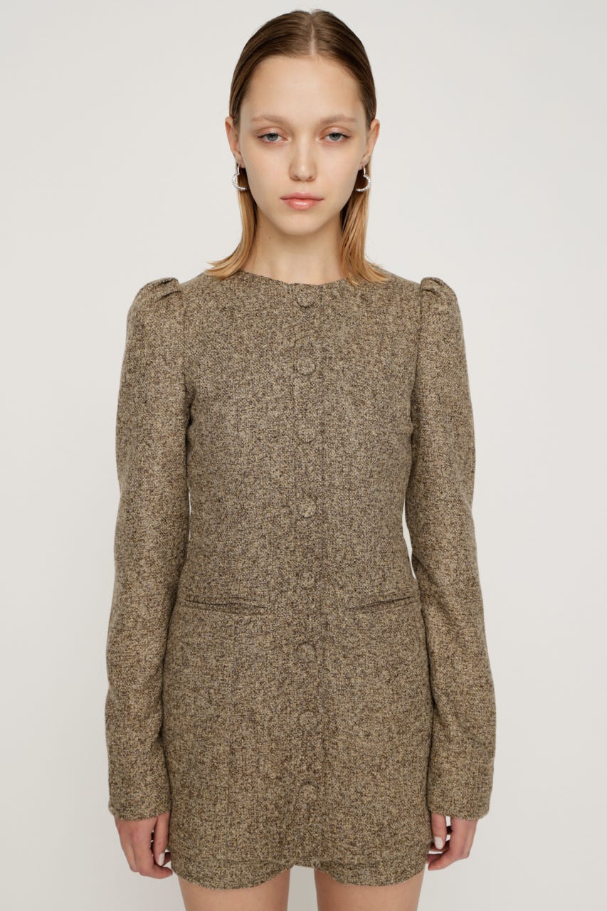 ■POINT:表情豊かなブークレツイード素材を使用した2ピースアイテム。