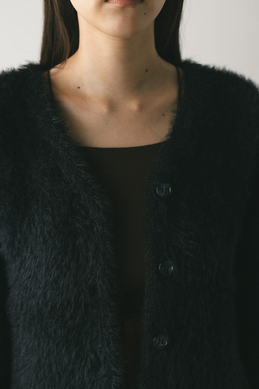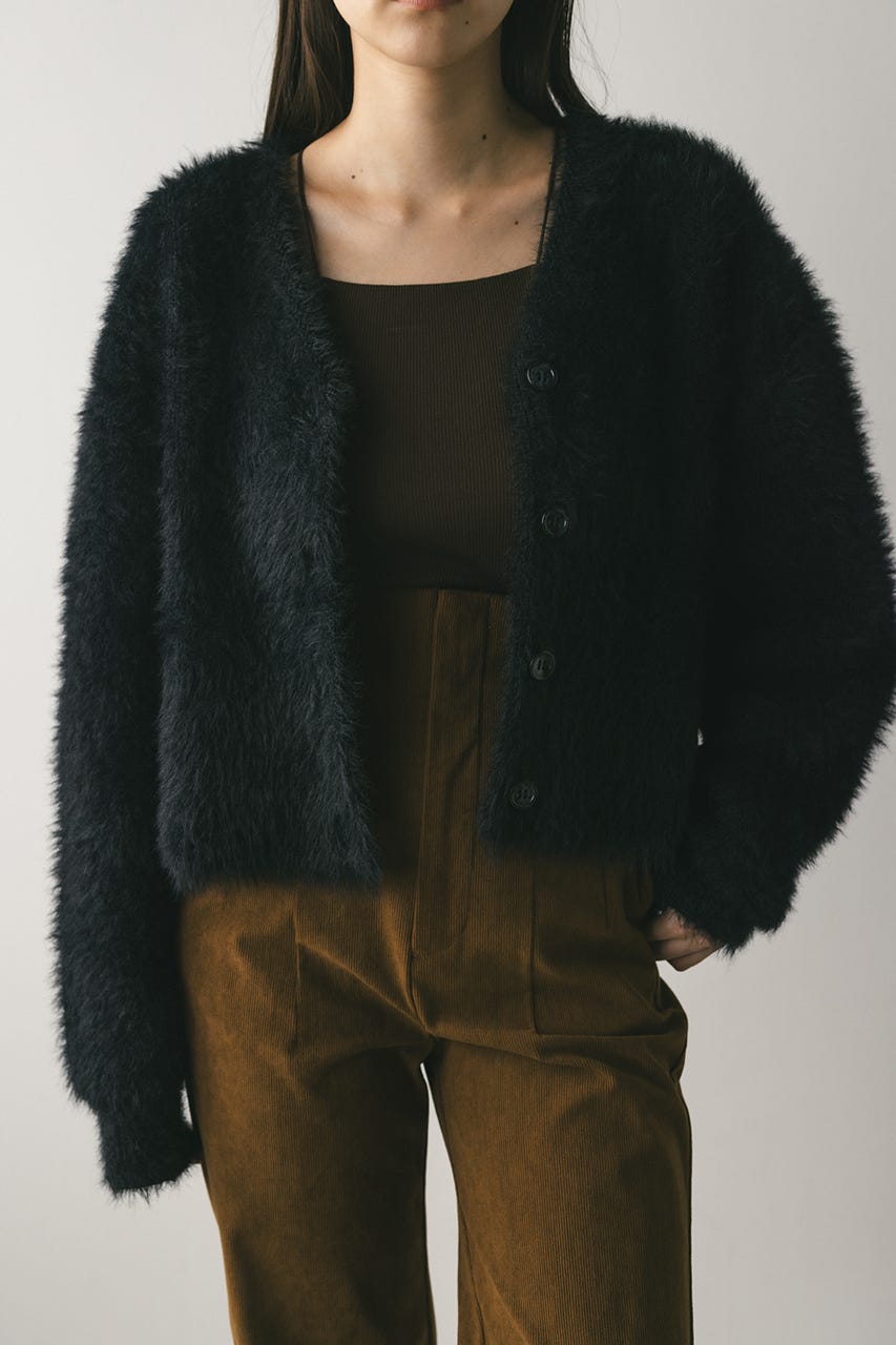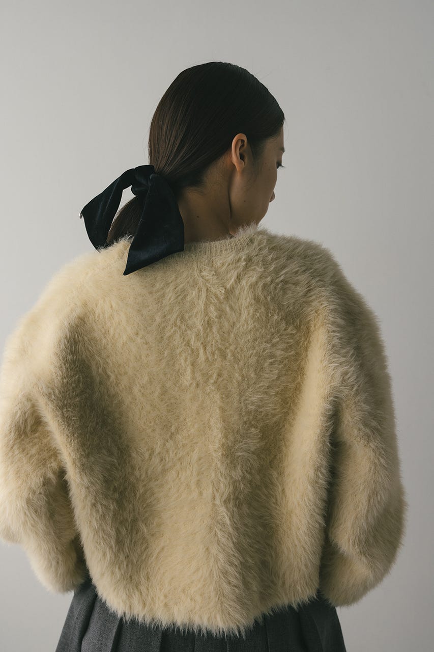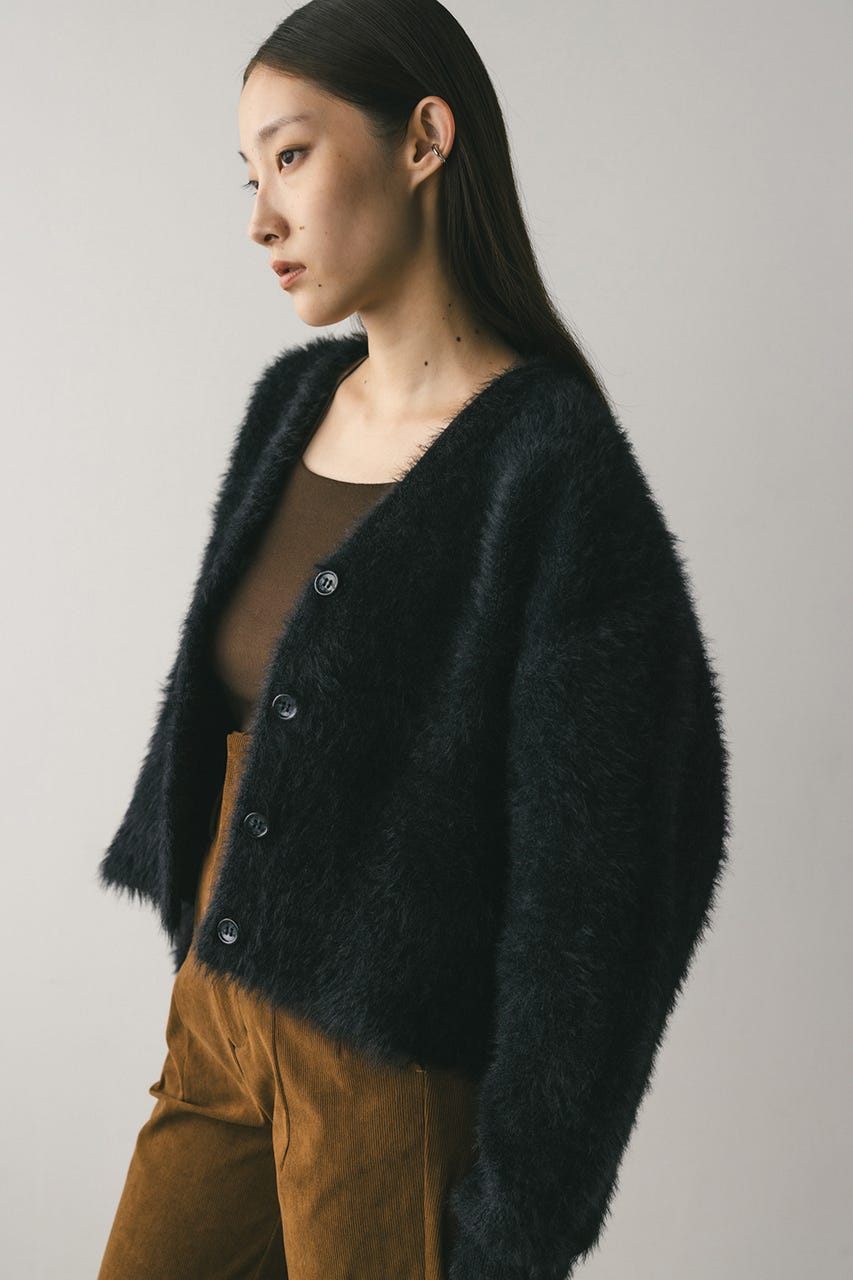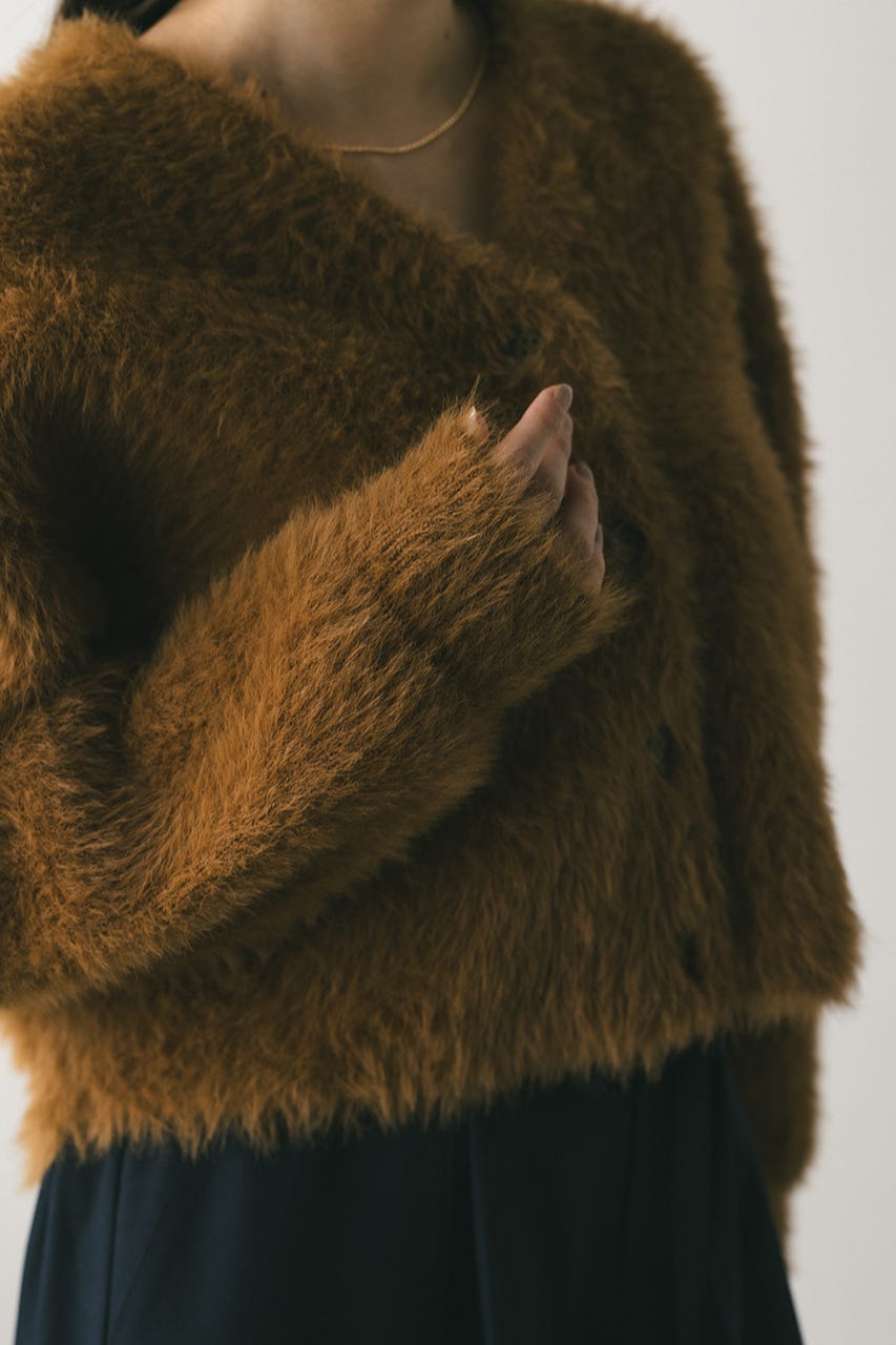 暖かさとふんわりとした柔らかい肌触りを叶えるシャギーの毛足が可愛いアウターライクなニットカーディガン。