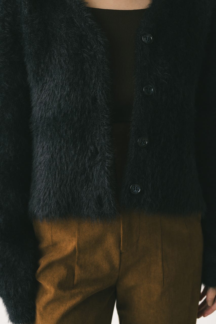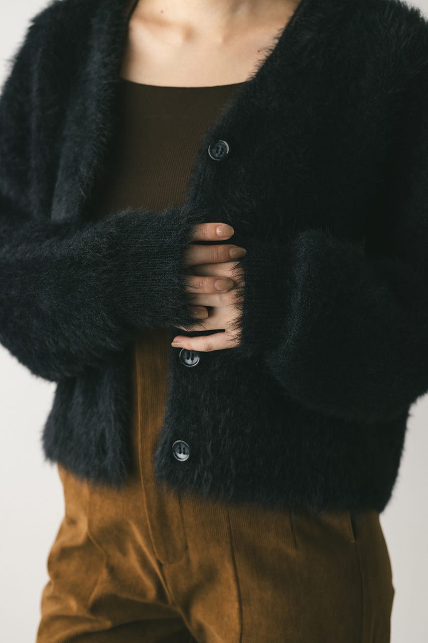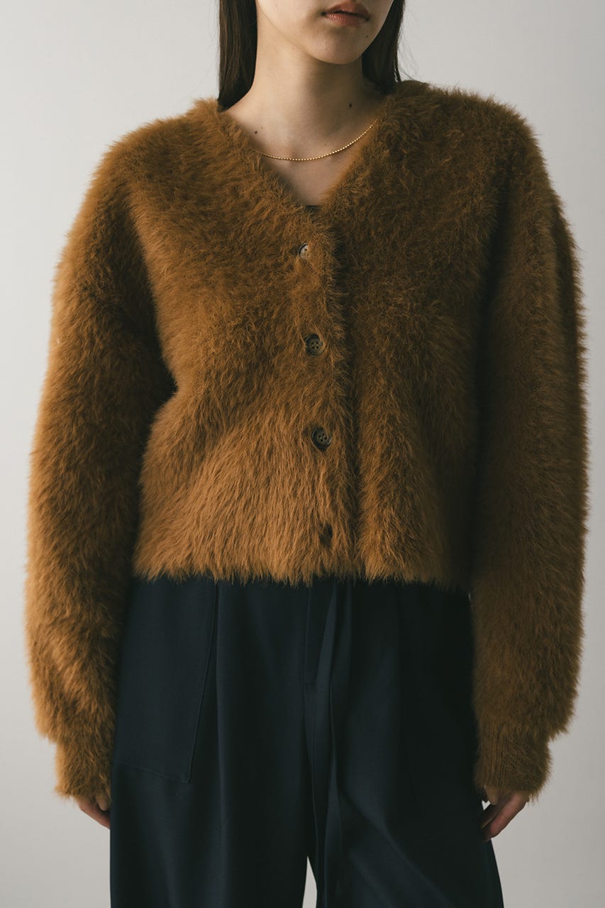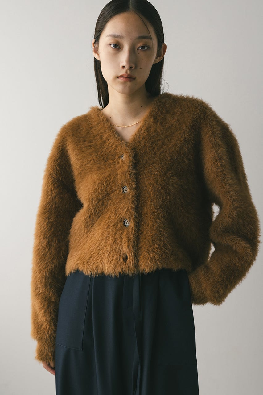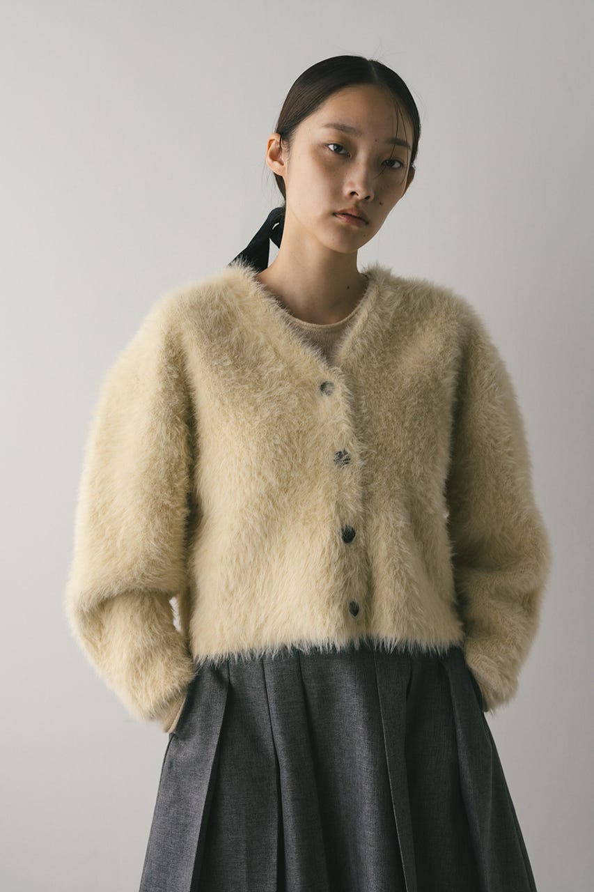 暖かさとふんわりとした柔らかい肌触りを叶えるシャギーの毛足が可愛いアウターライクなニットカーディガン。