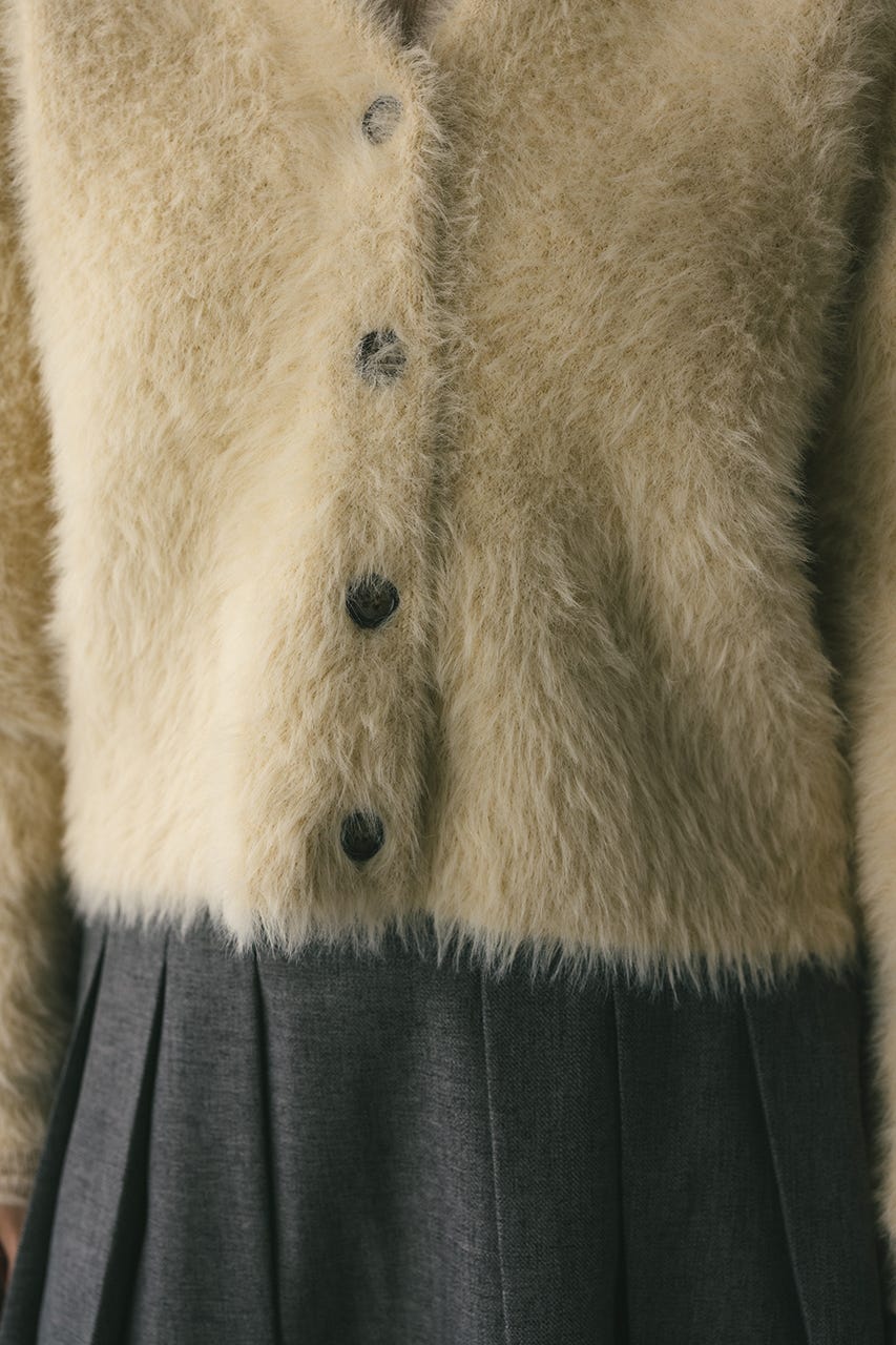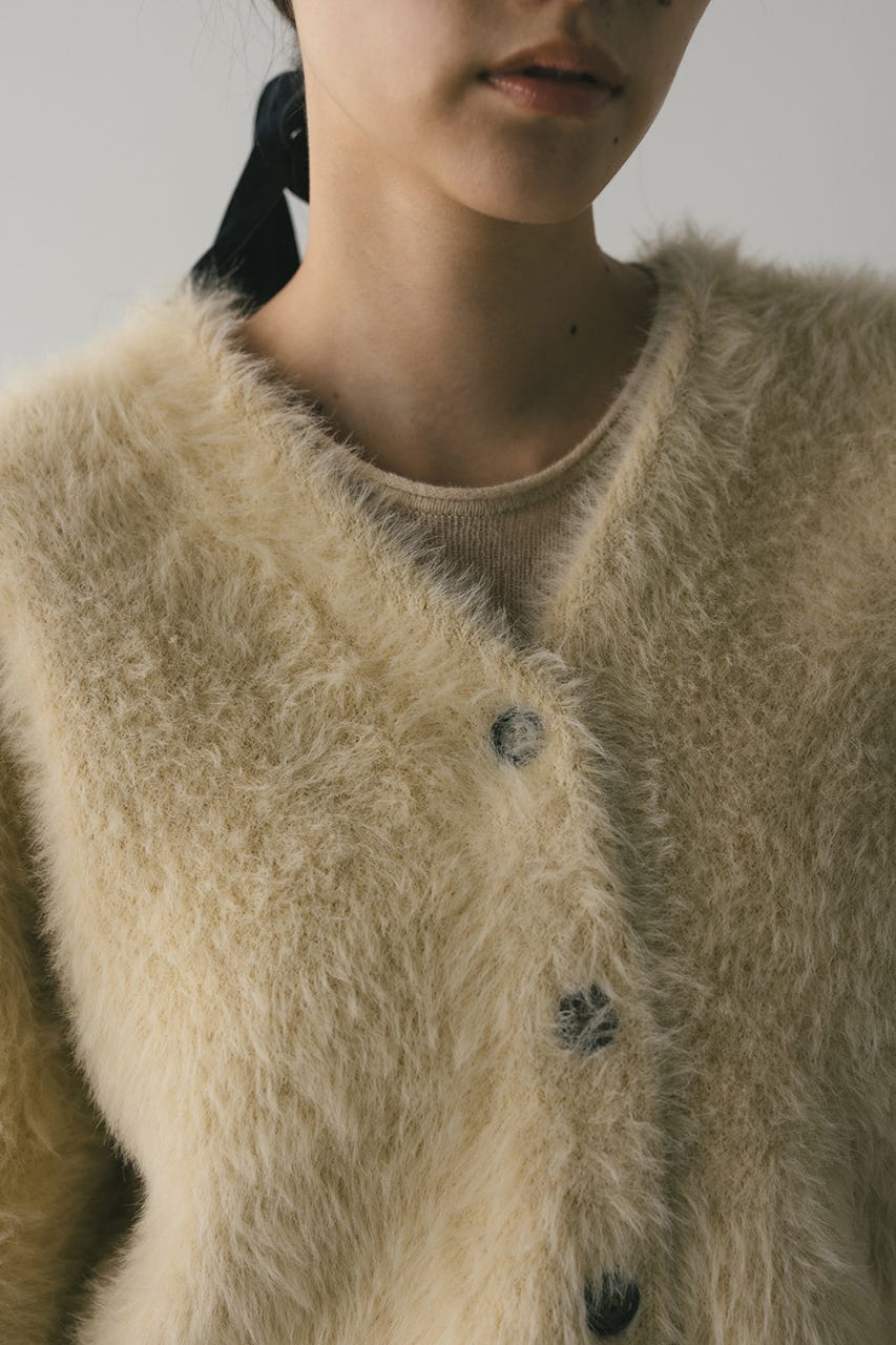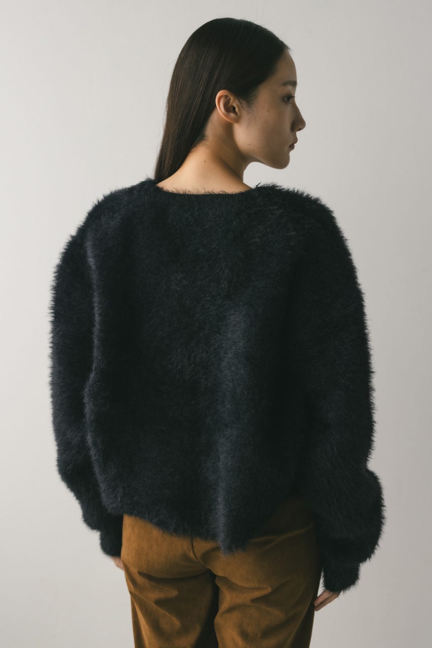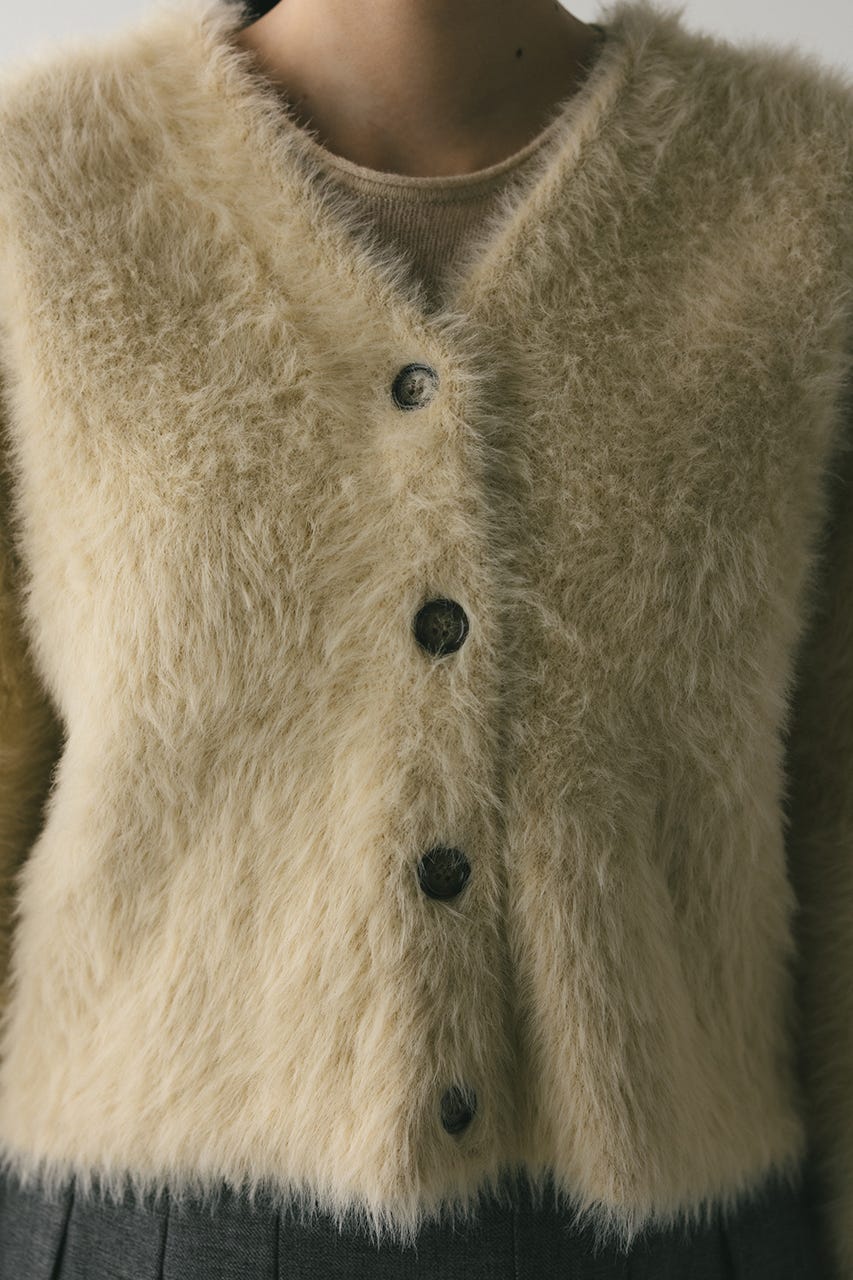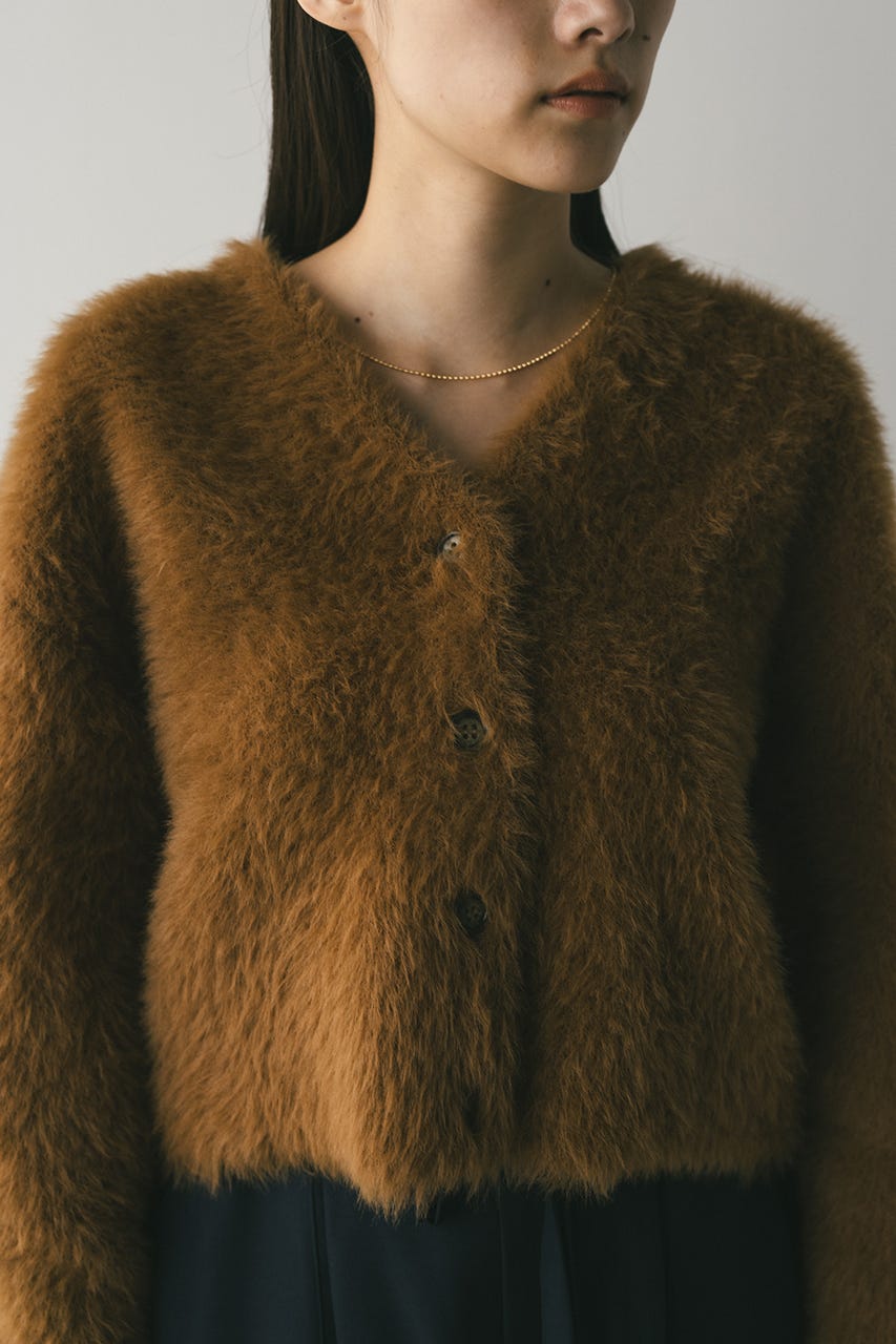 暖かさとふんわりとした柔らかい肌触りを叶えるシャギーの毛足が可愛いアウターライクなニットカーディガン。