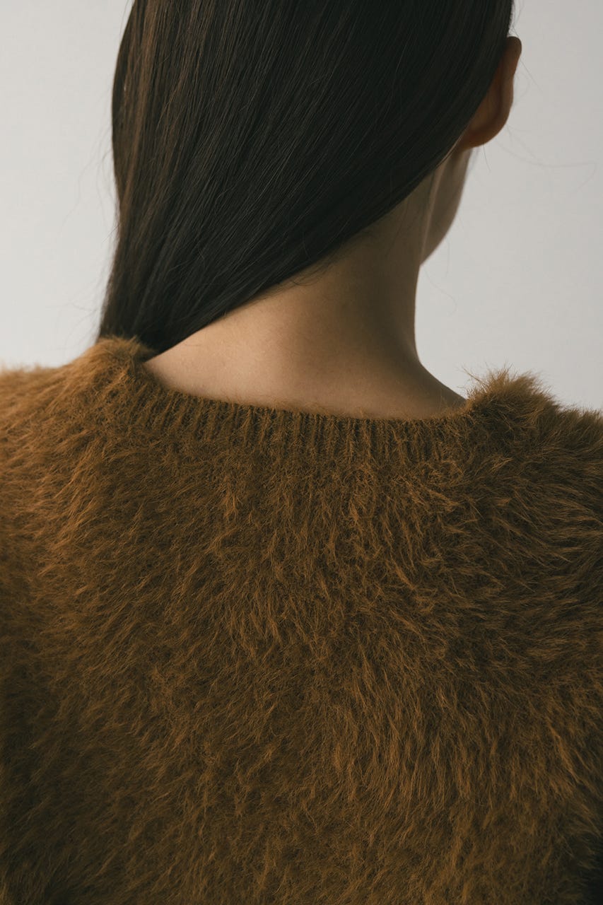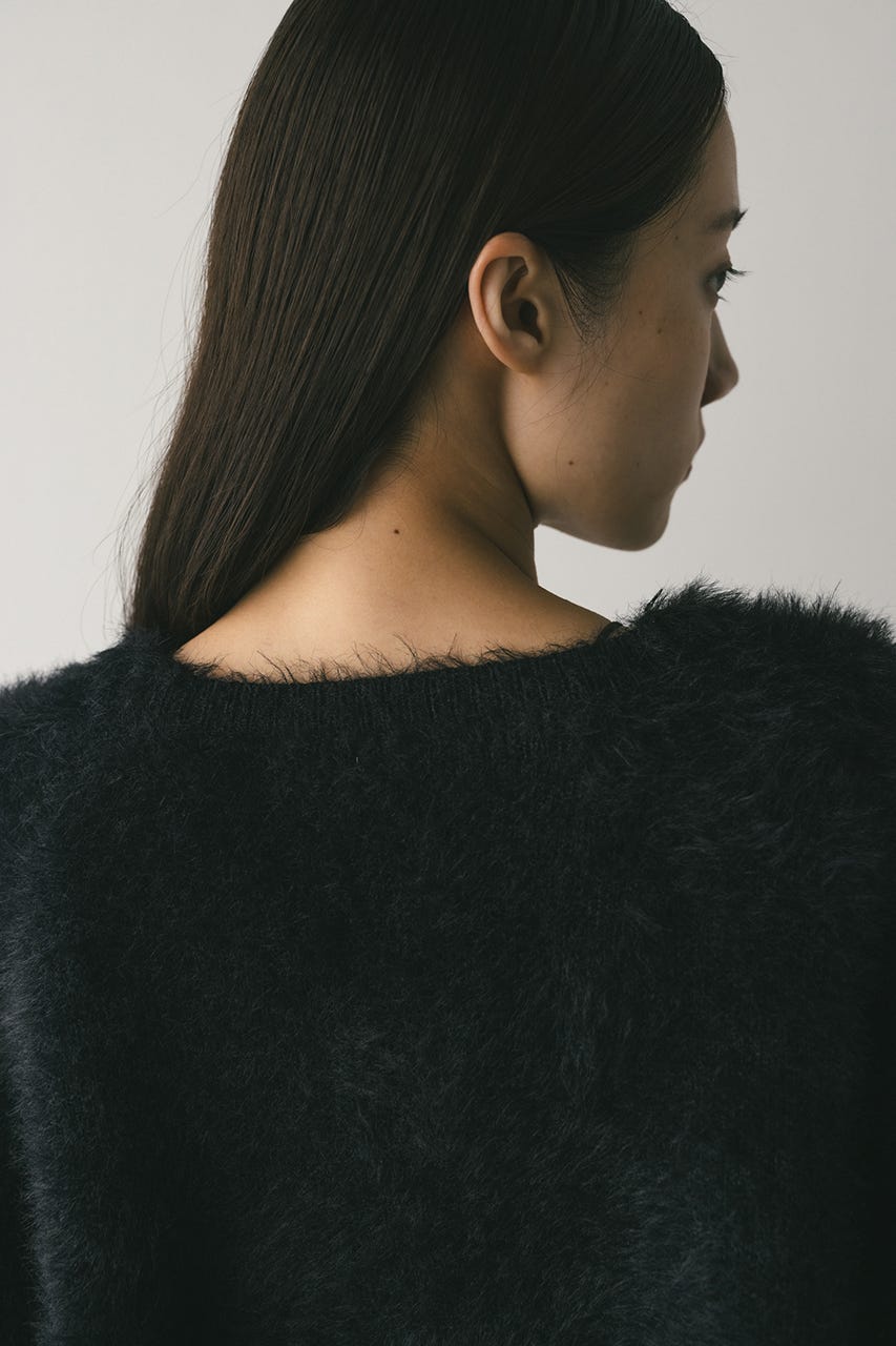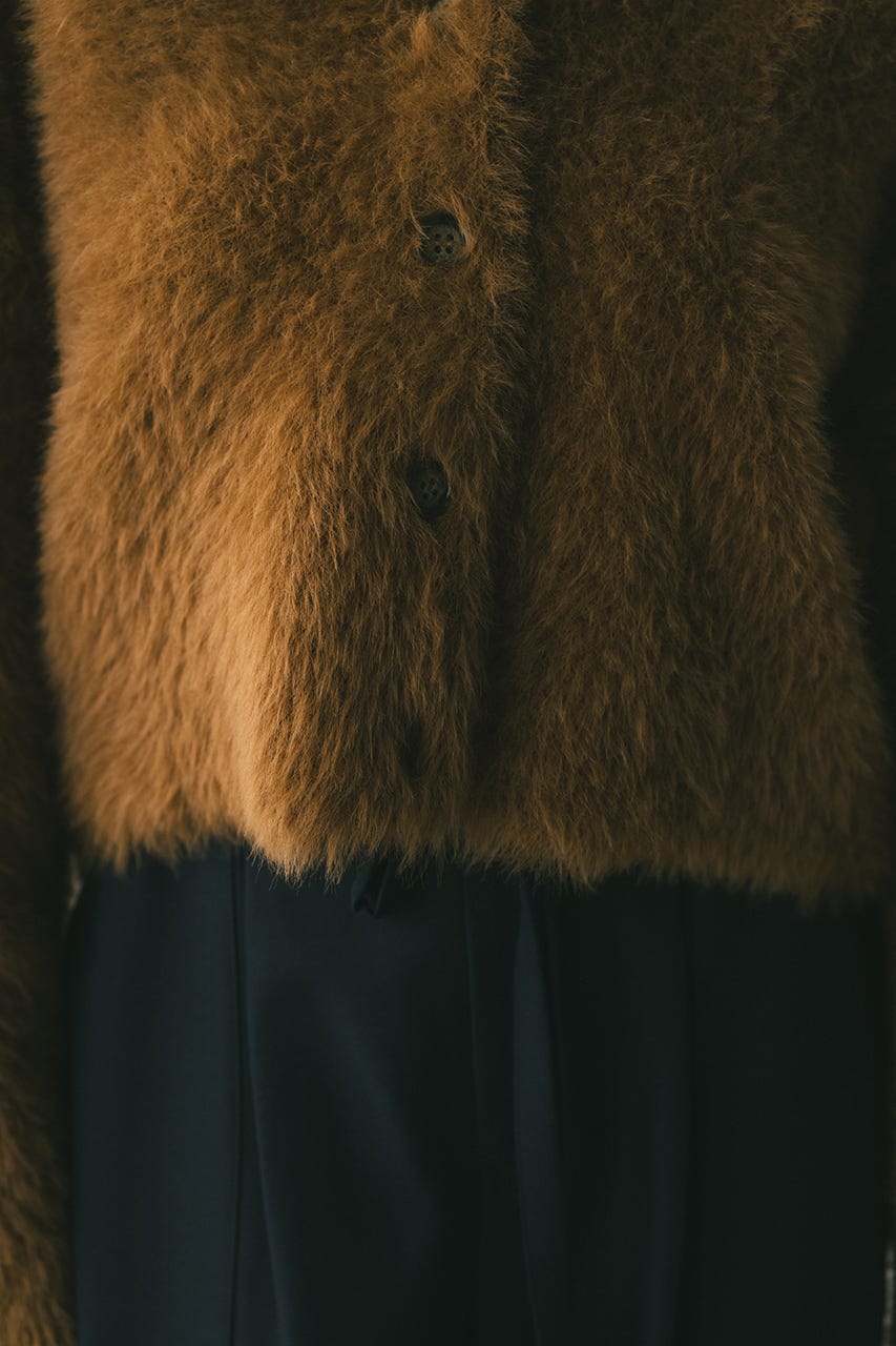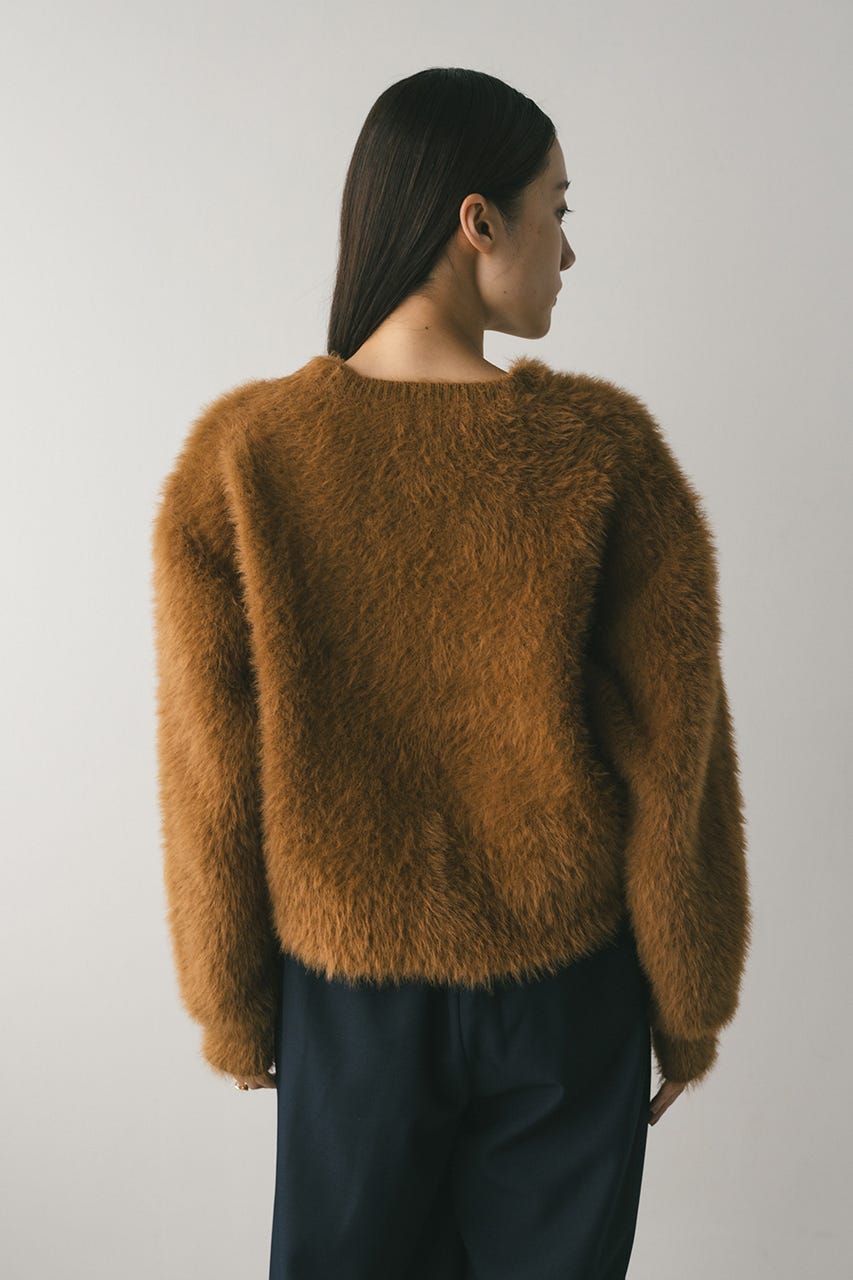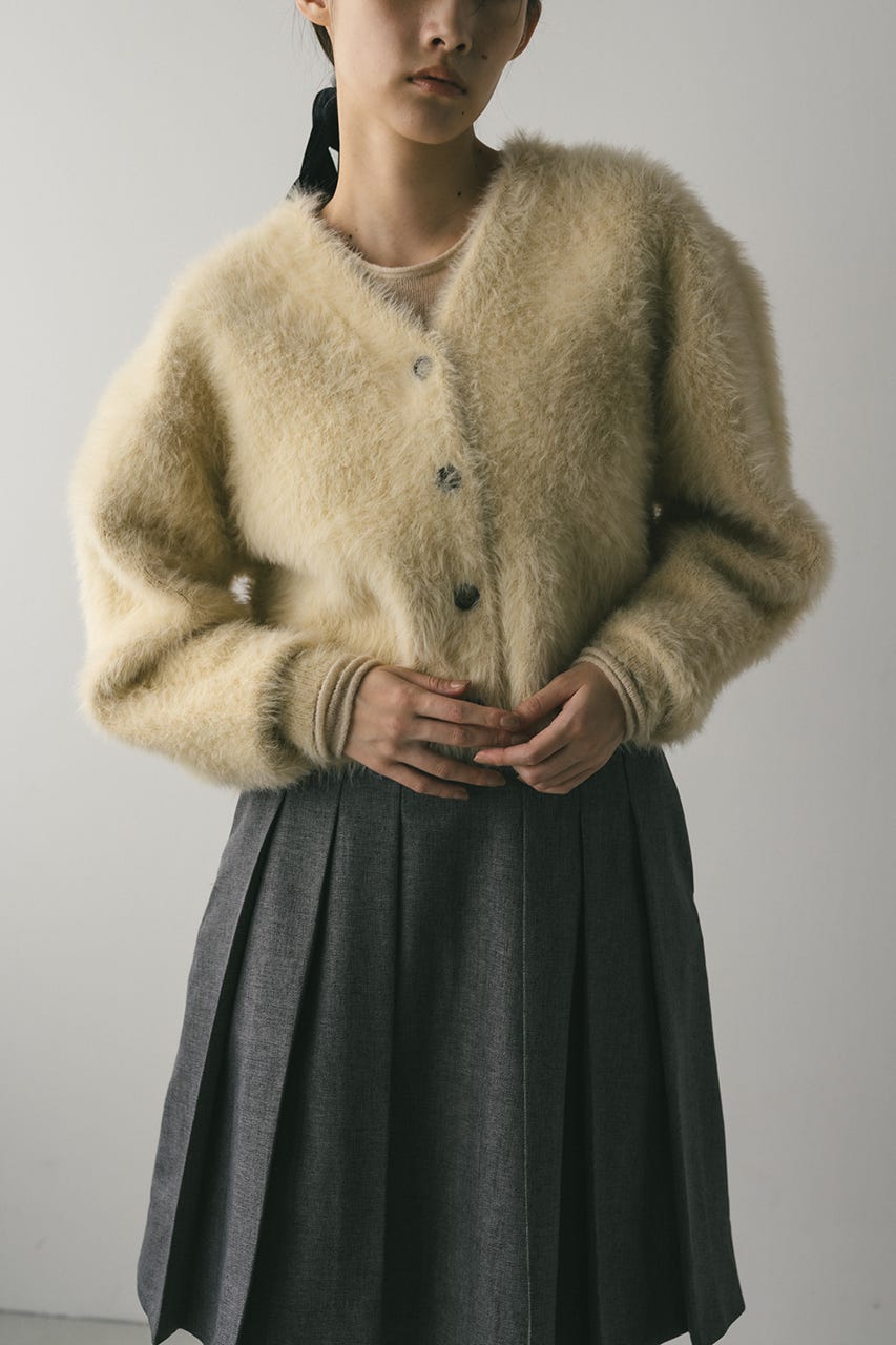 暖かさとふんわりとした柔らかい肌触りを叶えるシャギーの毛足が可愛いアウターライクなニットカーディガン。