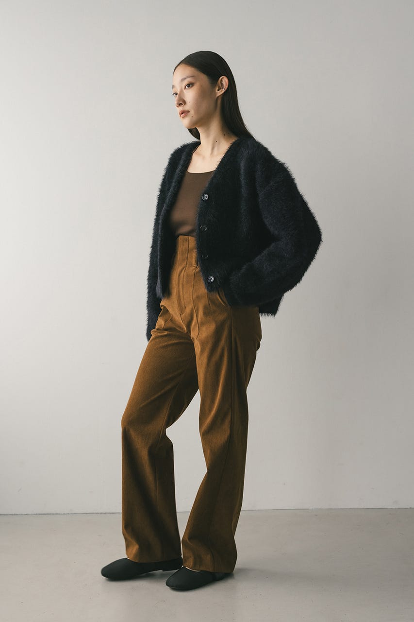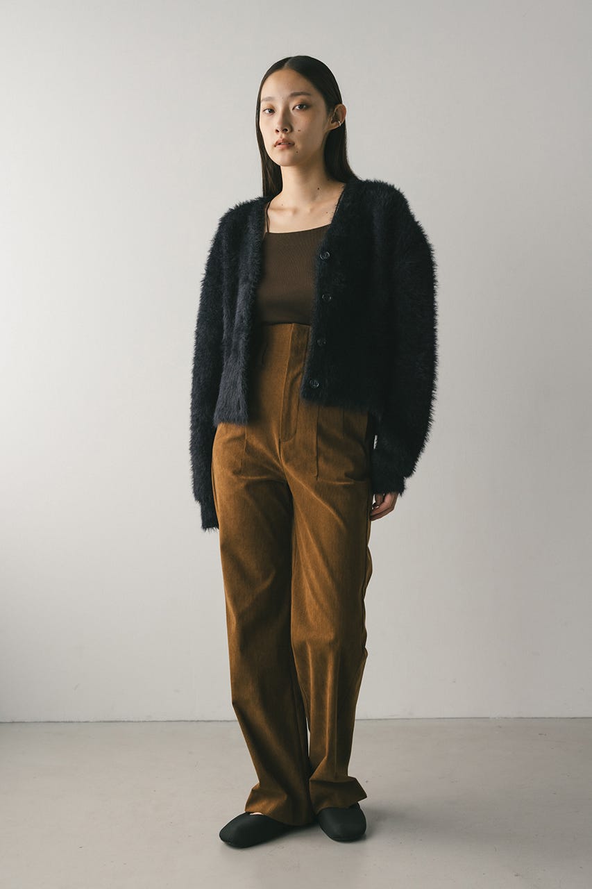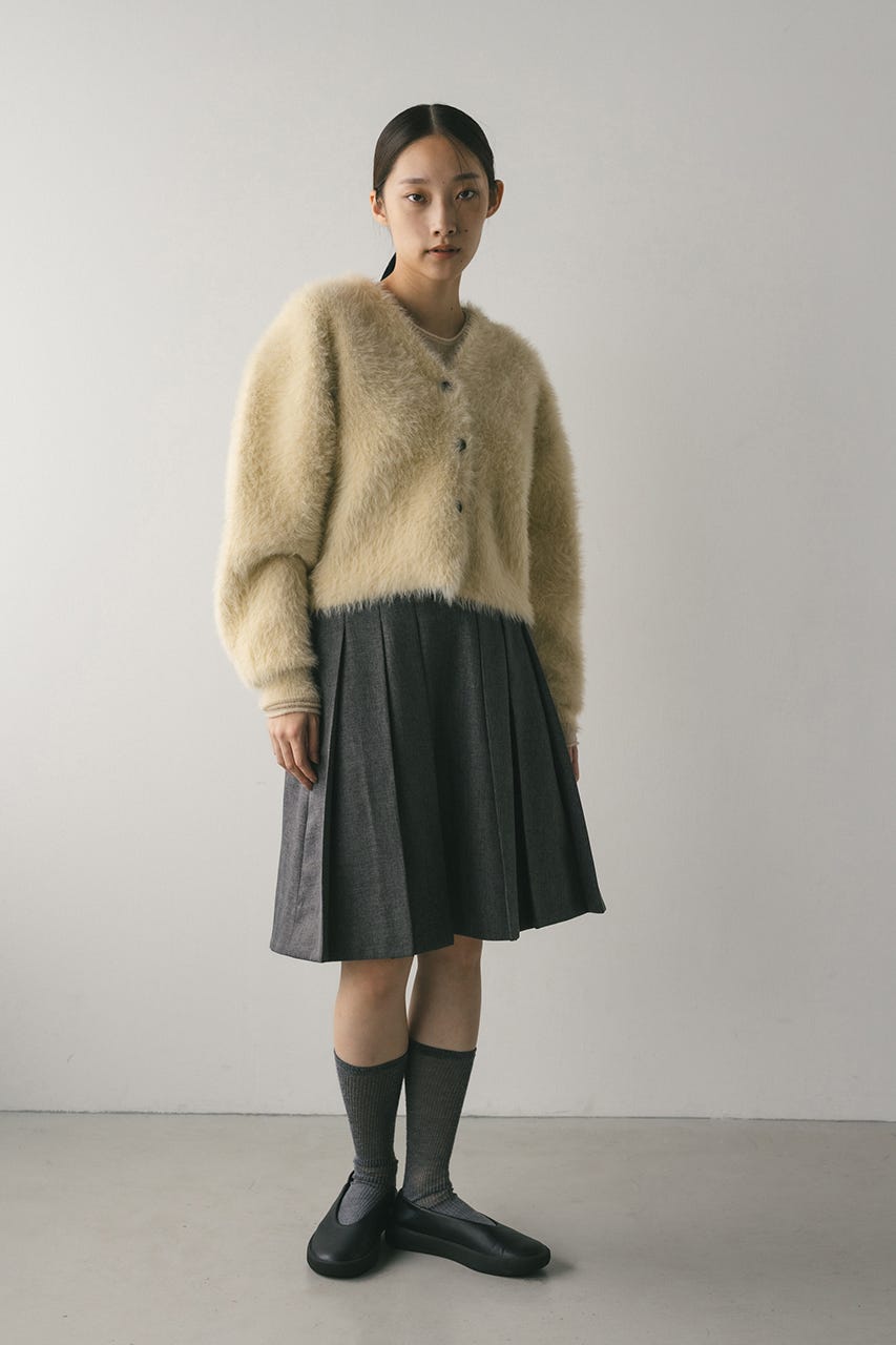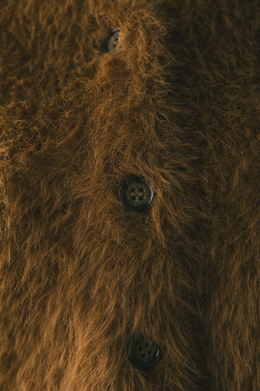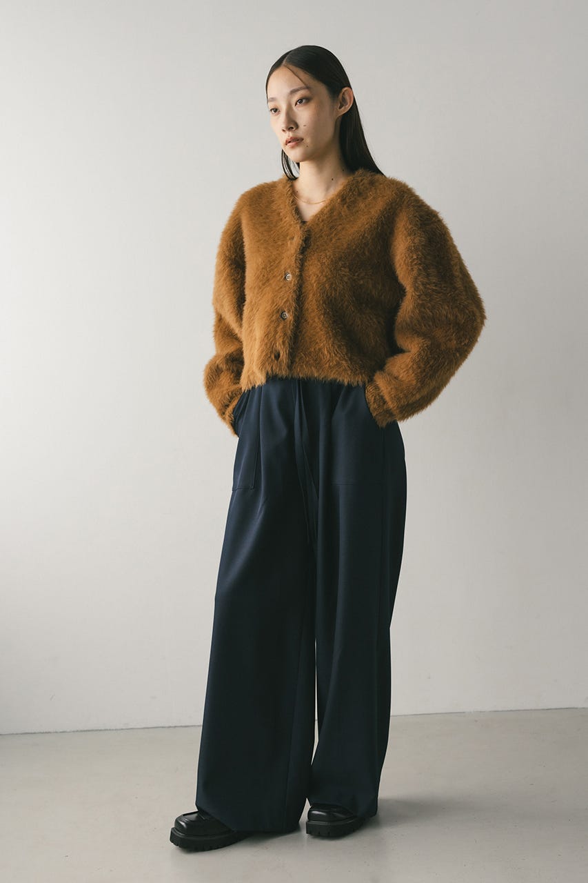 暖かさとふんわりとした柔らかい肌触りを叶えるシャギーの毛足が可愛いアウターライクなニットカーディガン。